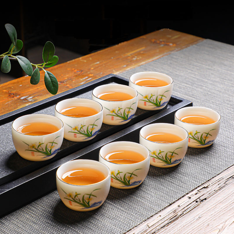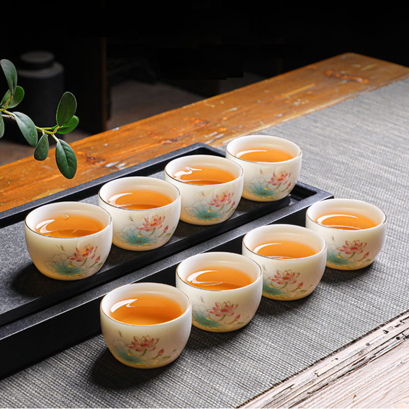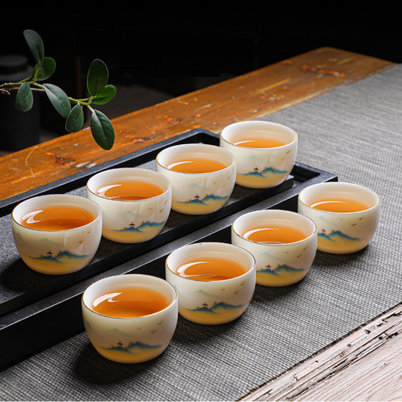 Suet 옥 도자기 쿵푸 마스터 컵 마시는 작은 차 컵 세라믹 단일 컵 세트 홈 차 시음 컵 차 세트