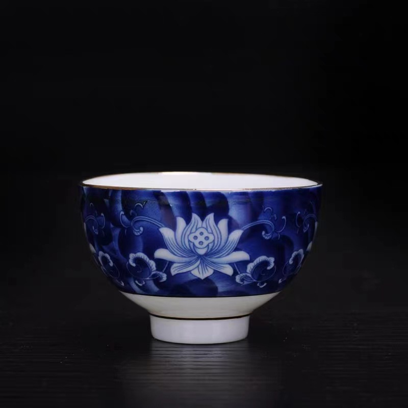 • 파란색과 흰색 연꽃 운 컵
