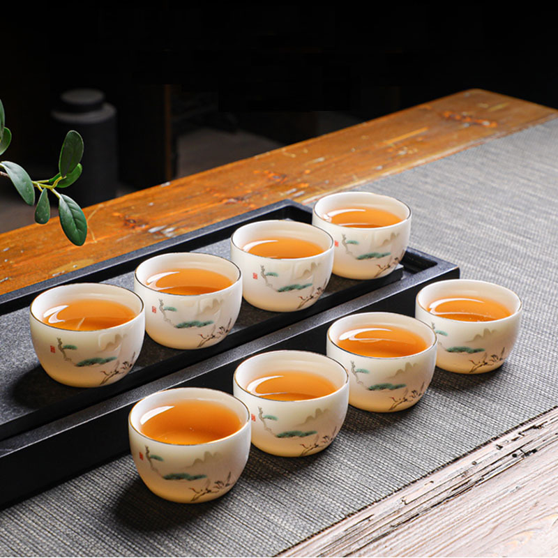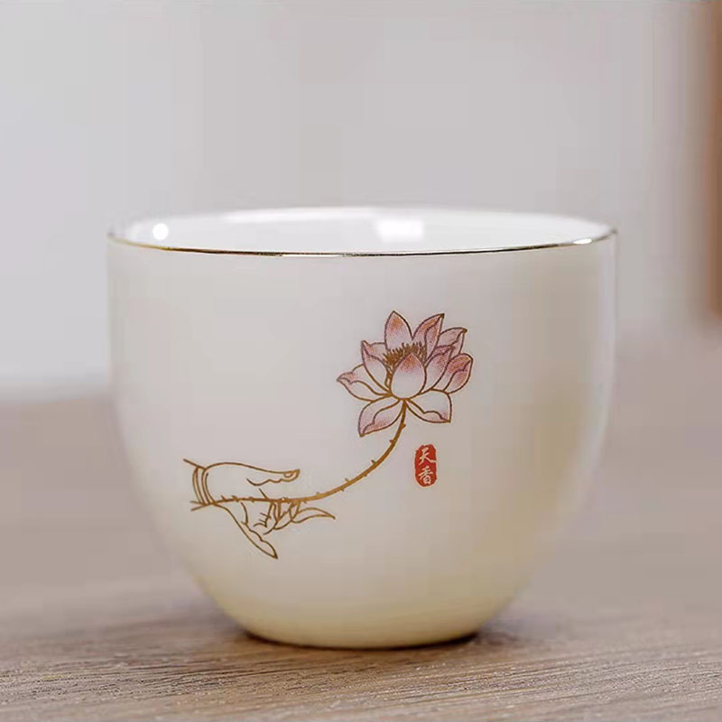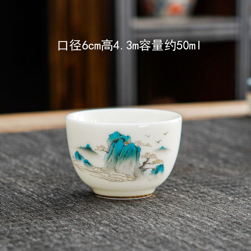 Suet 옥 도자기 쿵푸 마스터 컵 마시는 작은 차 컵 세라믹 단일 컵 세트 홈 차 시음 컵 차 세트스토어 가기