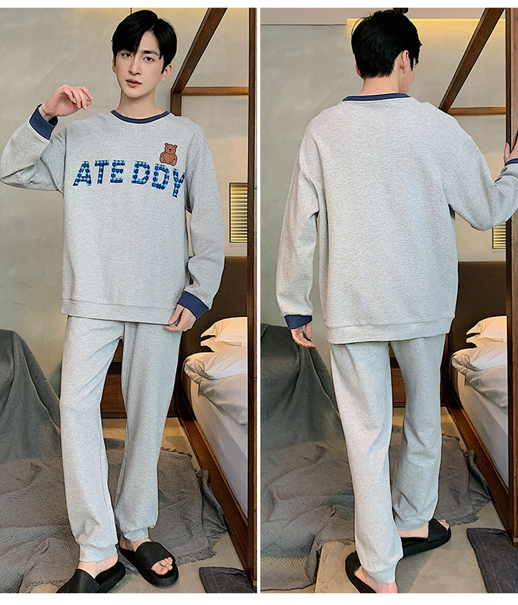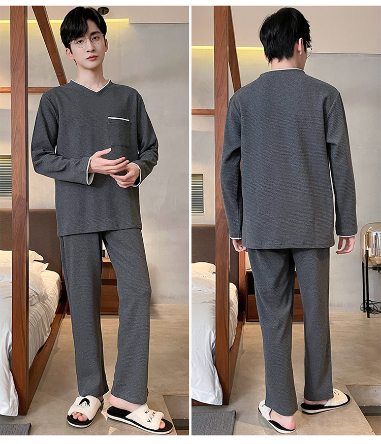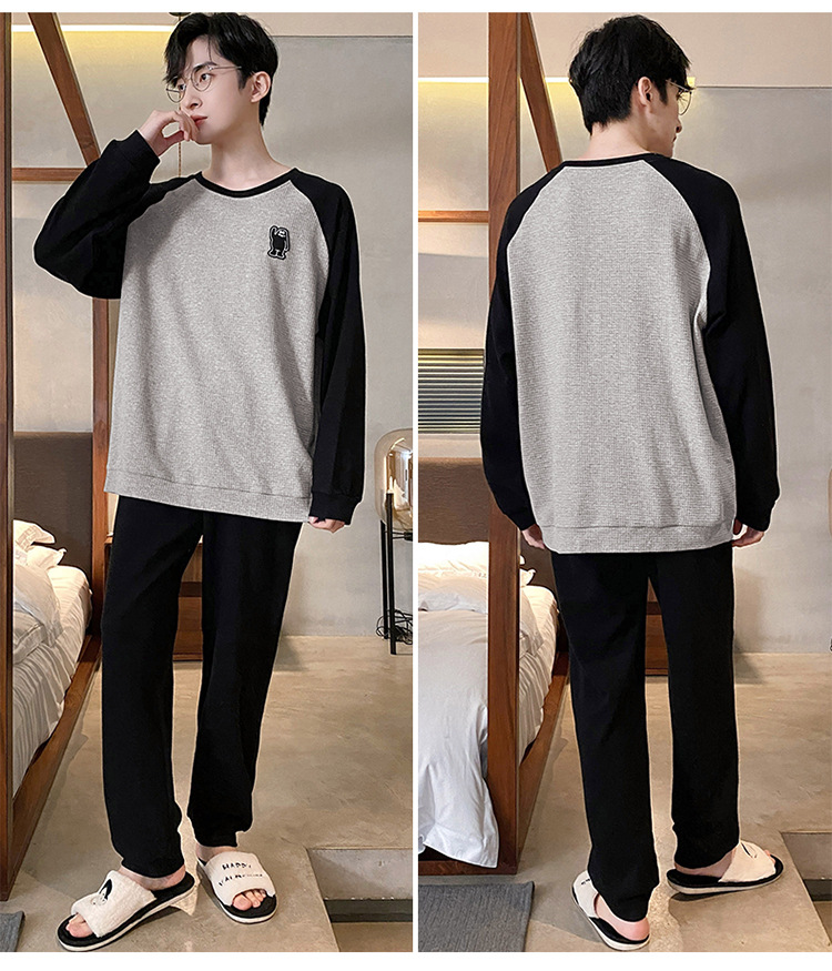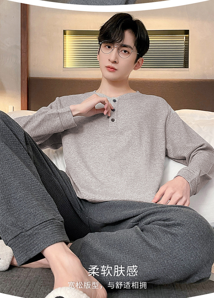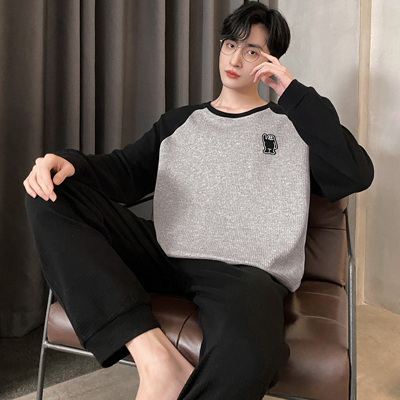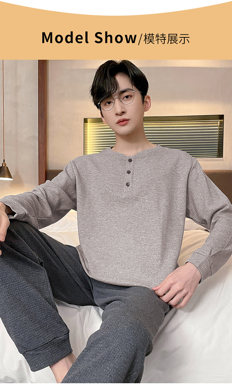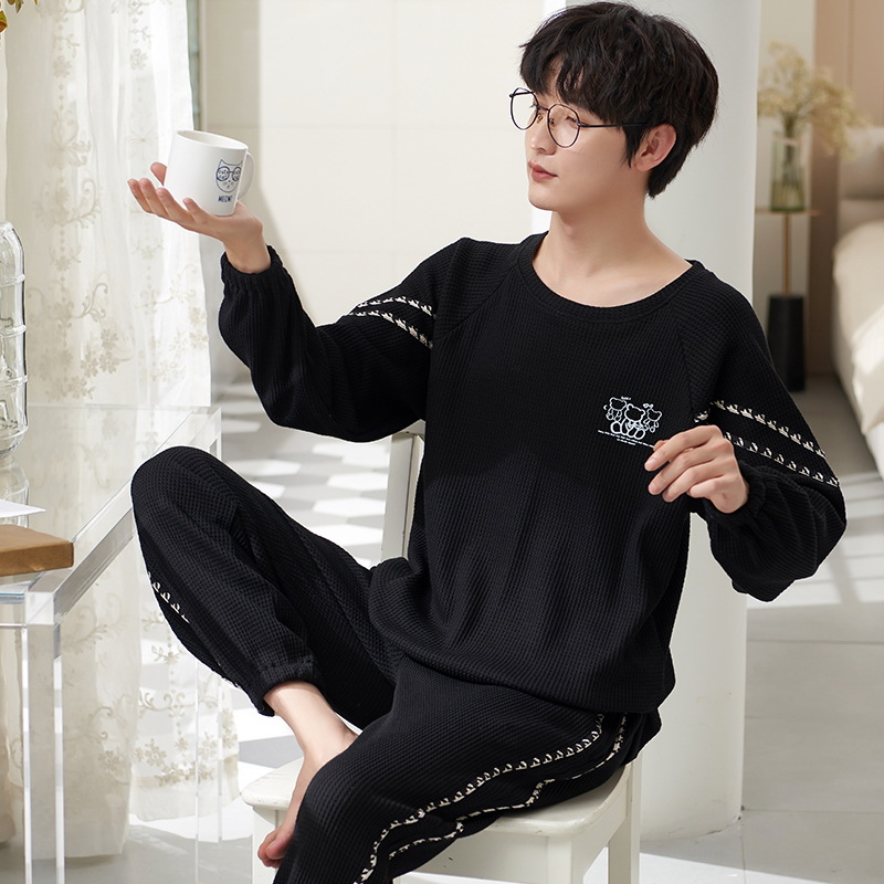 와플 잠옷 남자의 면 봄과 가을 새로운 스타일 긴 소매 젊은 남자의 가정 옷 세트 하이 엔드 웨어러블스토어 가기