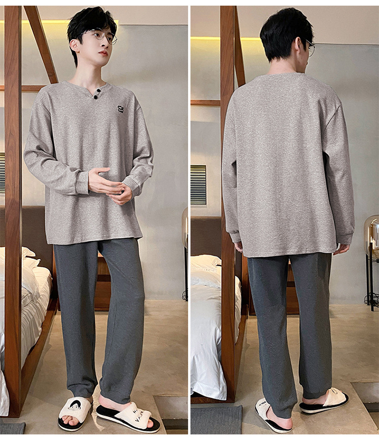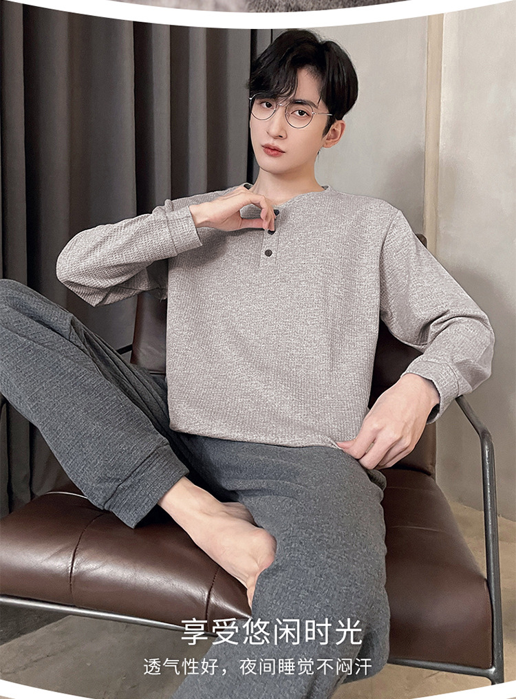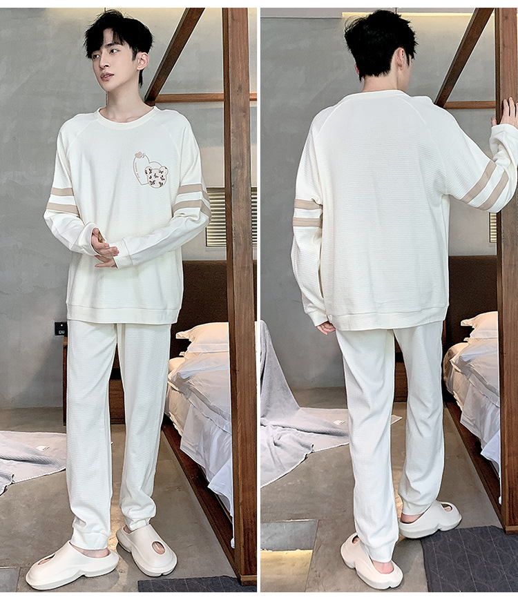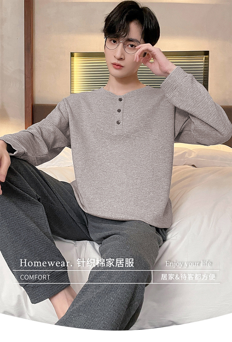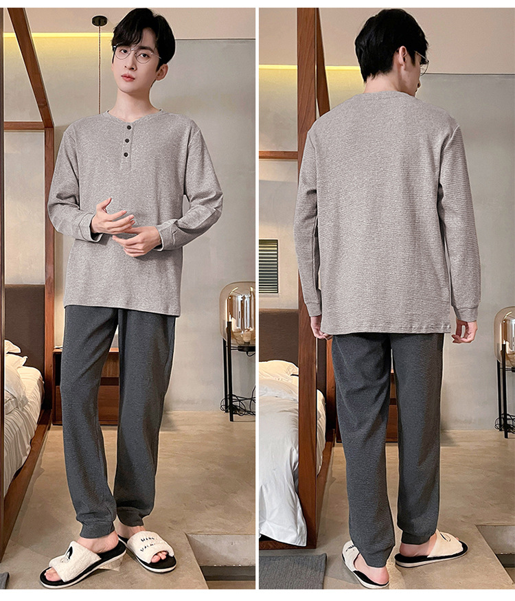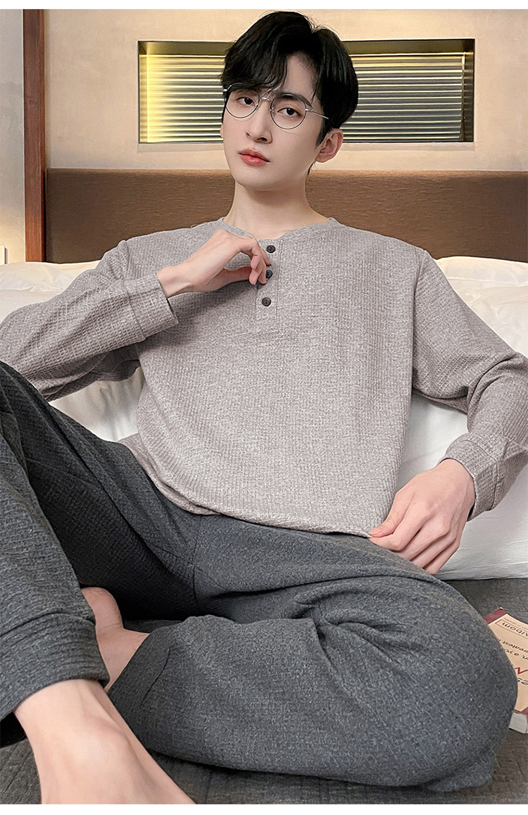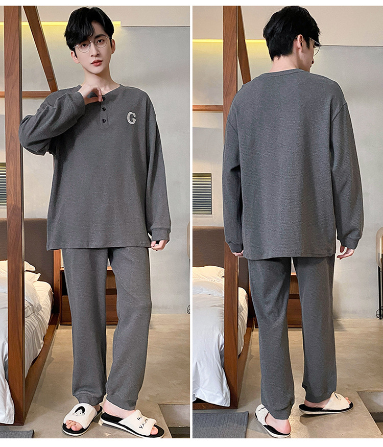 와플 잠옷 남자의 면 봄과 가을 새로운 스타일 긴 소매 젊은 남자의 가정 옷 세트 하이 엔드 웨어러블스토어 가기