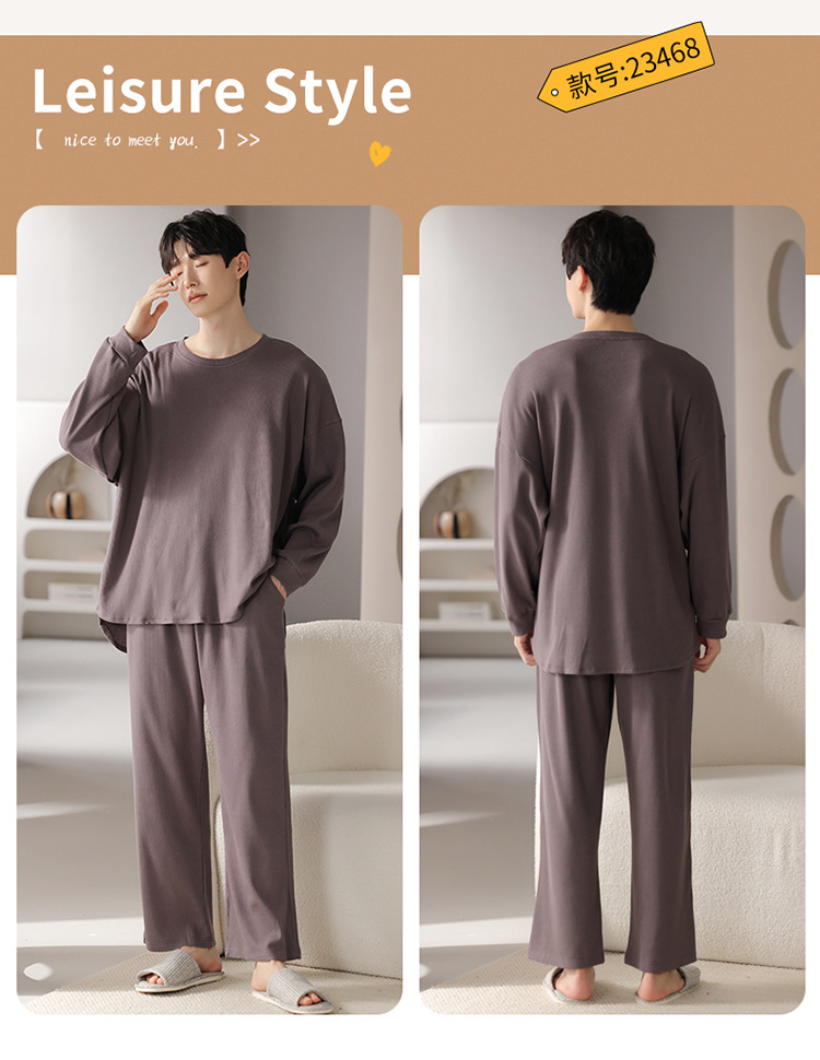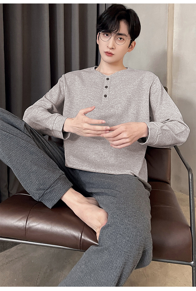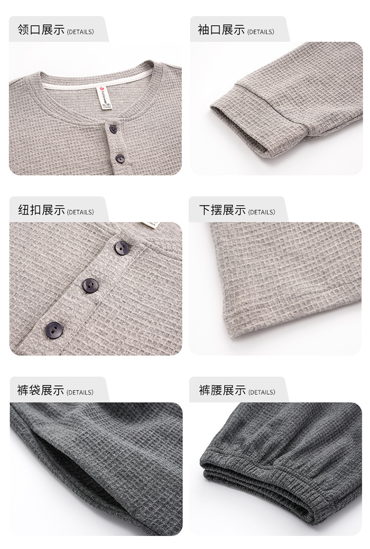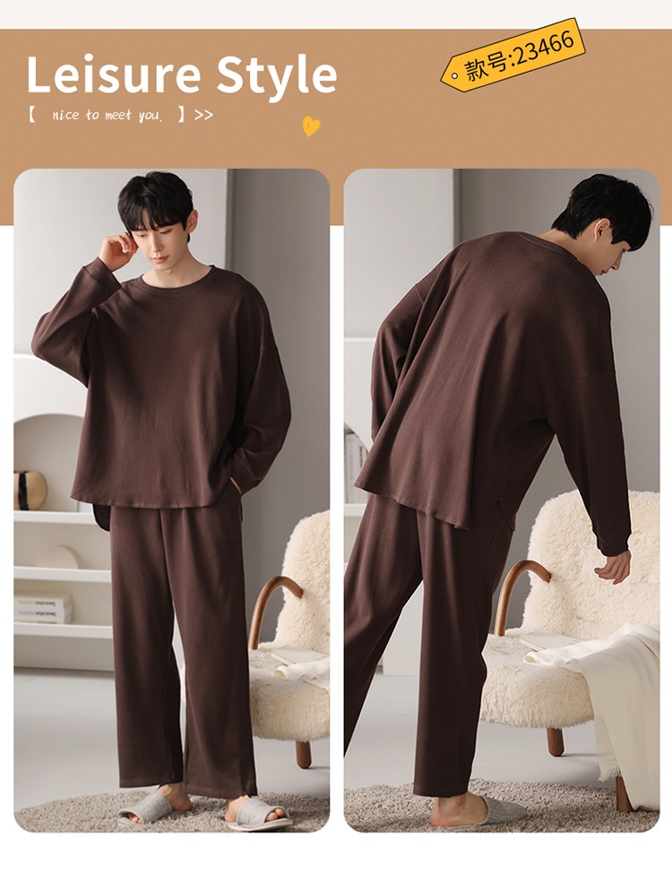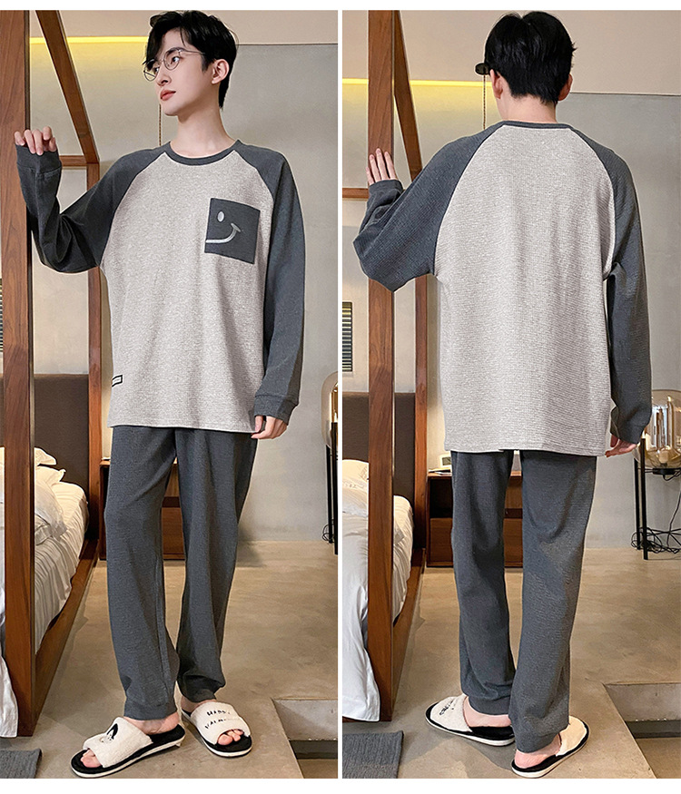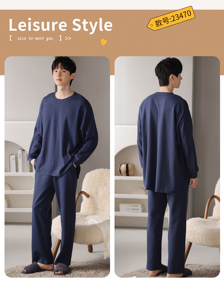 와플 잠옷 남자의 면 봄과 가을 새로운 스타일 긴 소매 젊은 남자의 가정 옷 세트 하이 엔드 웨어러블스토어 가기