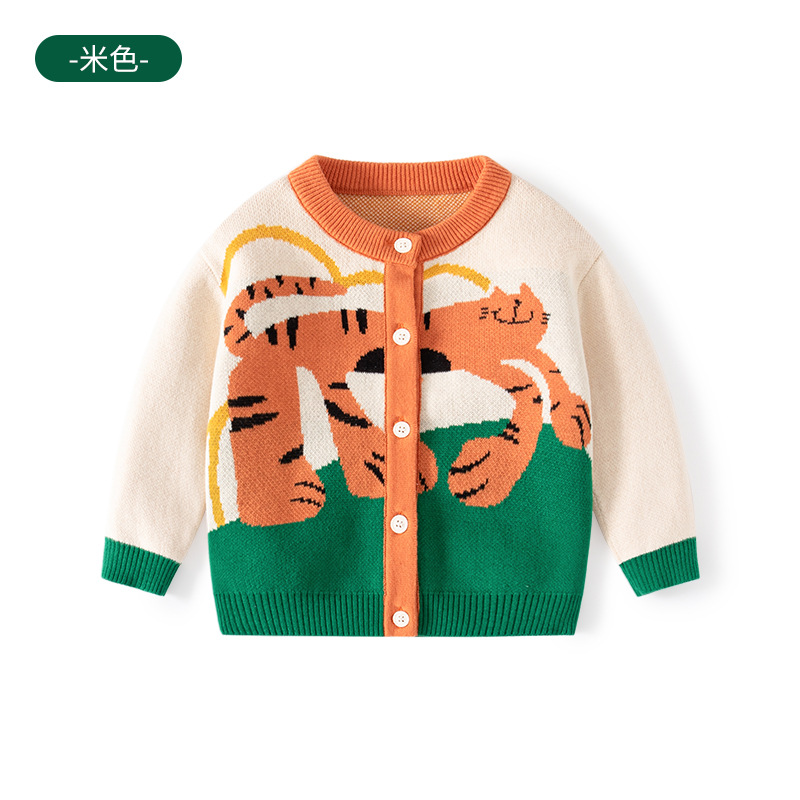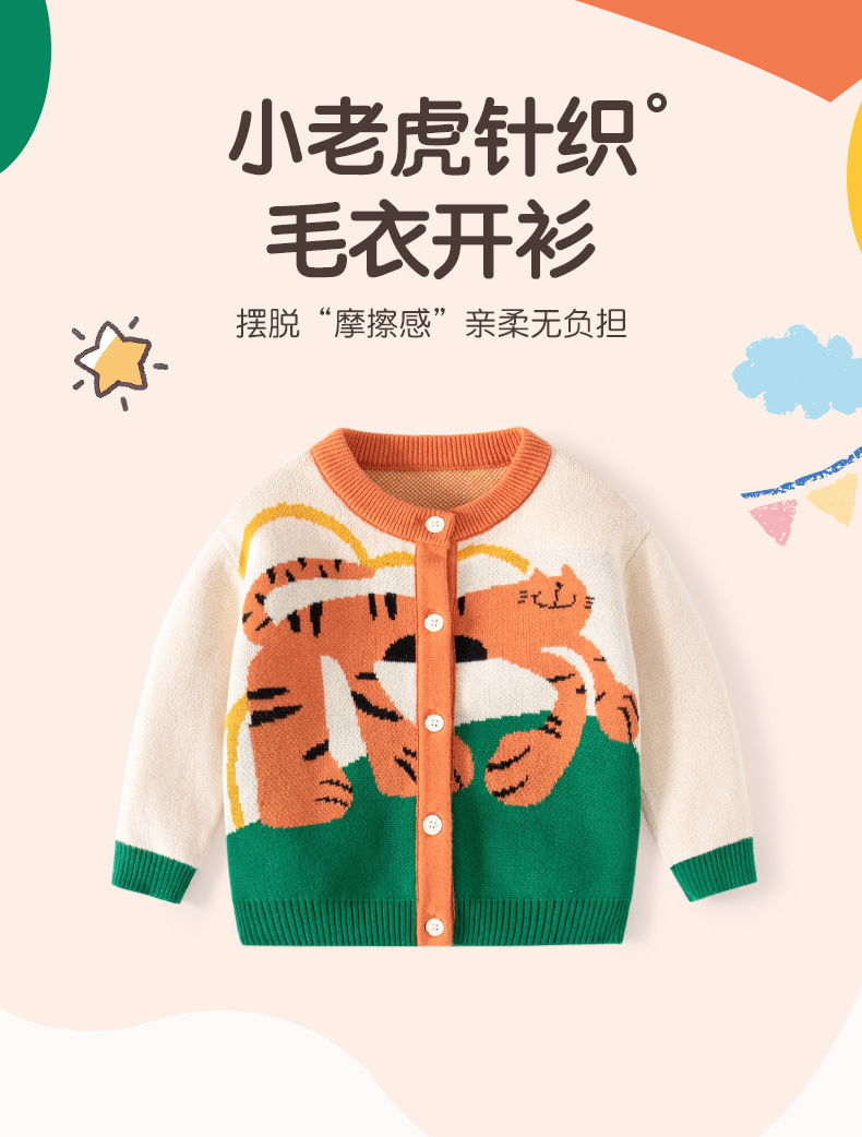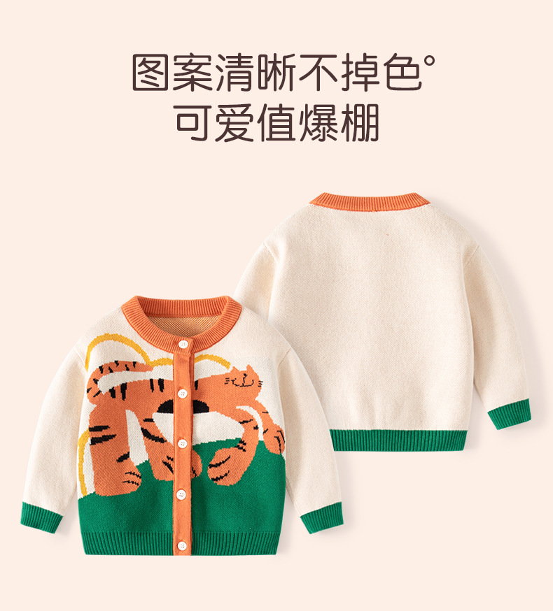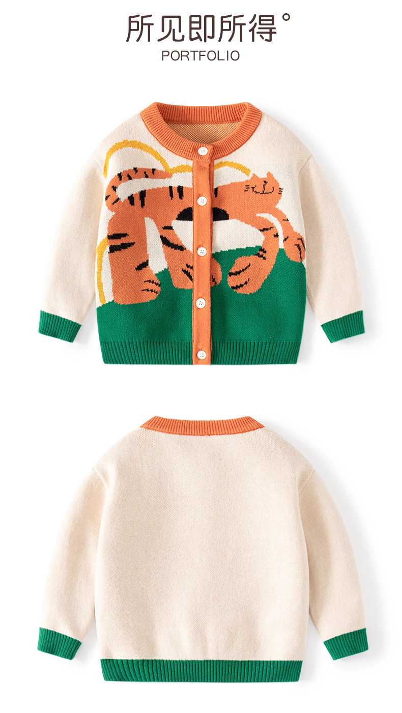 작은 호랑이 자카드 부드러운 아동용 스웨터 가디건 순면 A급 유아용 스웨터 봄 가을 아동용 니트 가디건