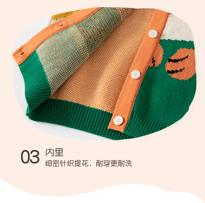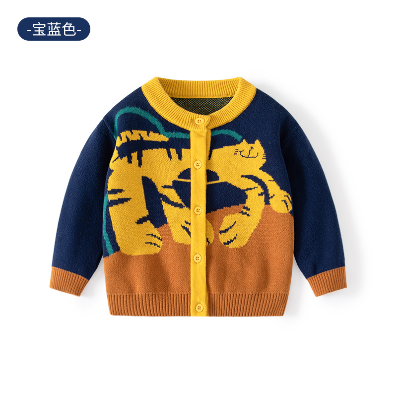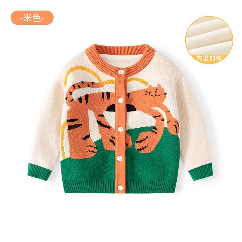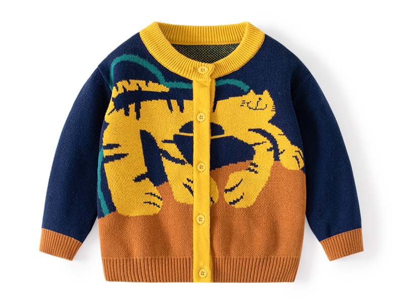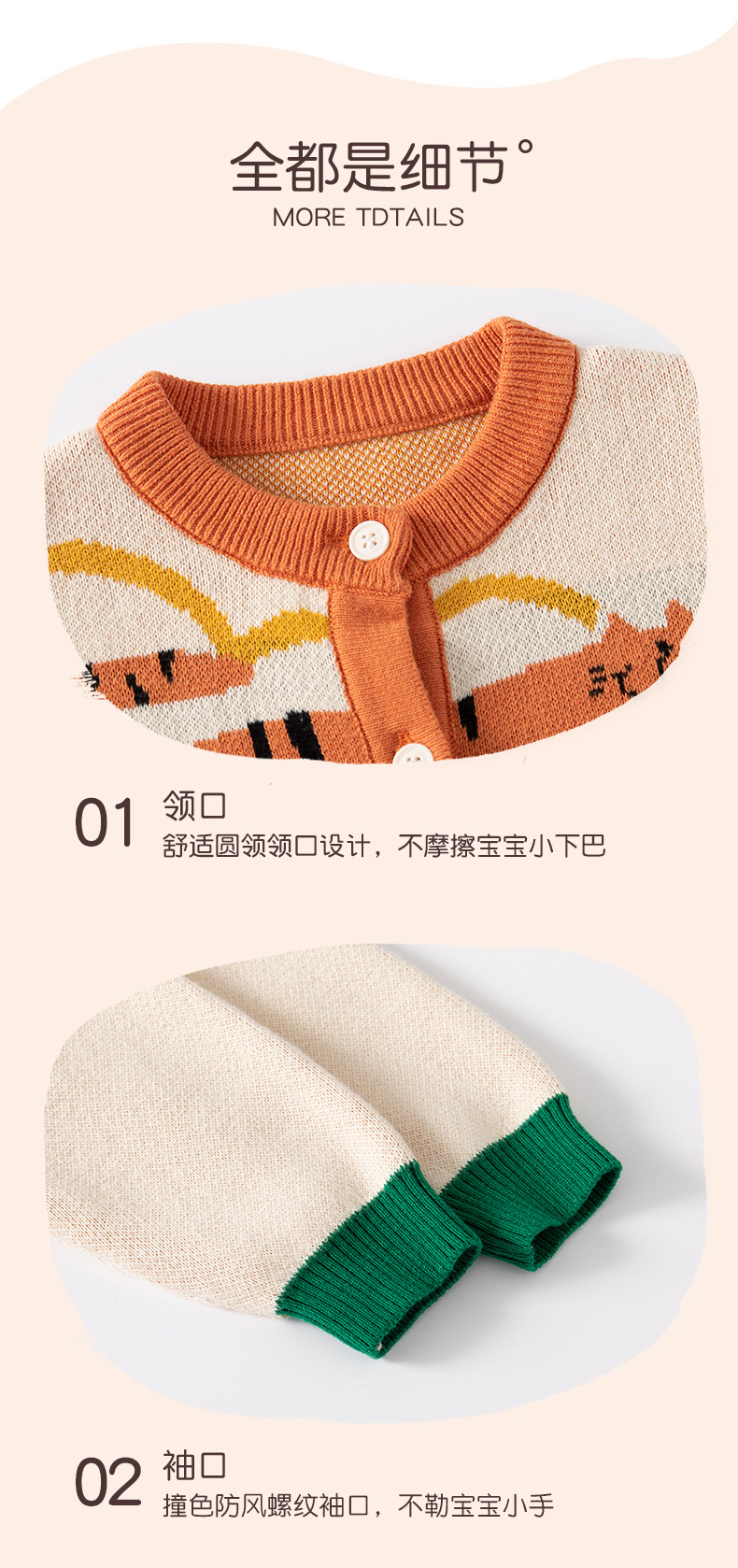 작은 호랑이 자카드 부드러운 아동용 스웨터 가디건 순면 A급 유아용 스웨터 봄 가을 아동용 니트 가디건