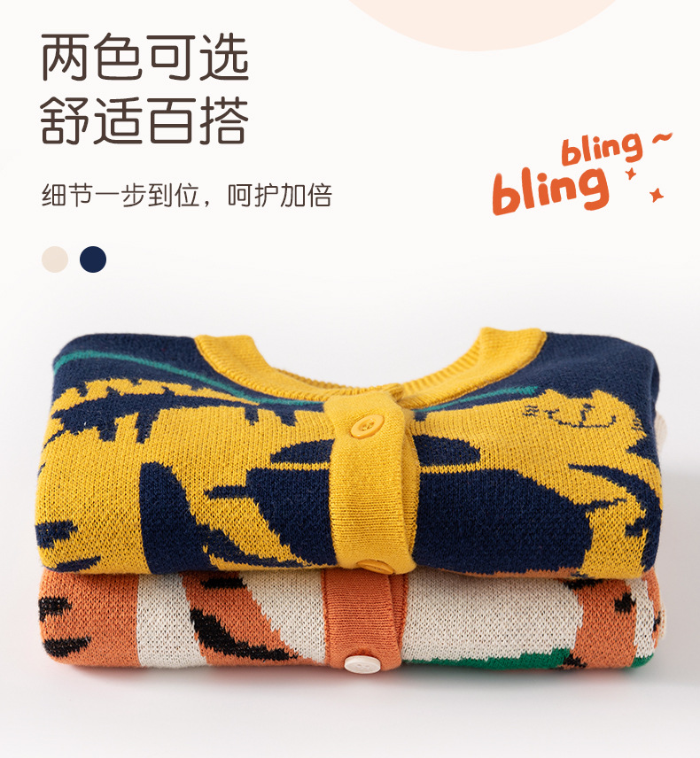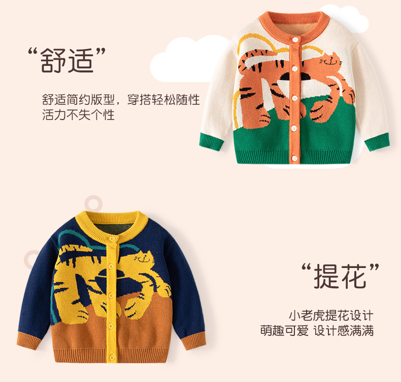 작은 호랑이 자카드 부드러운 아동용 스웨터 가디건 순면 A급 유아용 스웨터 봄 가을 아동용 니트 가디건스토어 가기