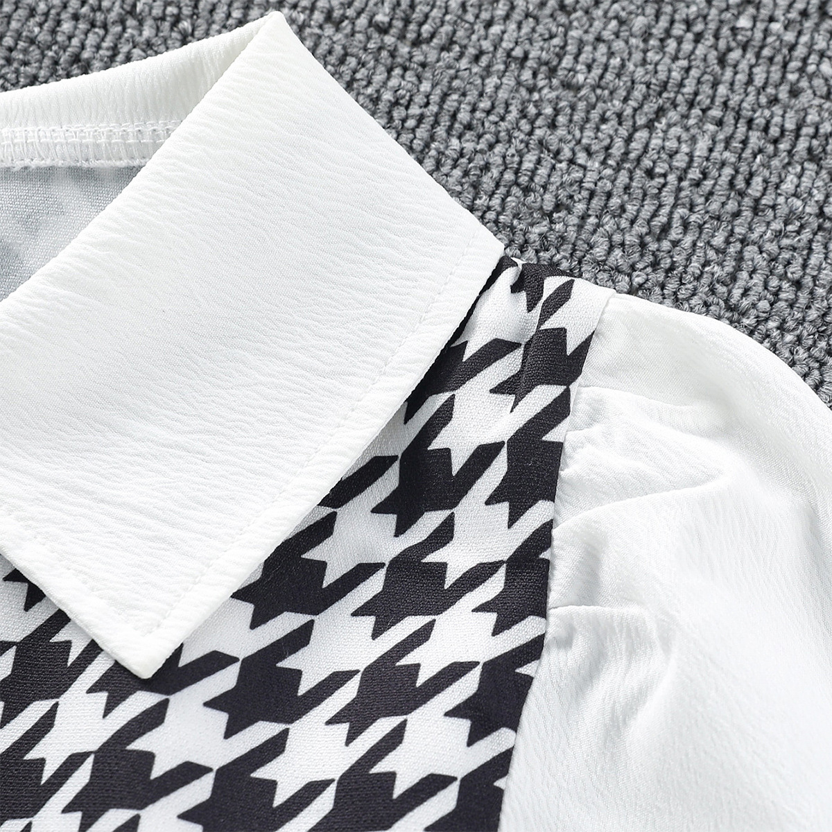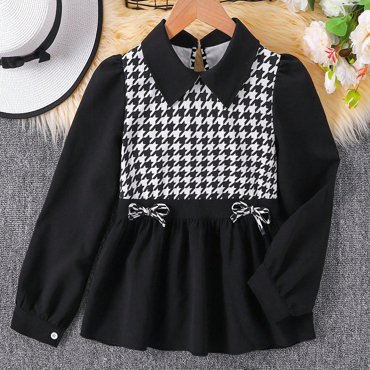 儿童套头衫2024春季外贸款千鸟格拼接假两件女童T恤欧美拼色童装
