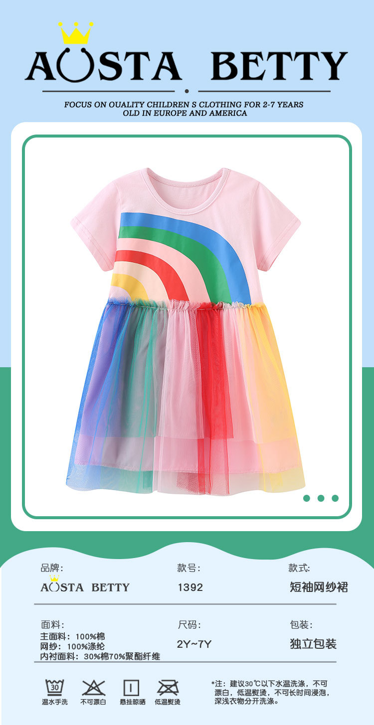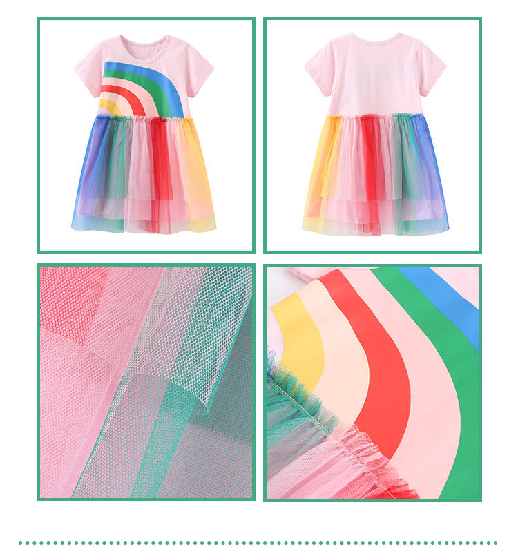 여름 새로운 소녀 원피스 유럽과 미국 스타일 만화 인쇄 메쉬 공주 원피스 라운드 넥 어린이 착용 다채로운 베일 원피스스토어 가기