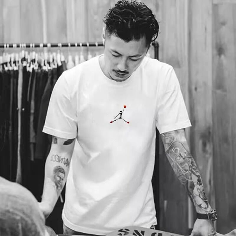 유 웬레 티셔츠 남성 패션 브랜드 반팔 T 여름 라운드 넥 화이트면 느슨한 남성 반팔 하의 셔츠 탑 도매