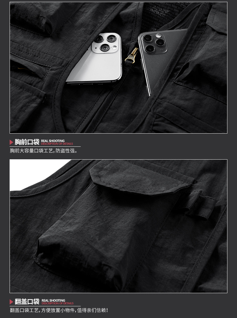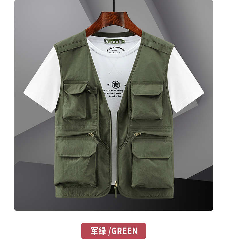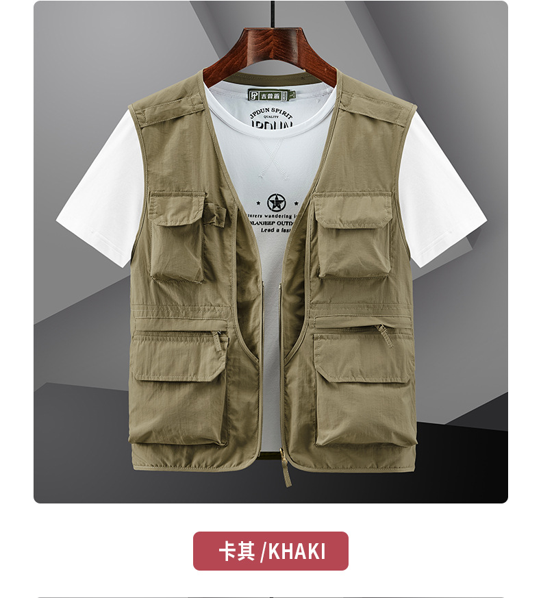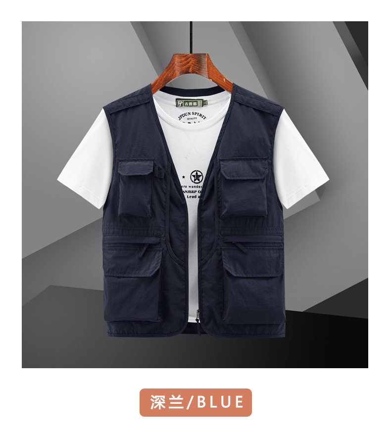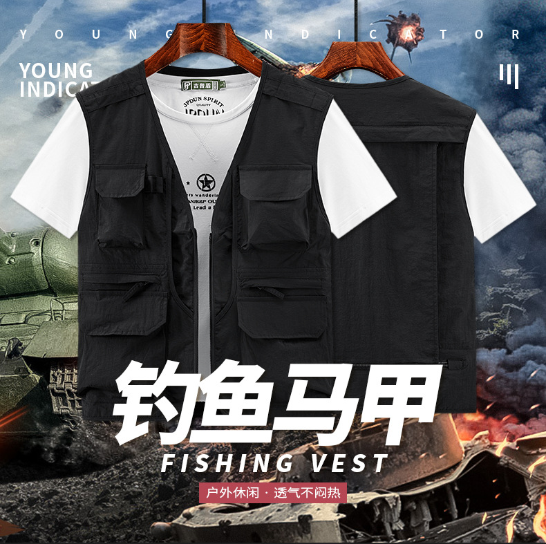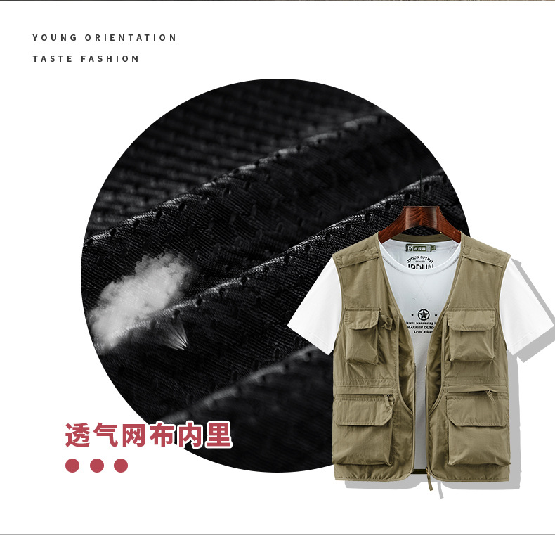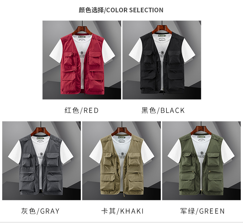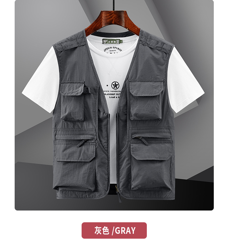 봄 2023 새로운 스타일 작업복 멀티 포켓 V-넥 캐주얼 낚시 사진 남성용 민소매 조끼 얇은 조끼스토어 가기