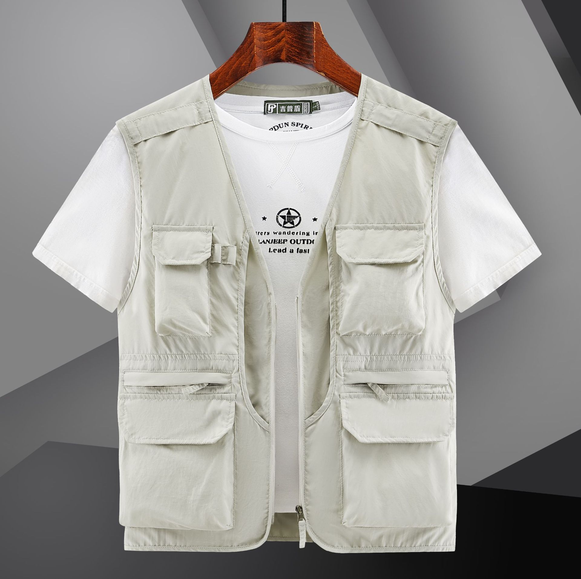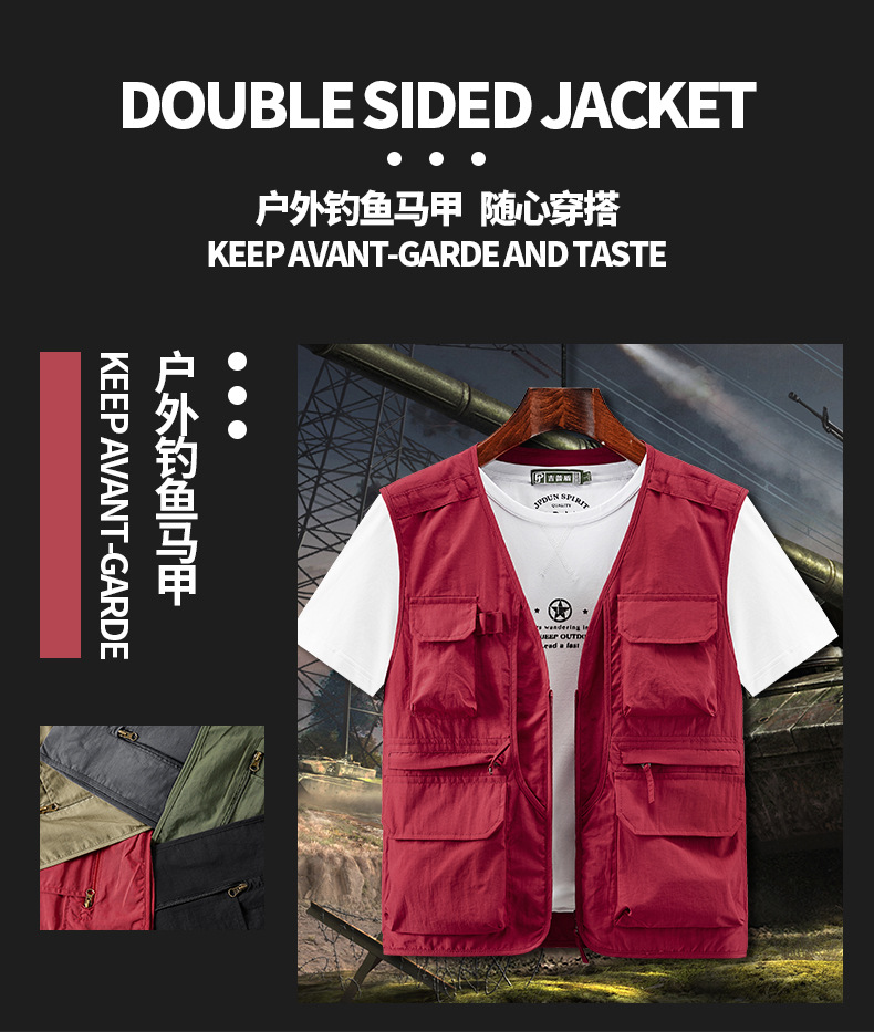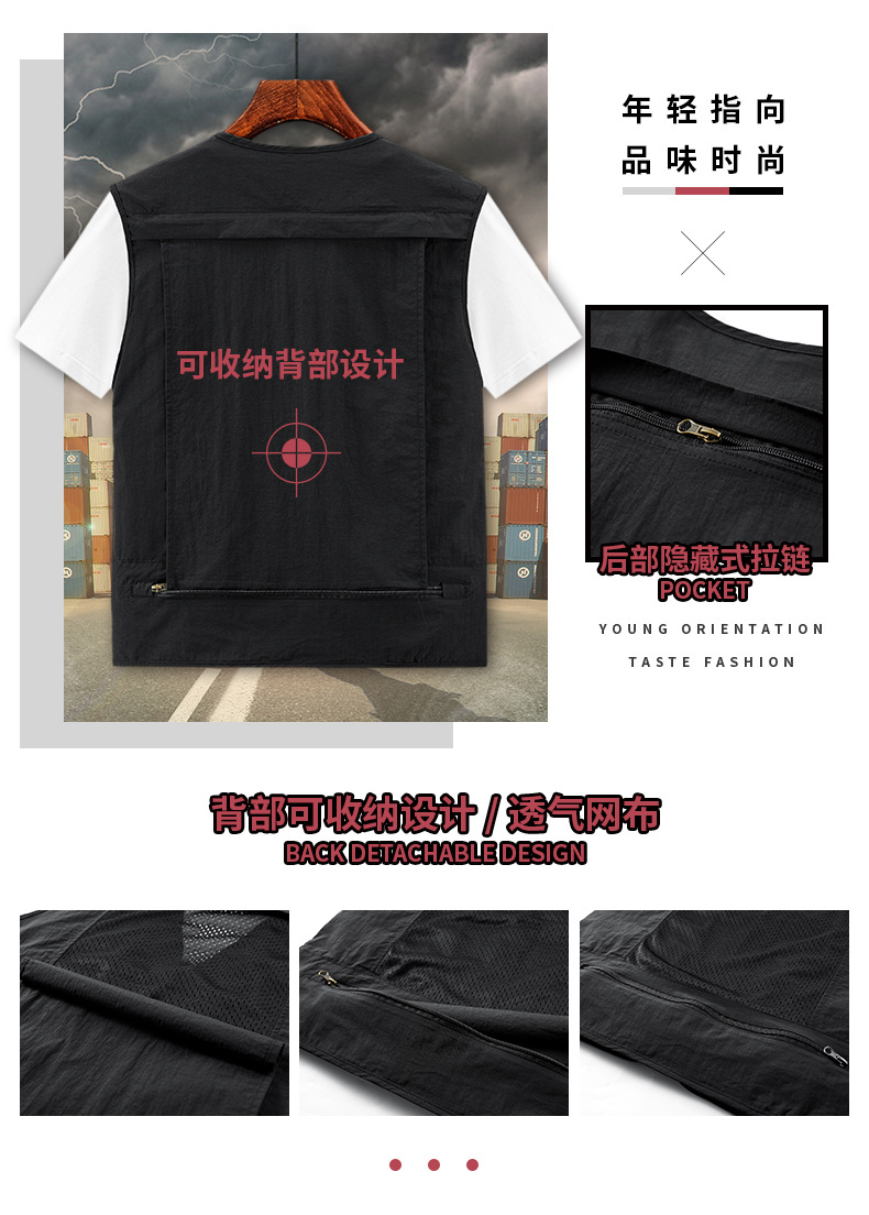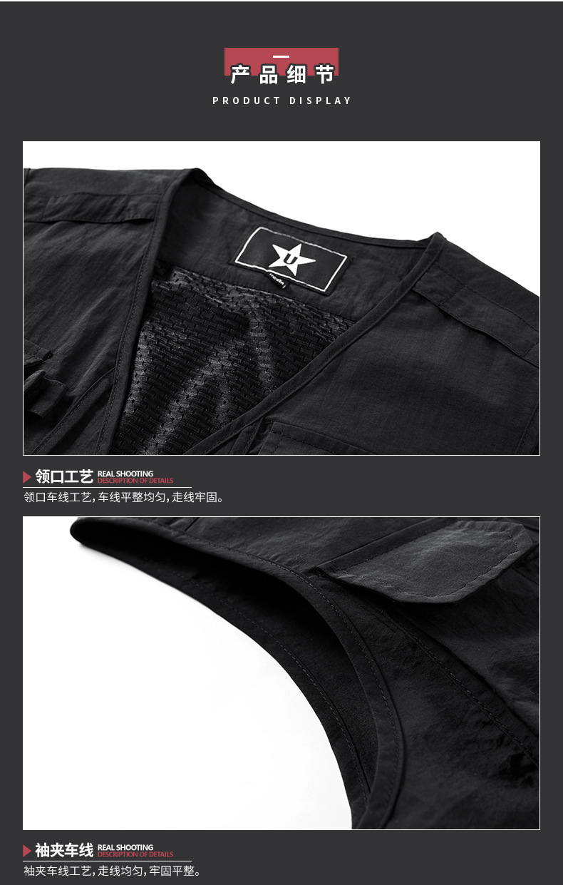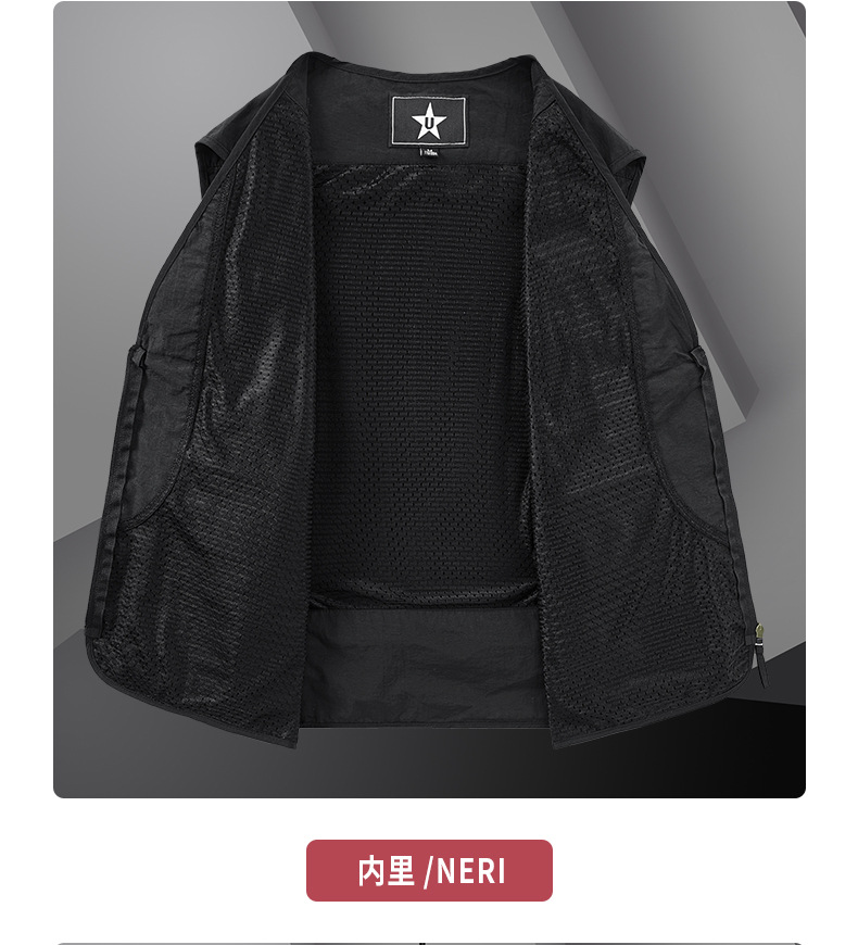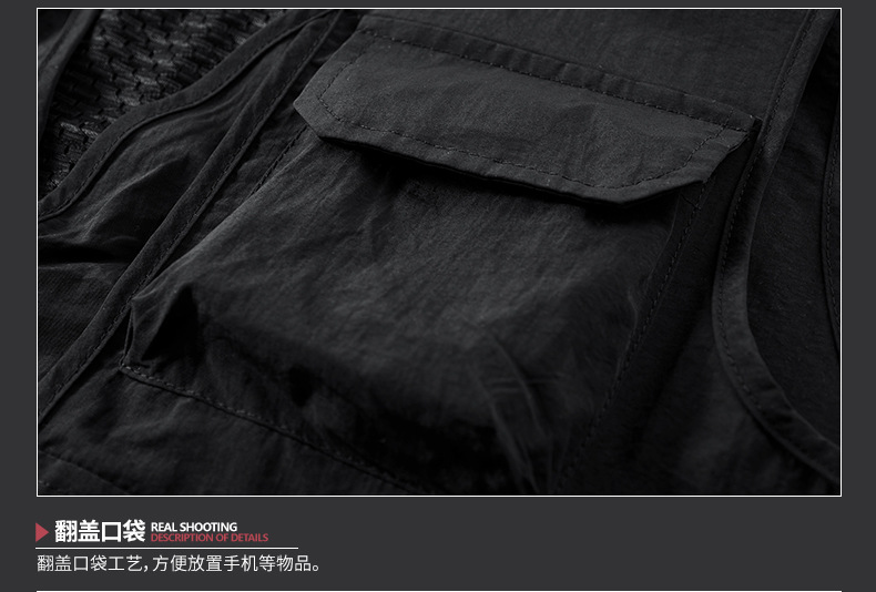 봄 2023 새로운 스타일 작업복 멀티 포켓 V-넥 캐주얼 낚시 사진 남성용 민소매 조끼 얇은 조끼스토어 가기