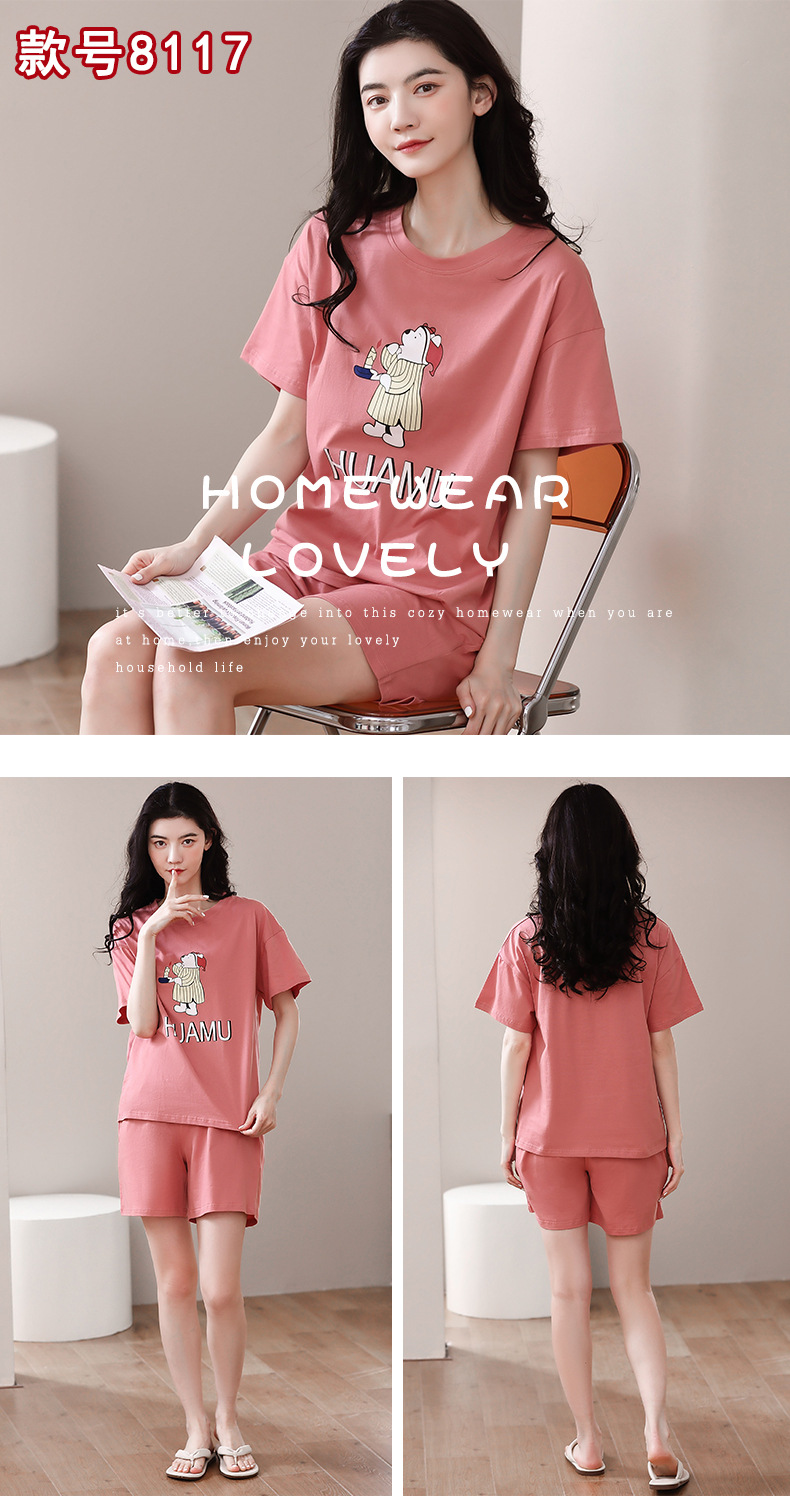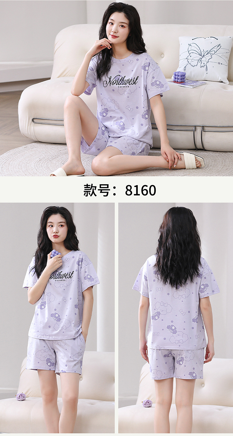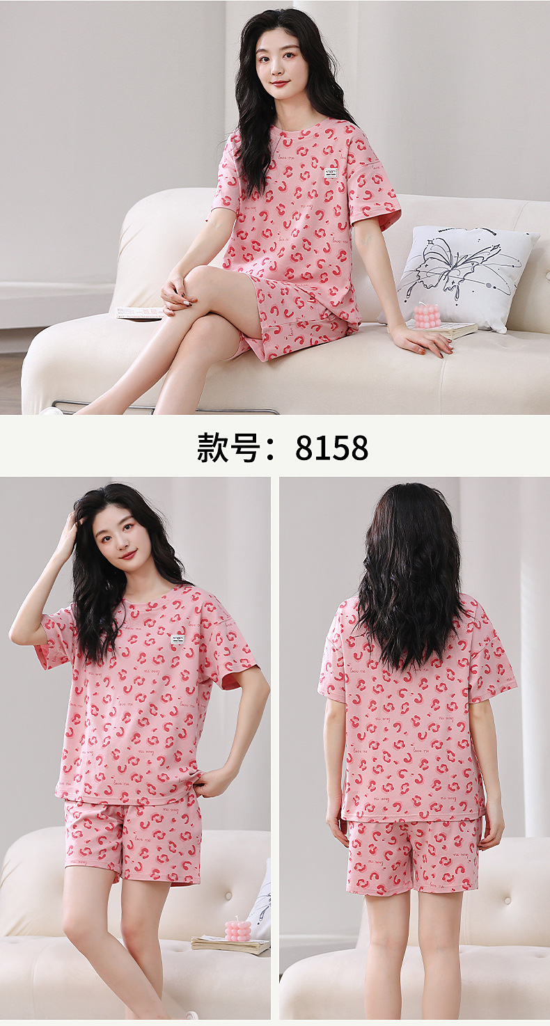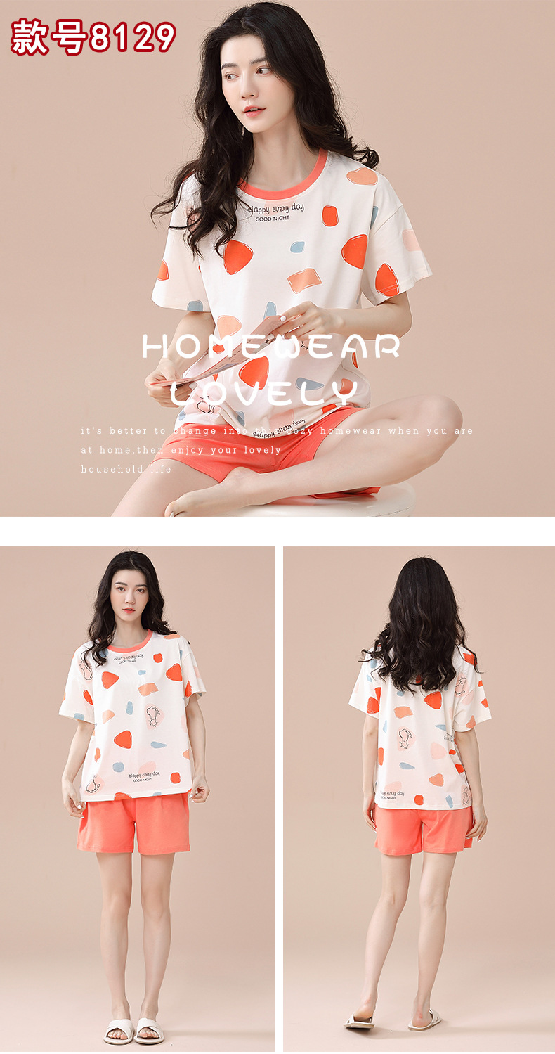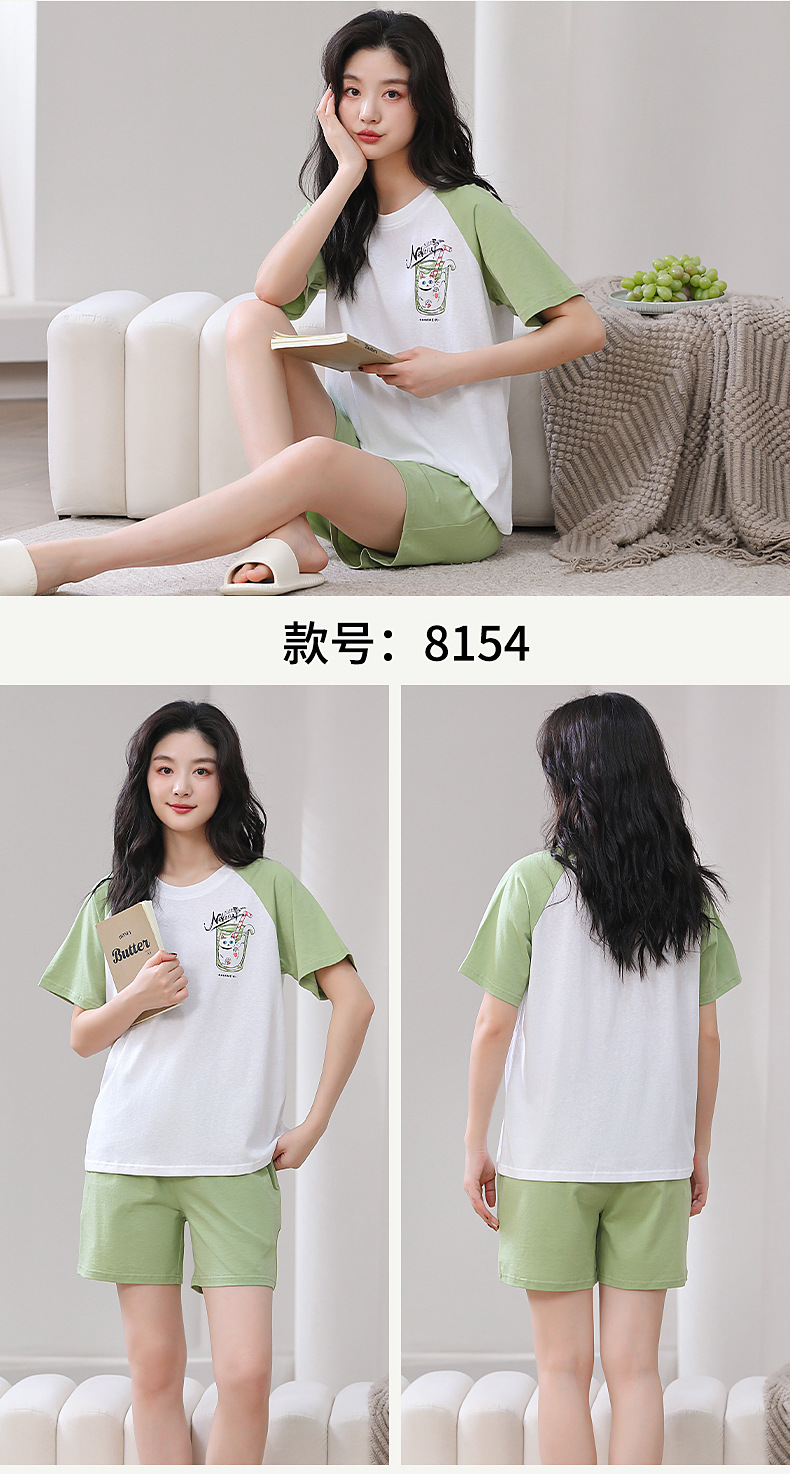 100% 면 잠옷 여성 여름 순면 얇은 라운드 넥 반팔 반바지 귀여운 여름 면 홈웨어 세트스토어 가기