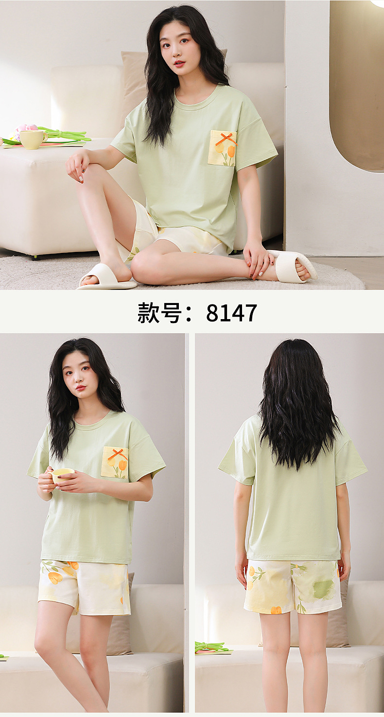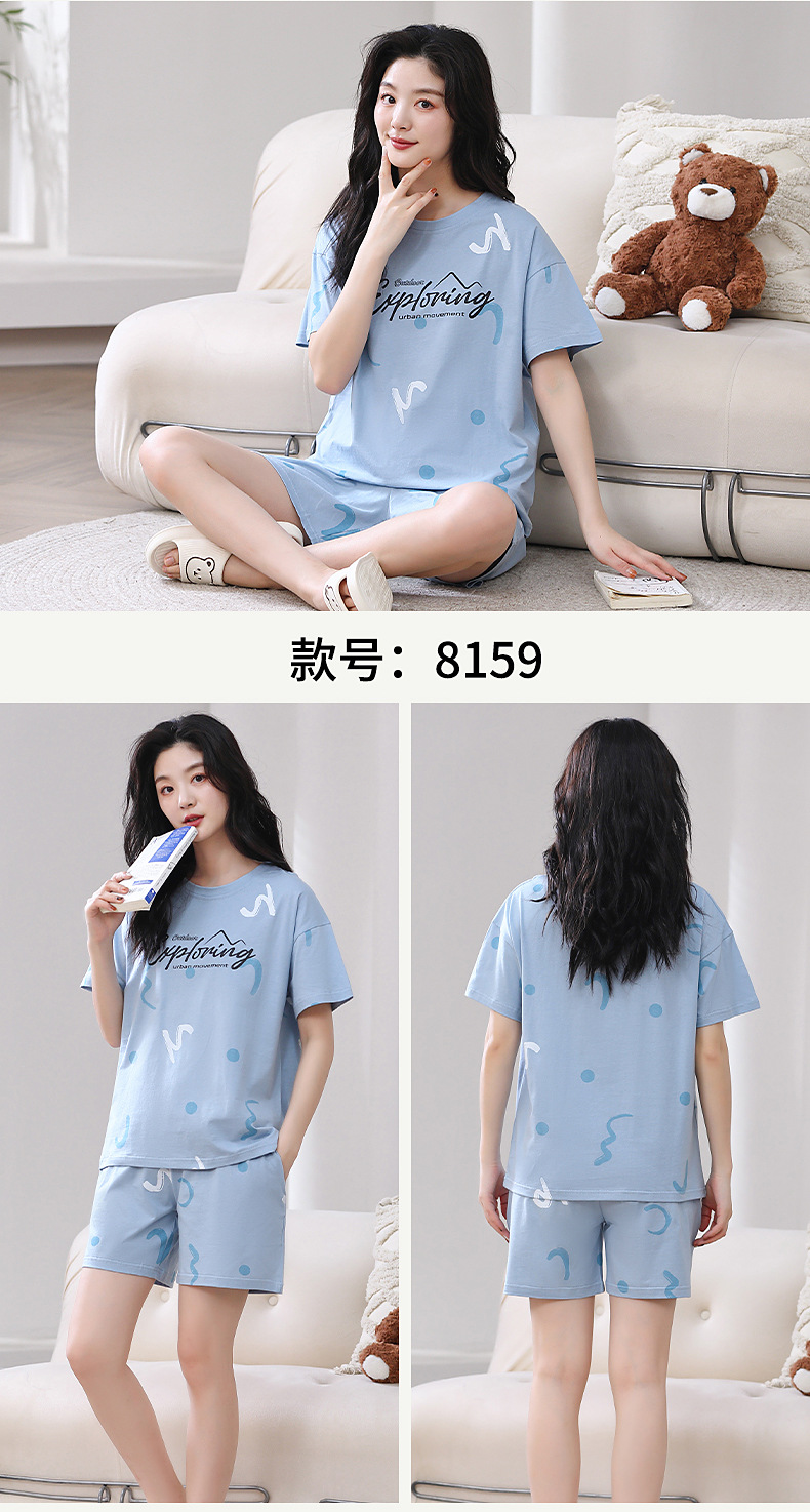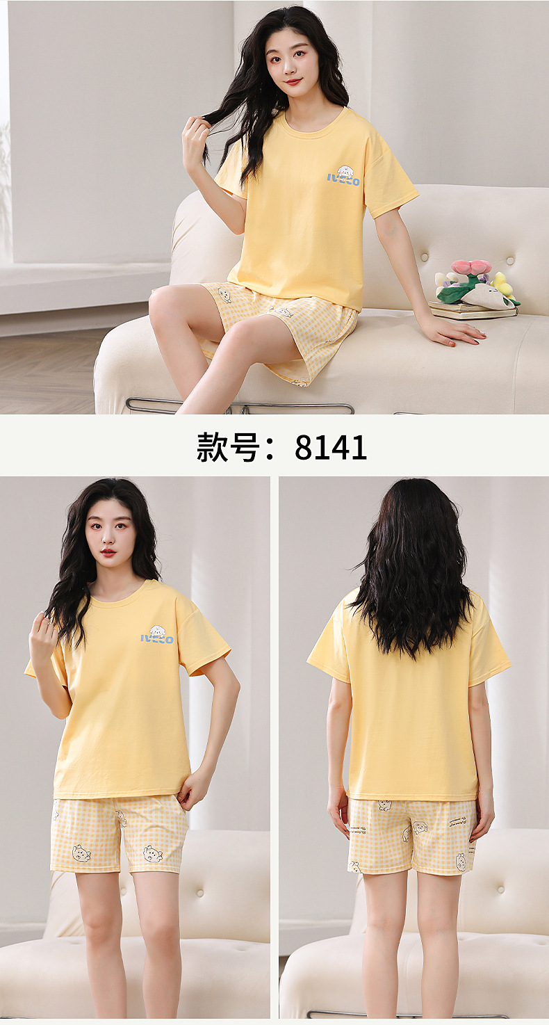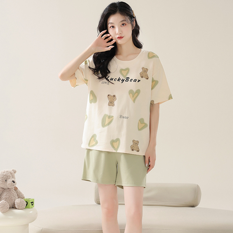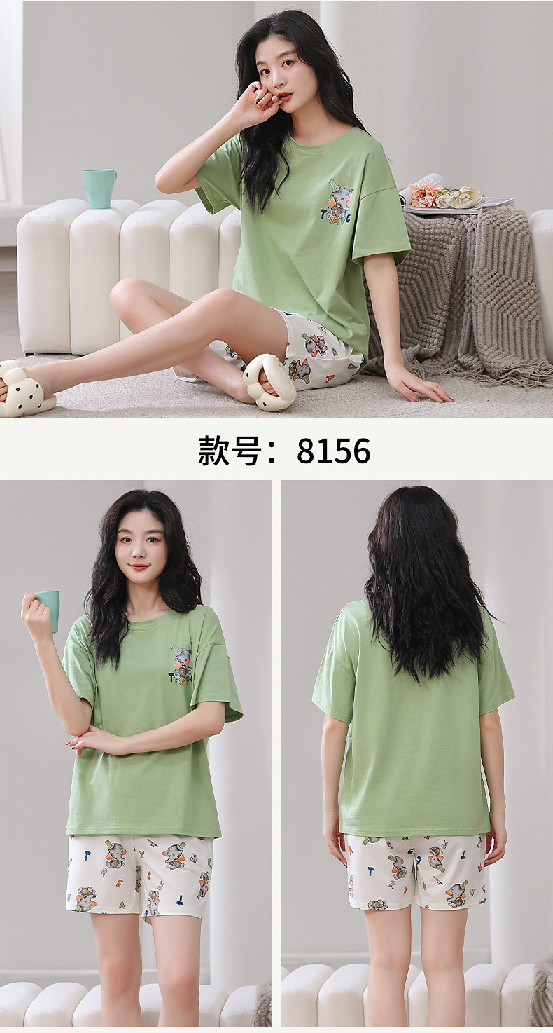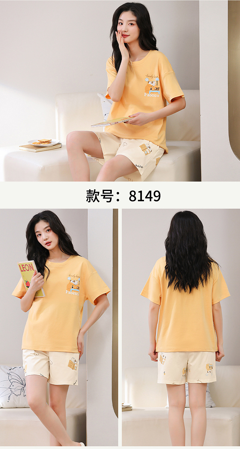 100% 면 잠옷 여성 여름 순면 얇은 라운드 넥 반팔 반바지 귀여운 여름 면 홈웨어 세트스토어 가기