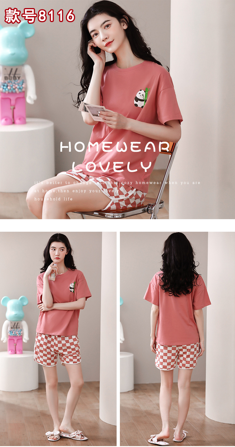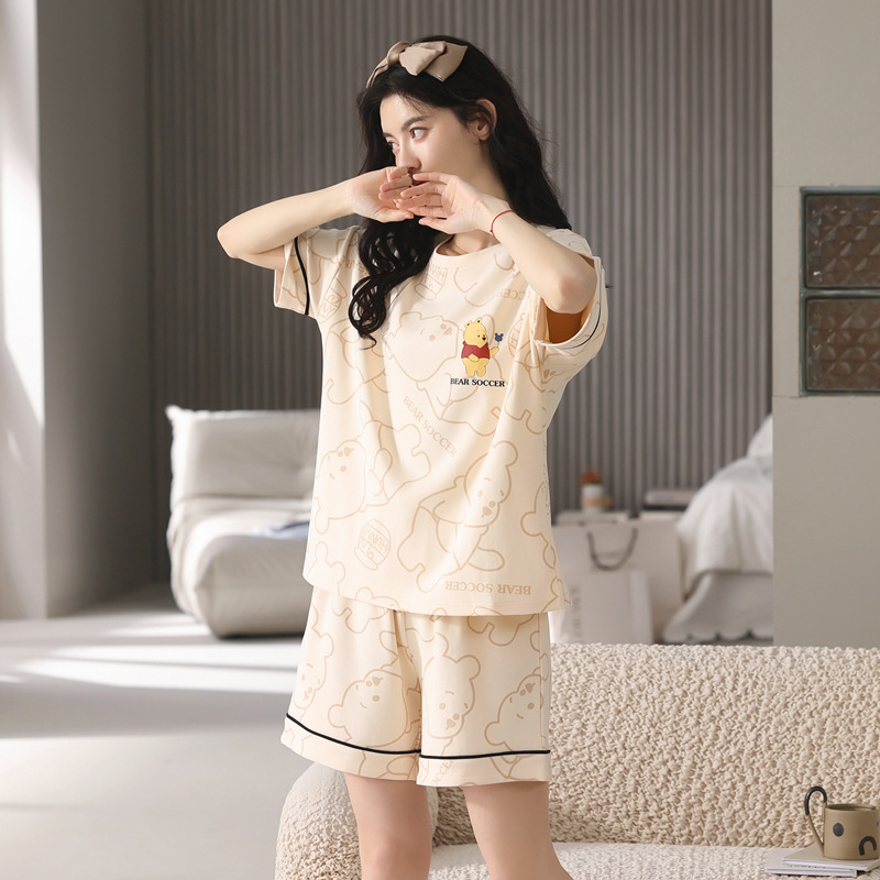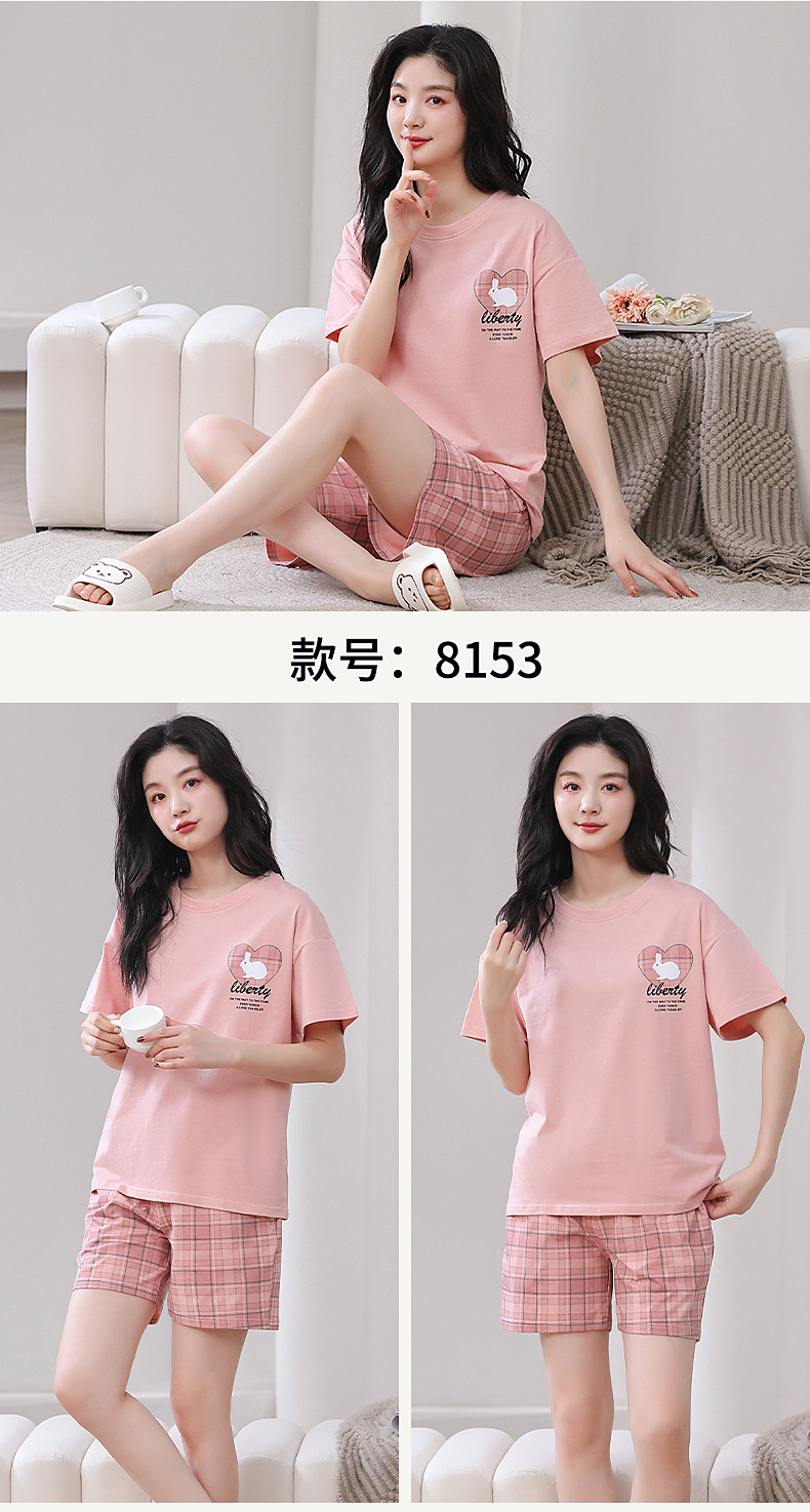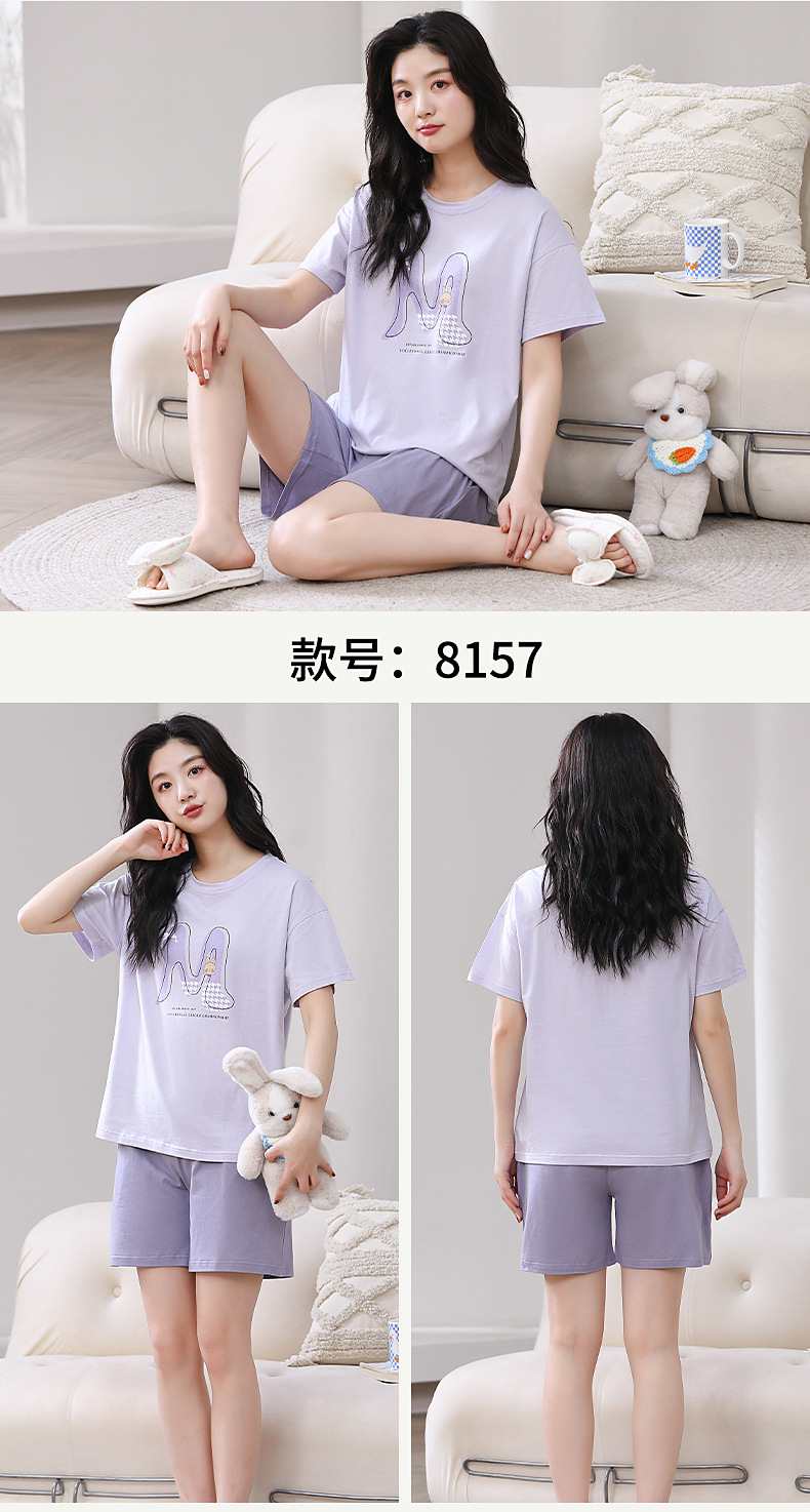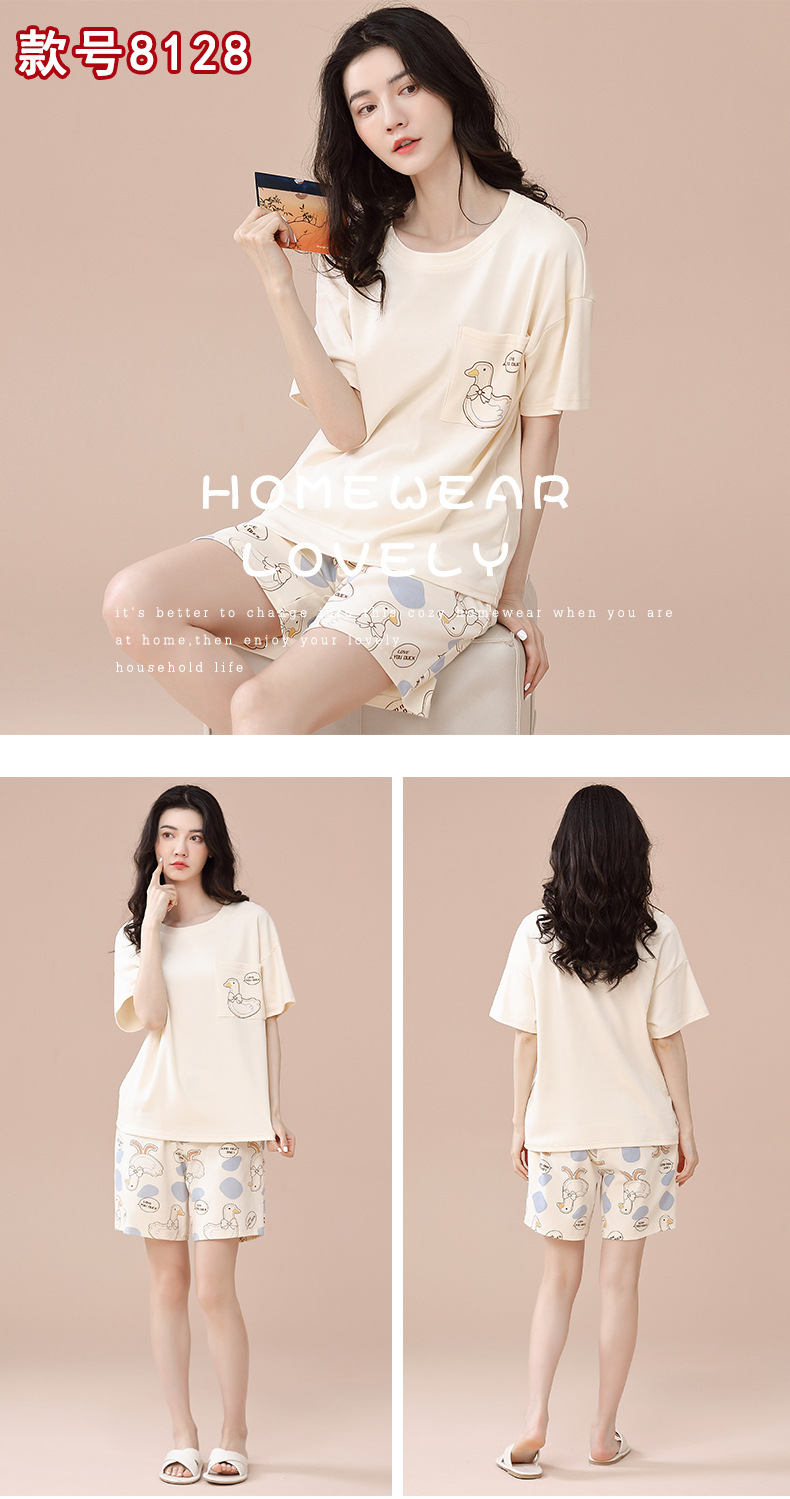 100% 면 잠옷 여성 여름 순면 얇은 라운드 넥 반팔 반바지 귀여운 여름 면 홈웨어 세트스토어 가기