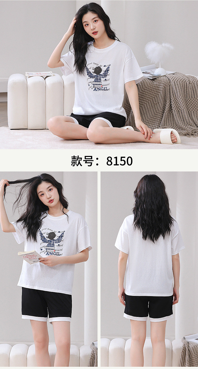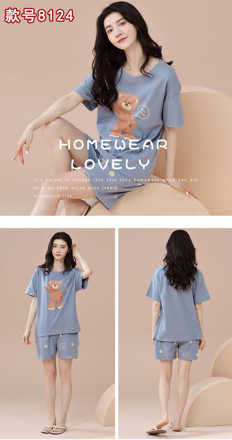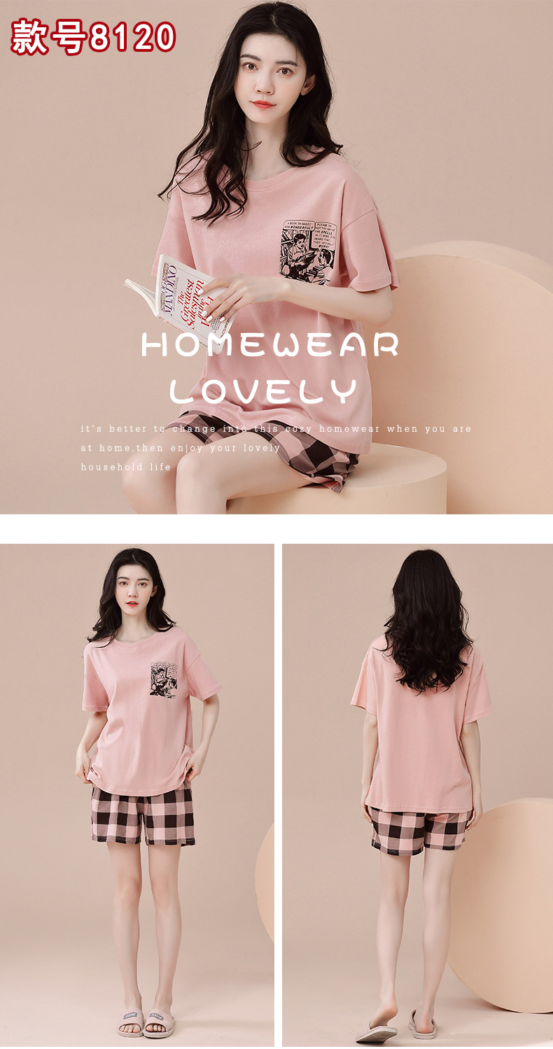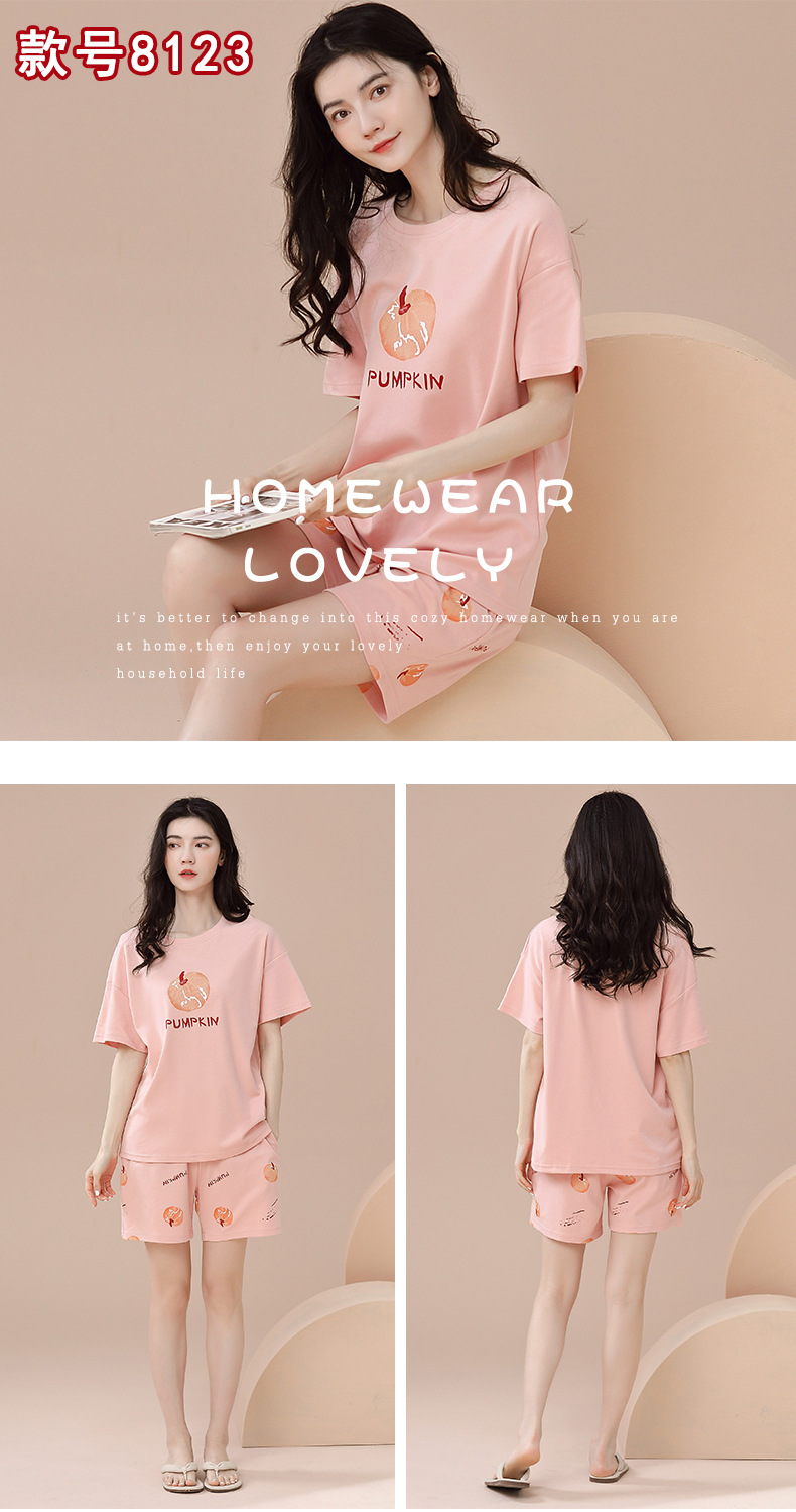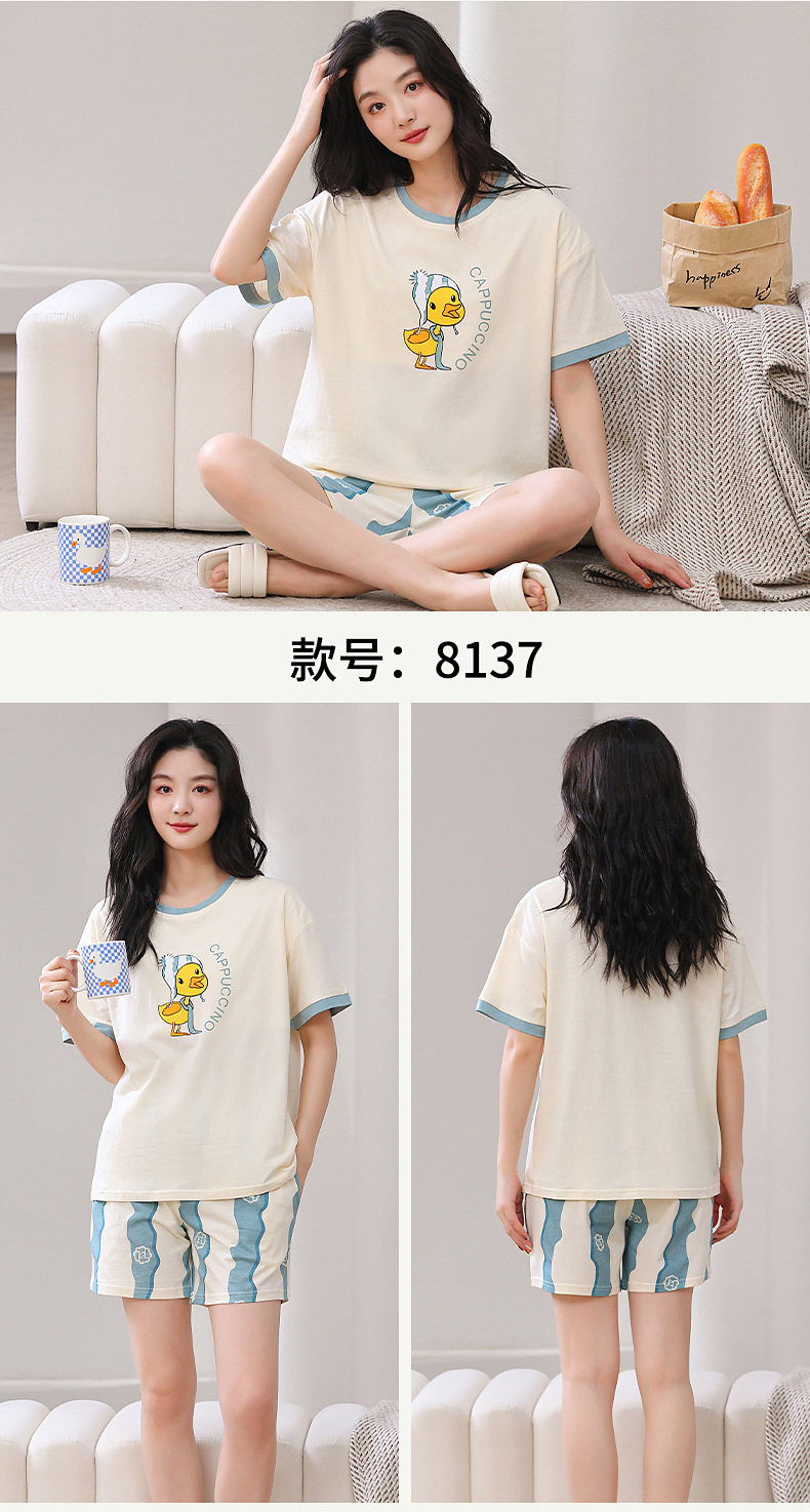 100% 면 잠옷 여성 여름 순면 얇은 라운드 넥 반팔 반바지 귀여운 여름 면 홈웨어 세트스토어 가기