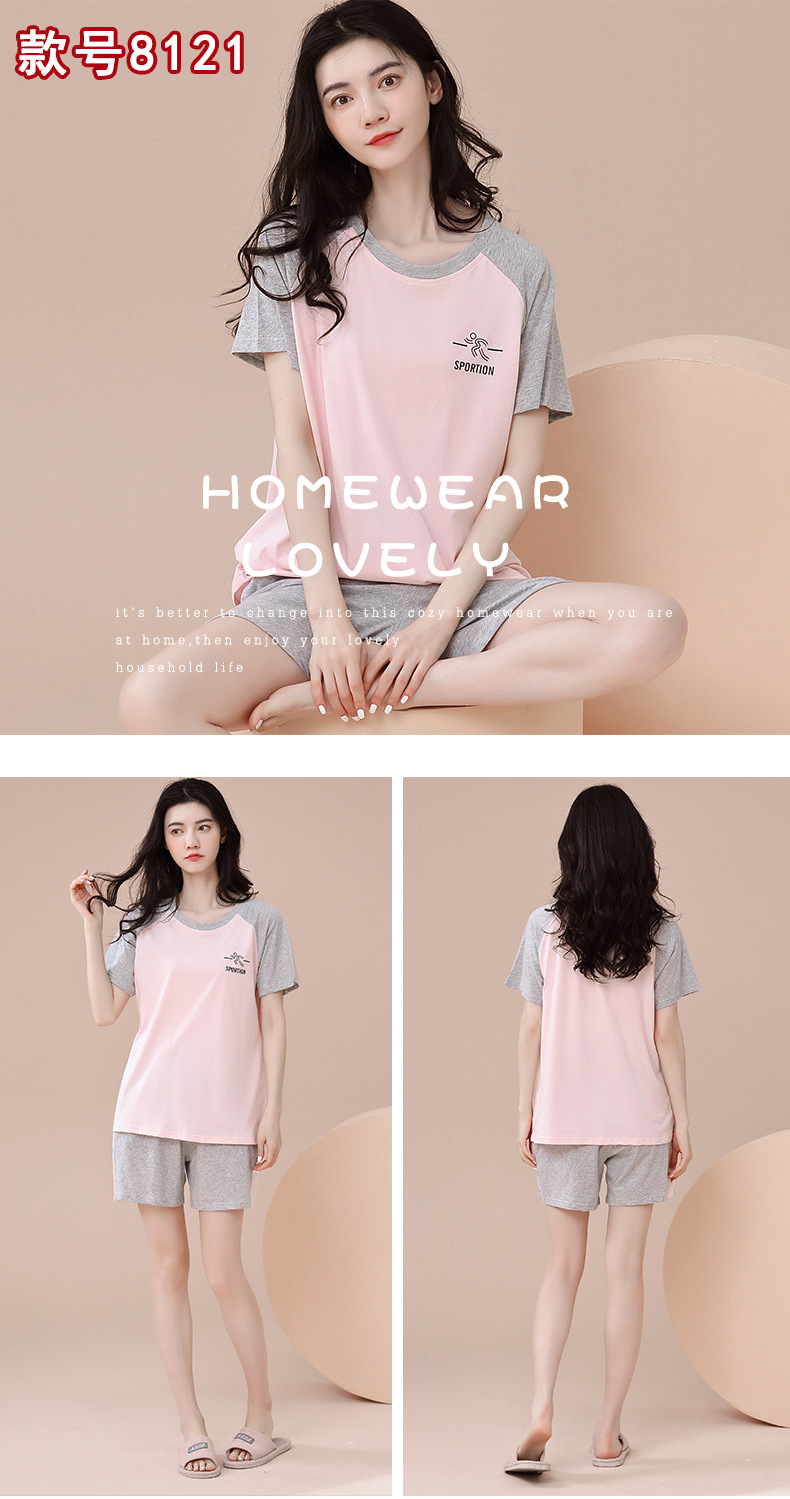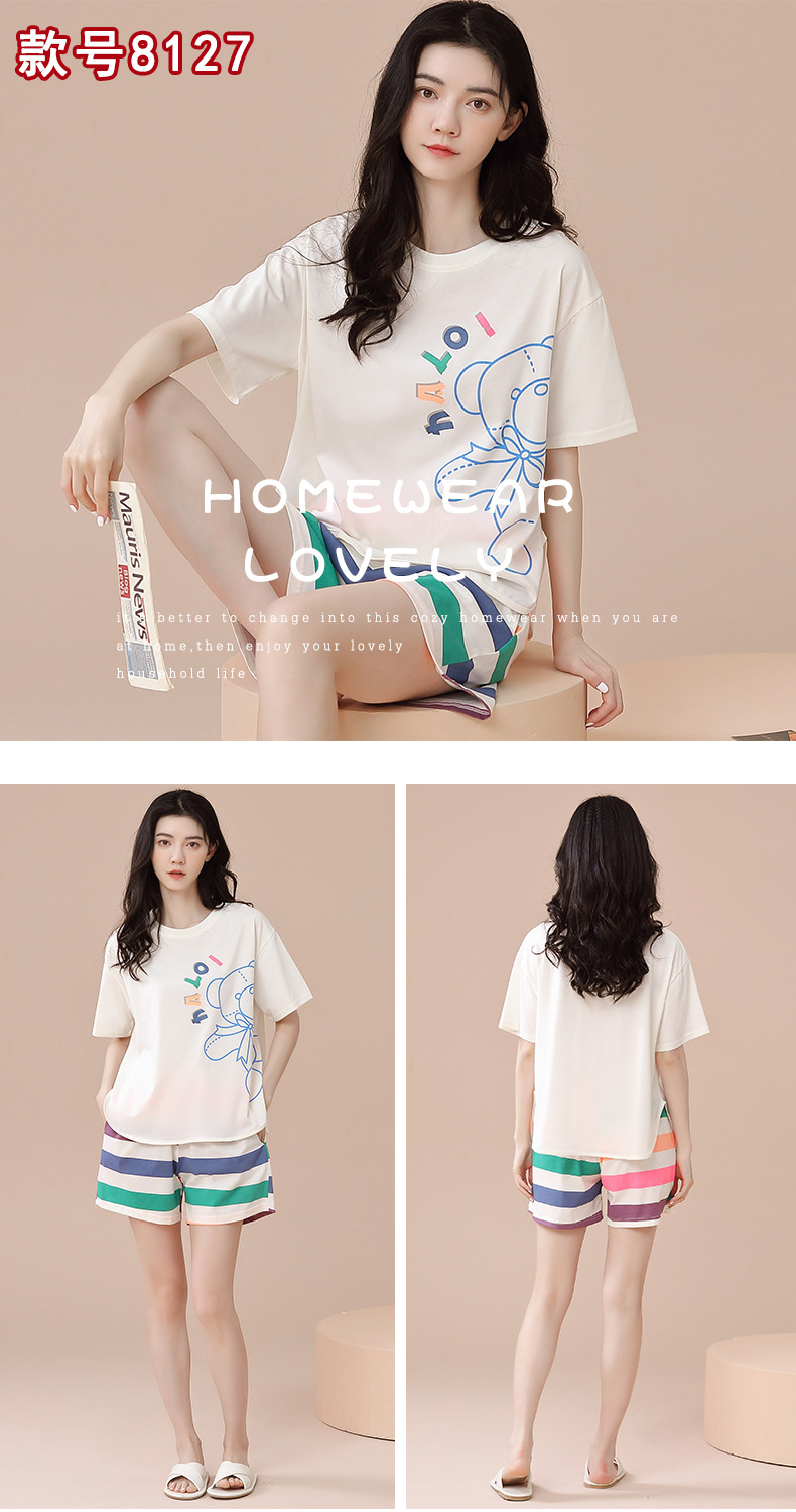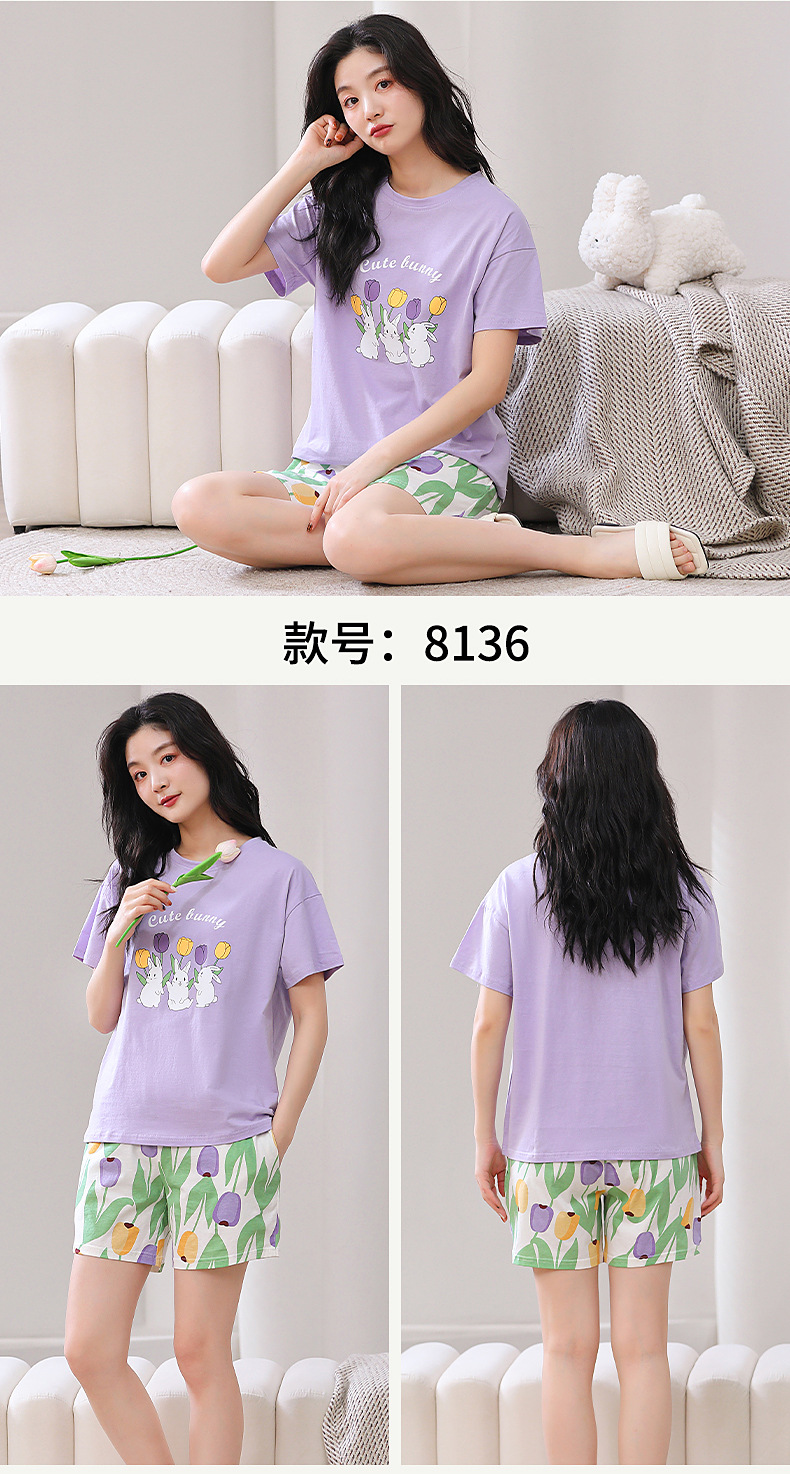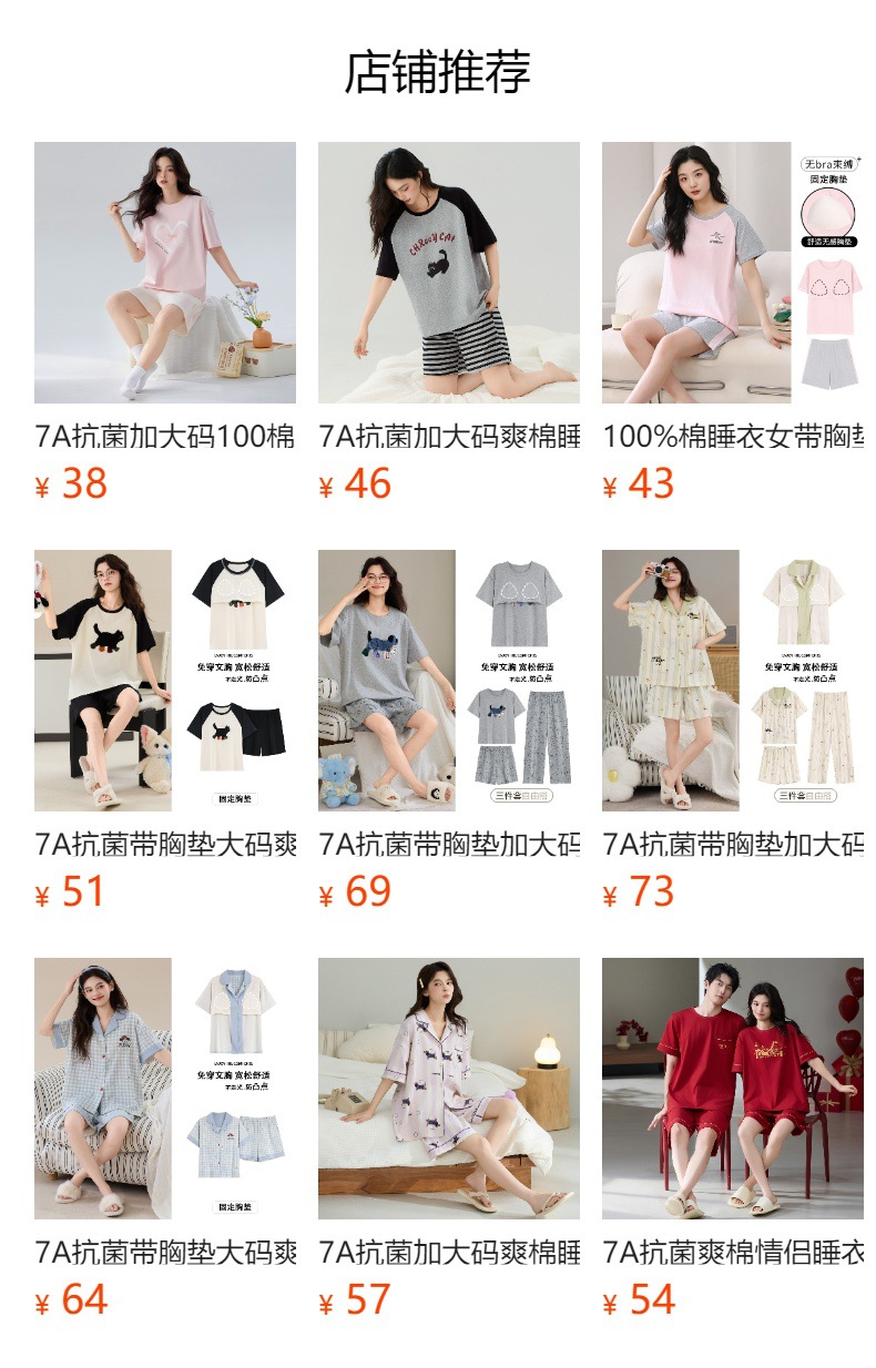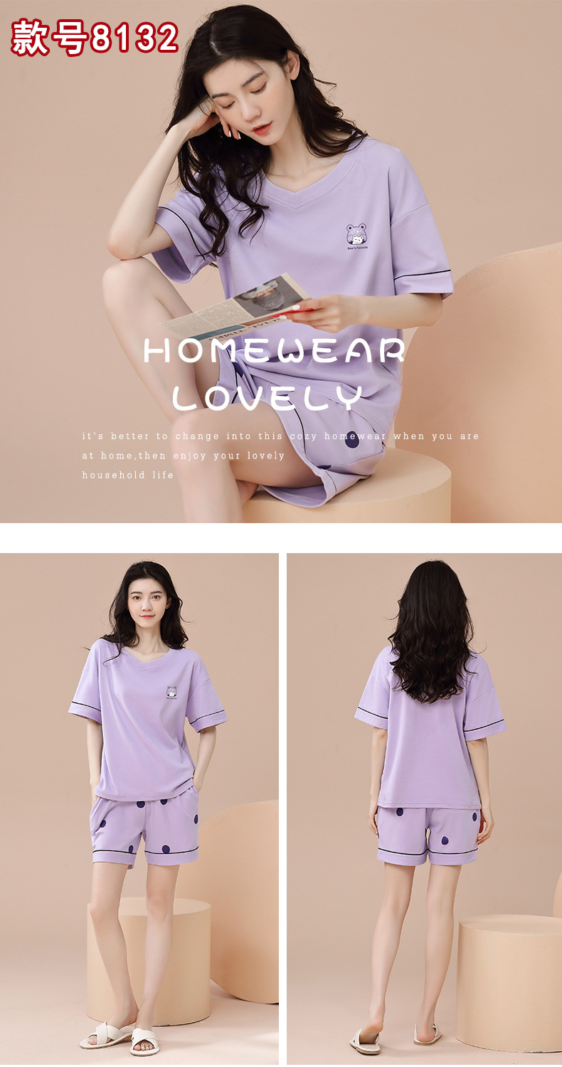 100% 면 잠옷 여성 여름 순면 얇은 라운드 넥 반팔 반바지 귀여운 여름 면 홈웨어 세트스토어 가기