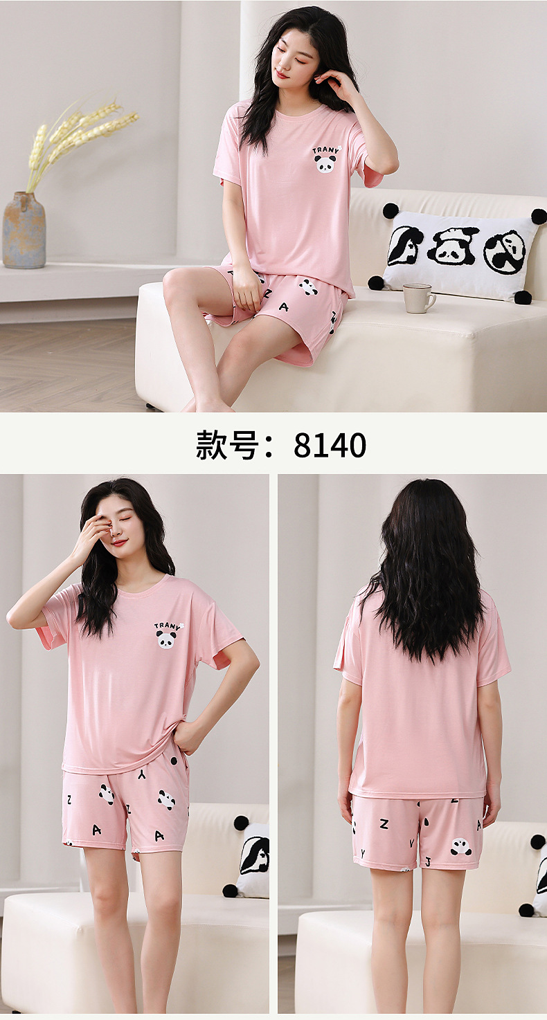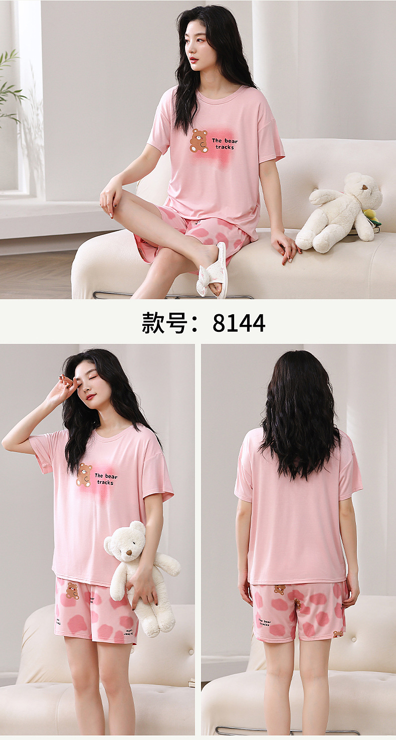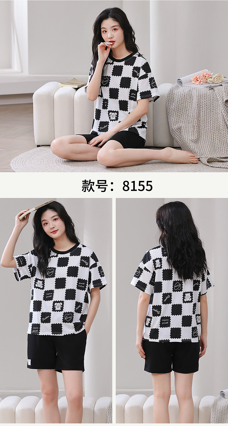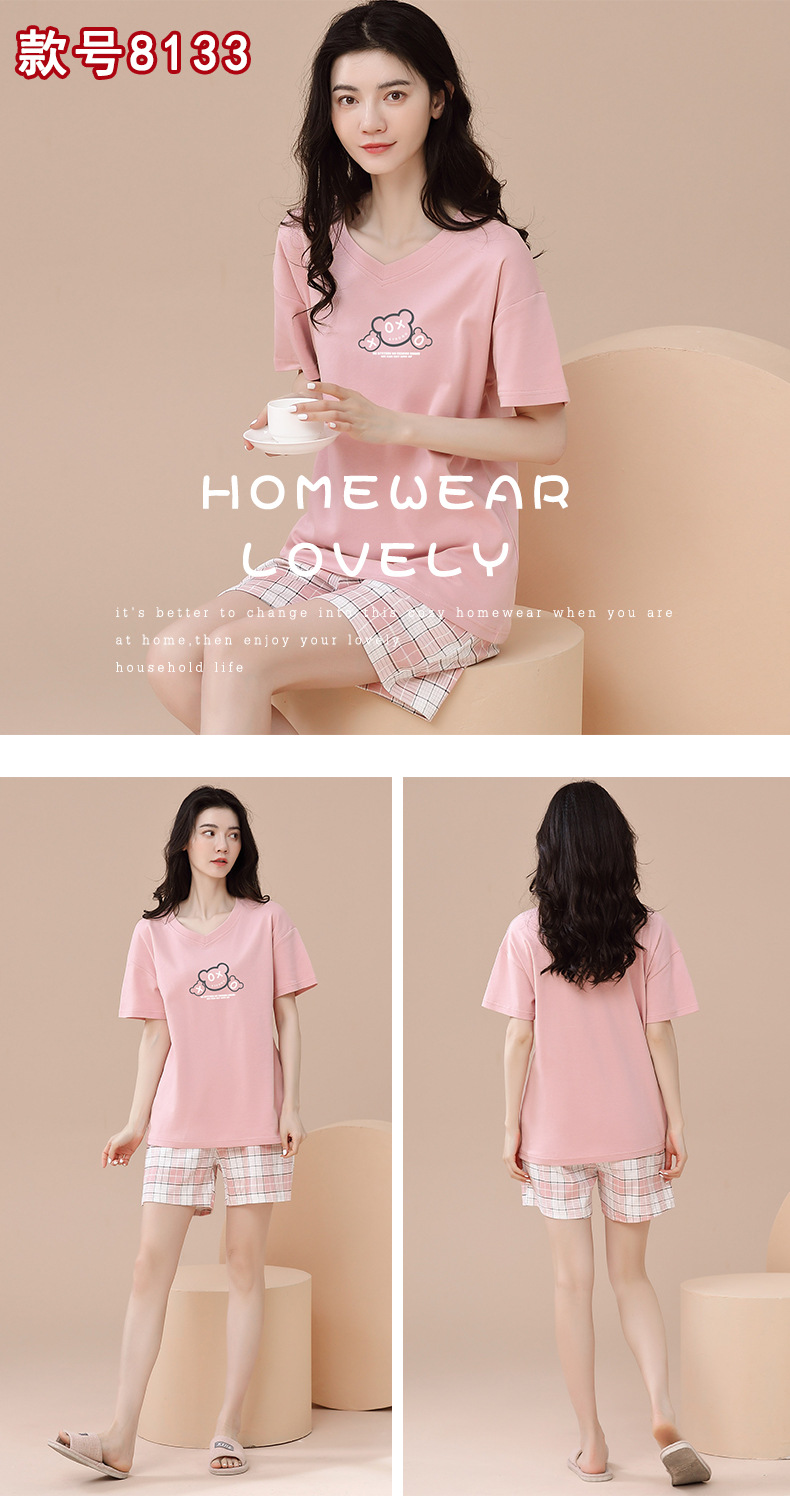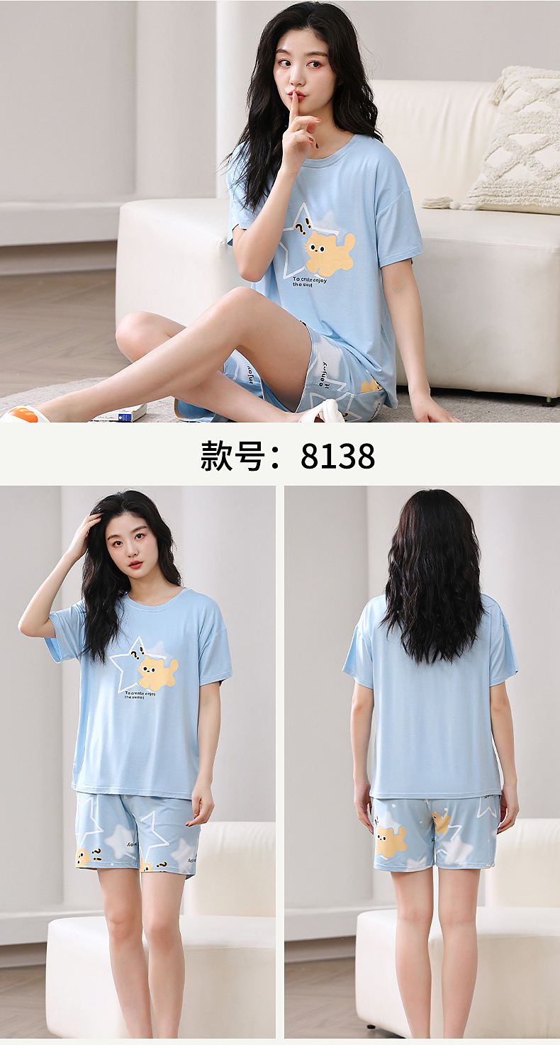 100% 면 잠옷 여성 여름 순면 얇은 라운드 넥 반팔 반바지 귀여운 여름 면 홈웨어 세트스토어 가기