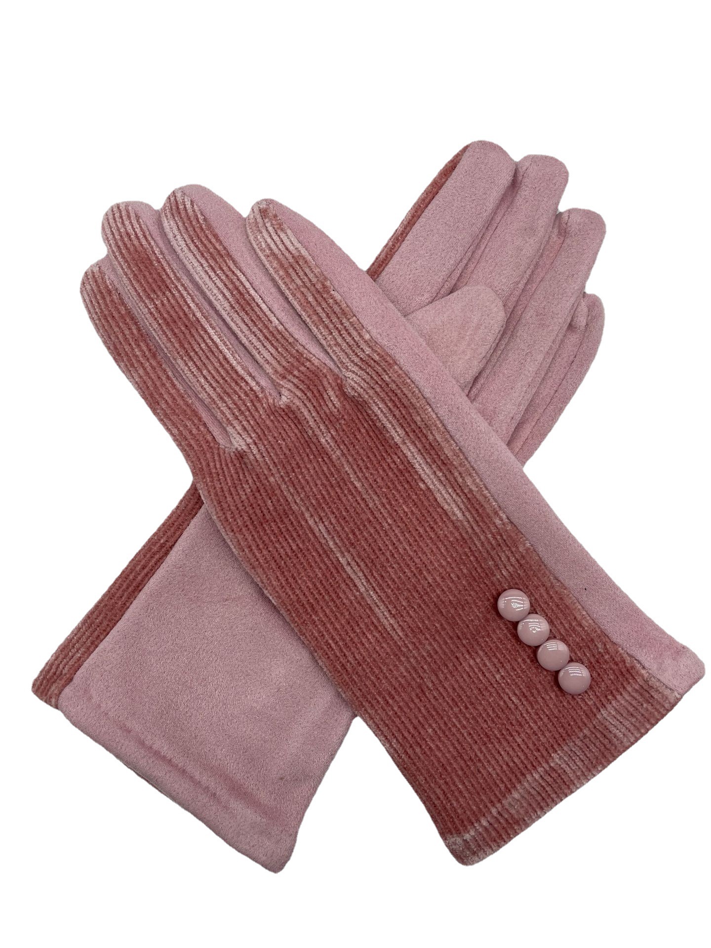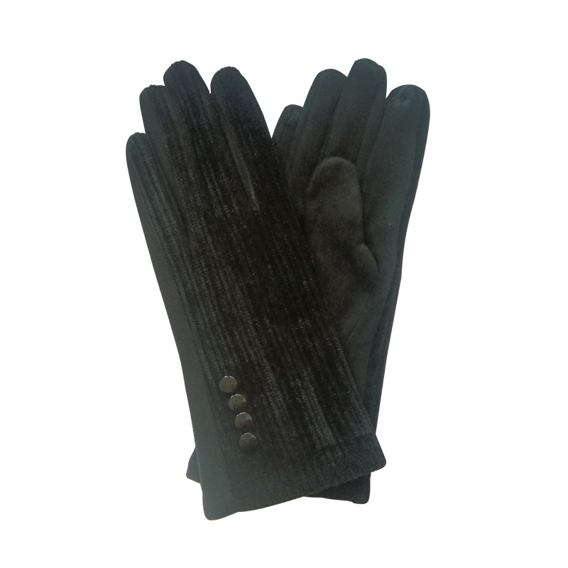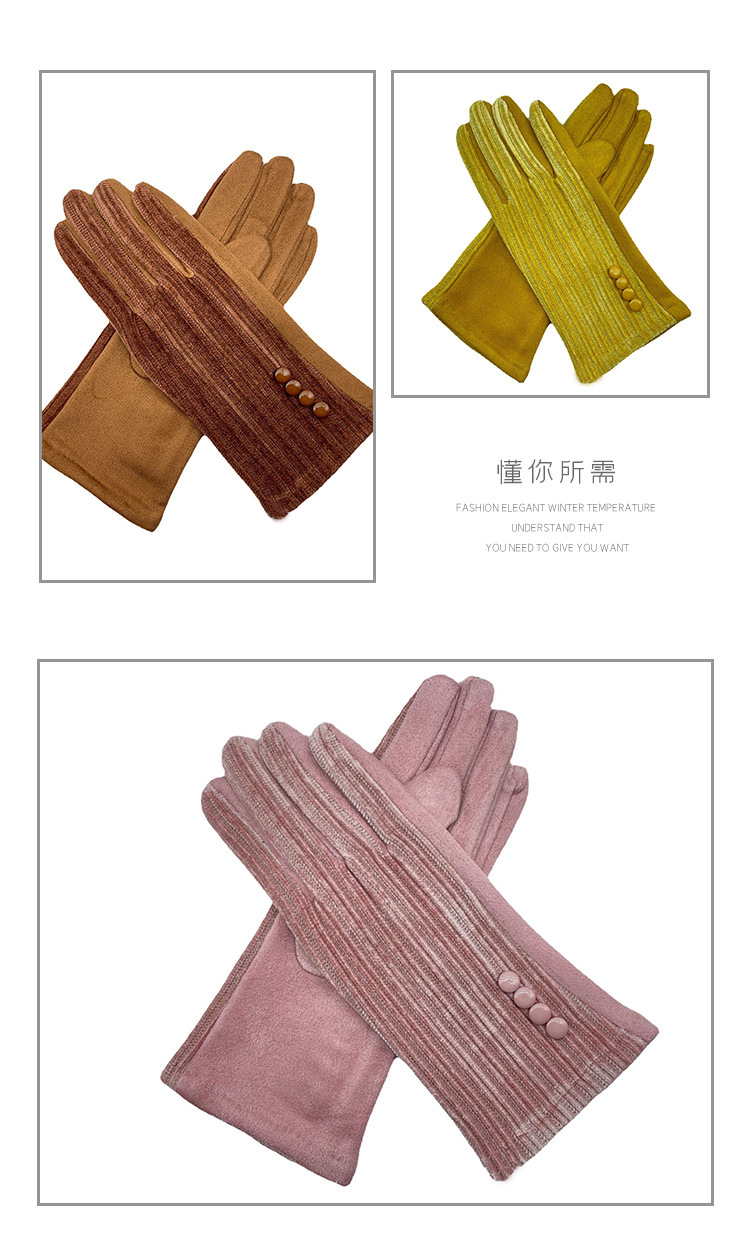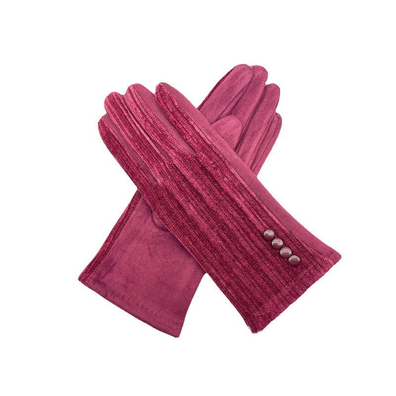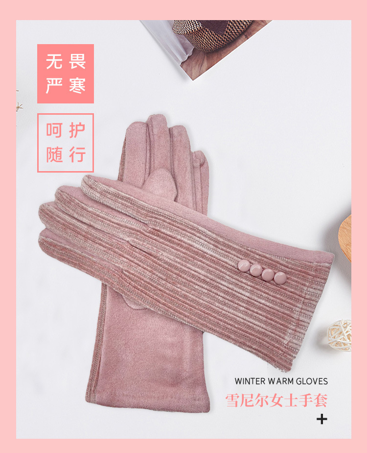 대외 무역 가을과 겨울 니트 셔닐 젓가락 스트라이프 버튼 따뜻한 터치 스크린 숙녀 장갑 제조 업체 도매