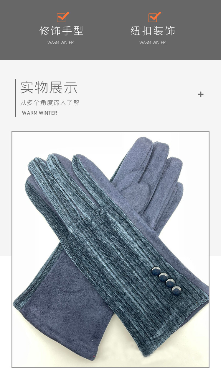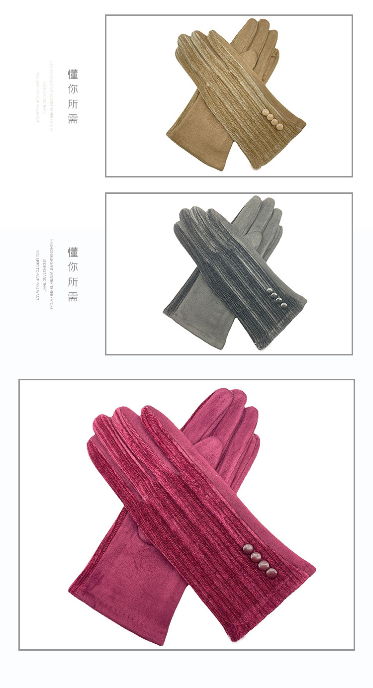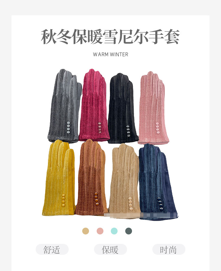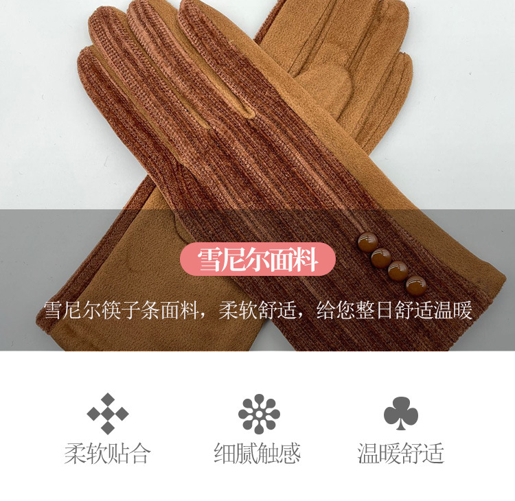 대외 무역 가을과 겨울 니트 셔닐 젓가락 스트라이프 버튼 따뜻한 터치 스크린 숙녀 장갑 제조 업체 도매스토어 가기