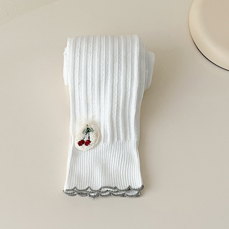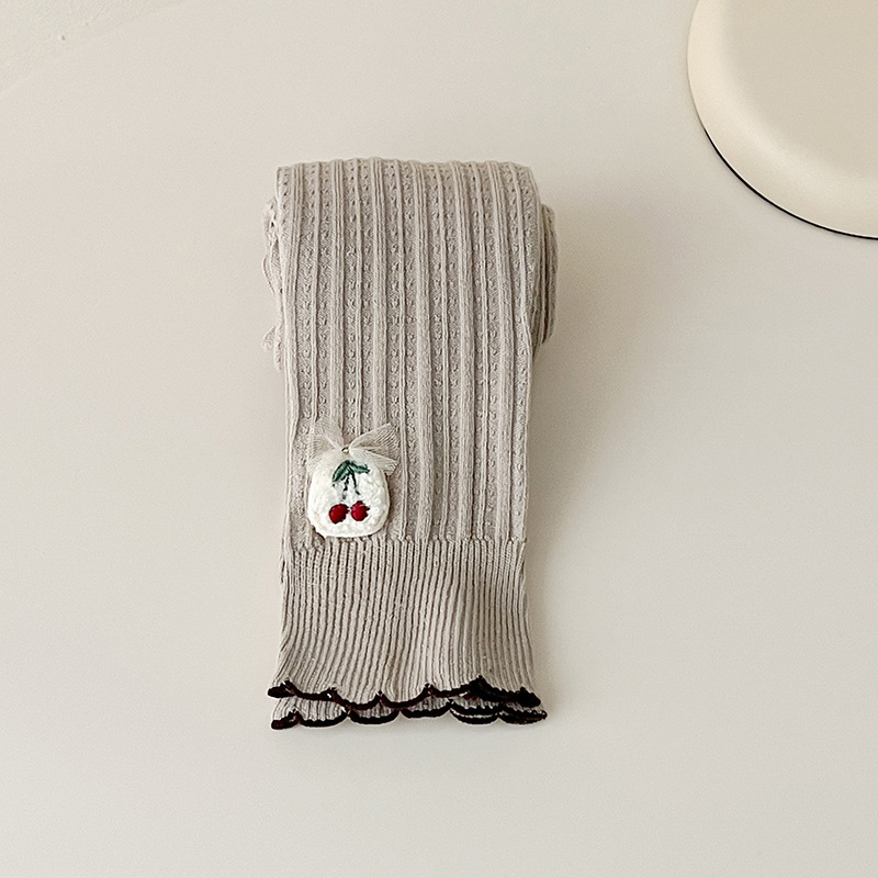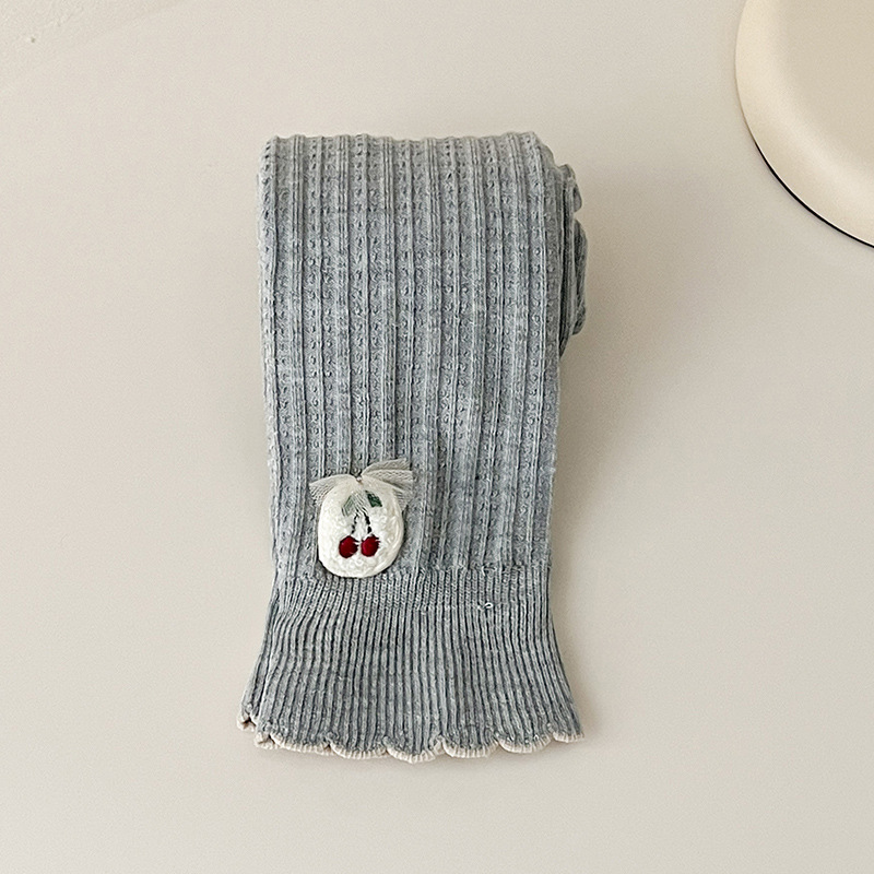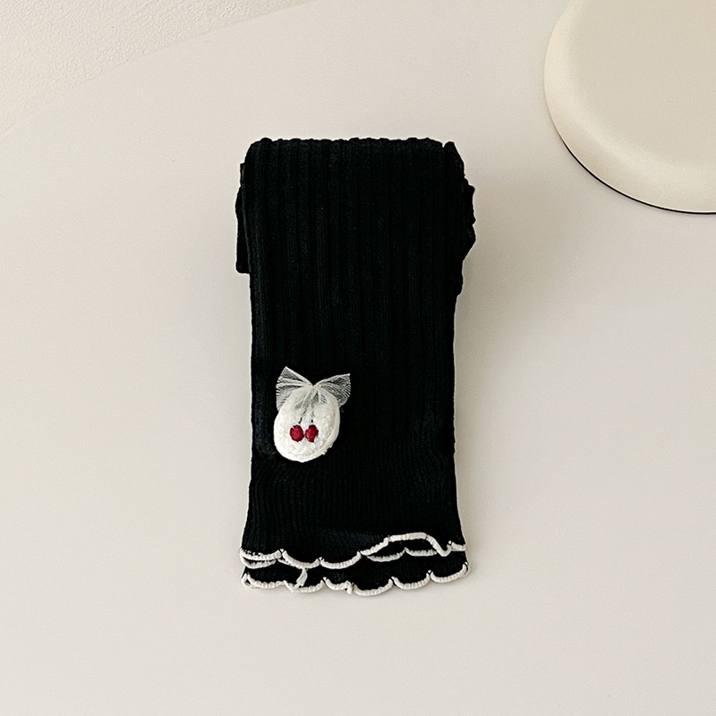 2023 봄 새 체리 보우 러플 어린이 발목 길이 바지 여아 빗질 면 겉옷 레깅스