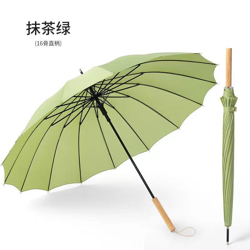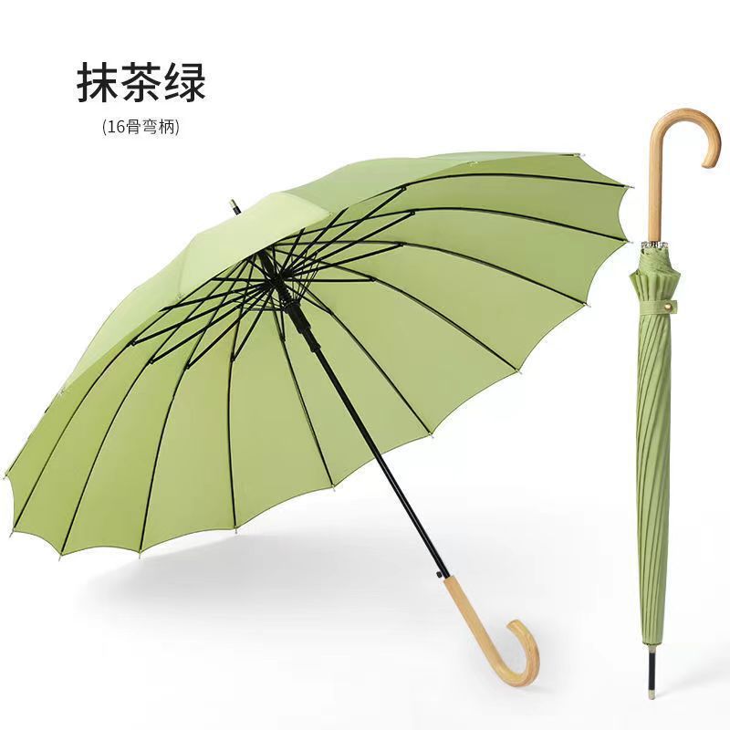 일본 예술 작은 신선한 마카롱 색상 복고풍 나무 손잡이 직선 우산 복고풍 간단한 단색스토어 가기