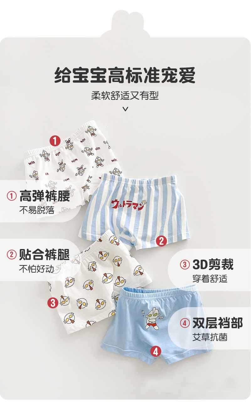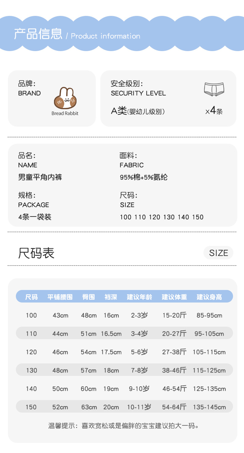 빵토끼 A급 순면 만화 캐릭터 아동용 사각팬티 남아 여아 항균 업그레이드