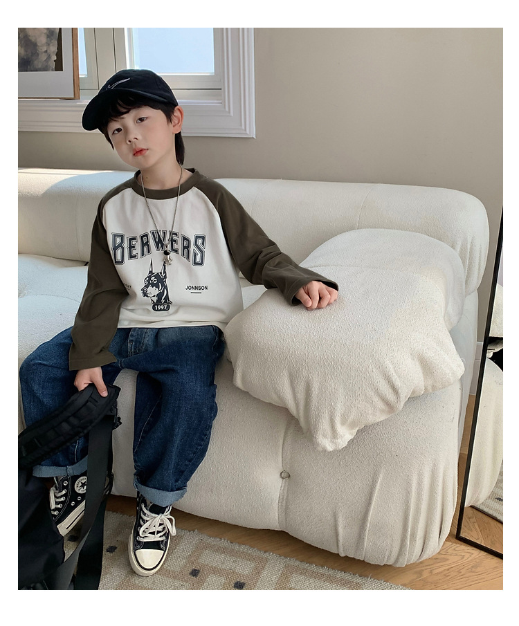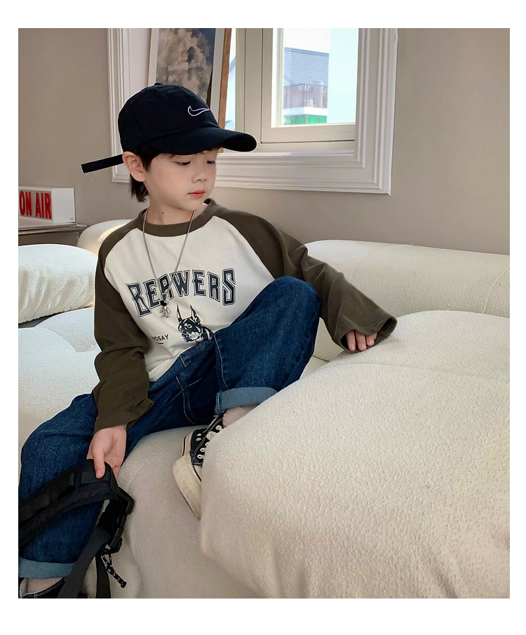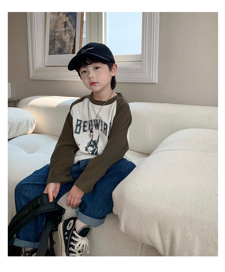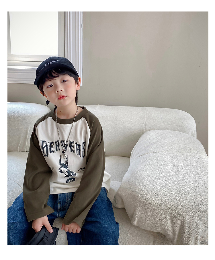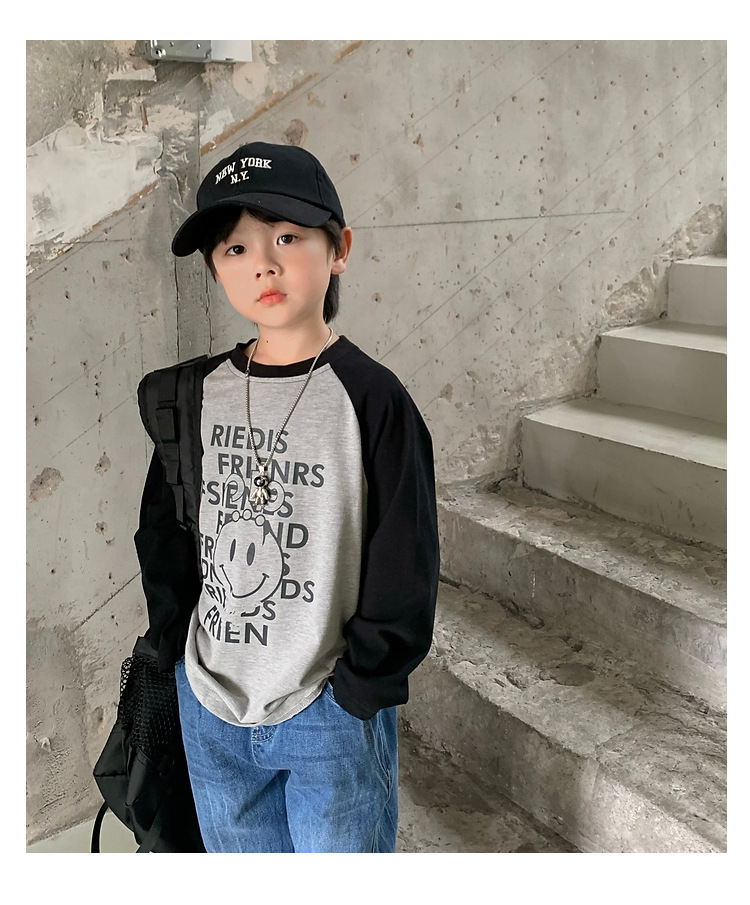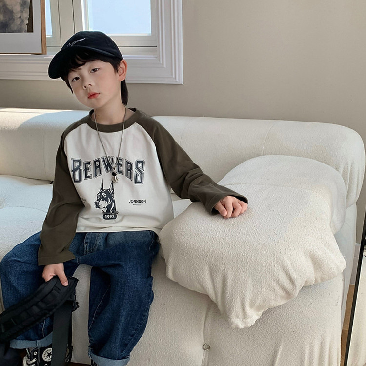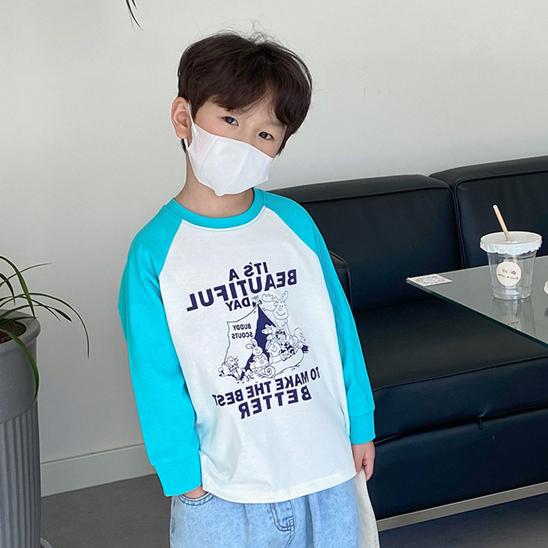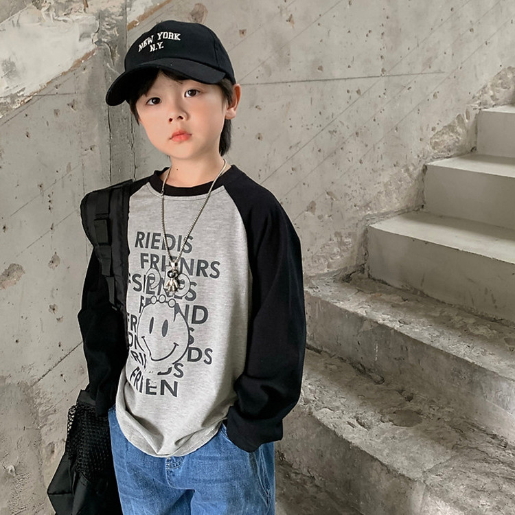 남아 한국 티셔츠 가을 새로운 어린이 루즈한 긴팔 베이스 셔츠 베이비의 편안한 라글란 올매치 탑 트렌디스토어 가기
