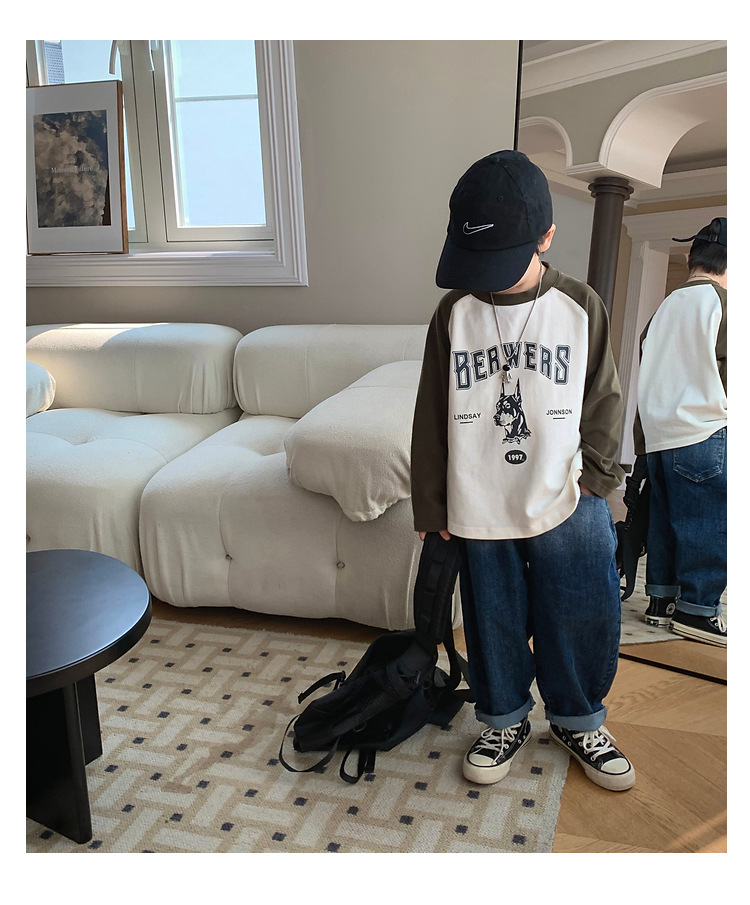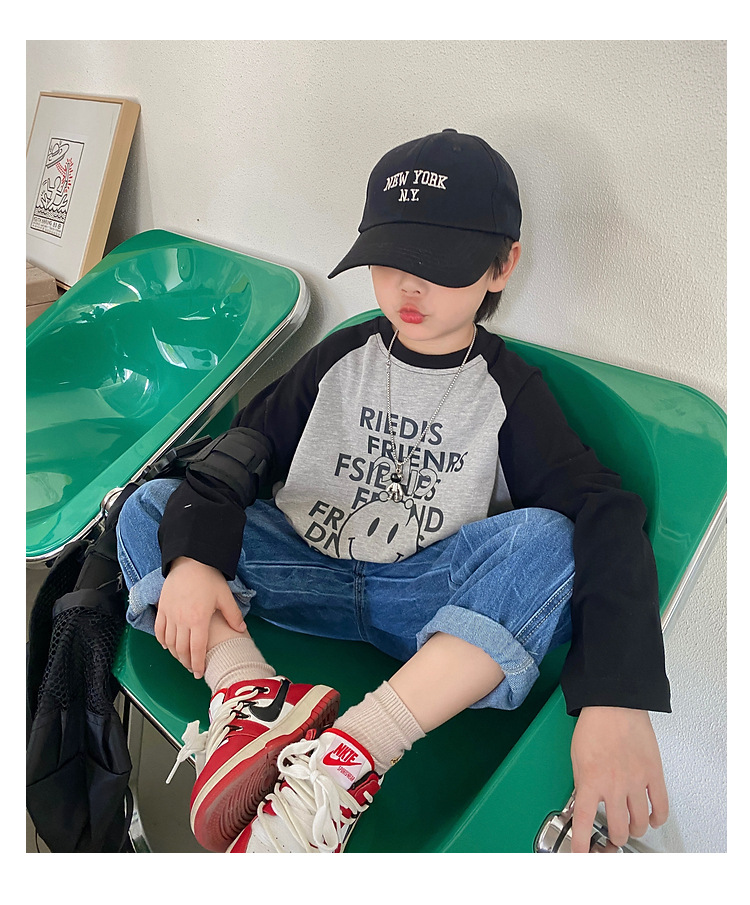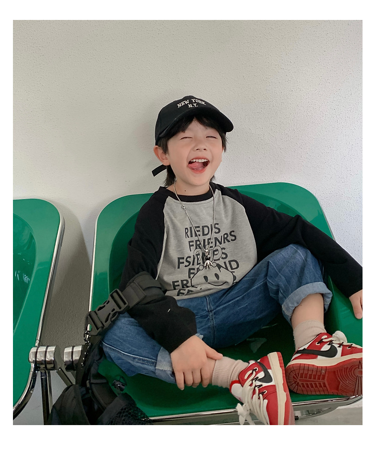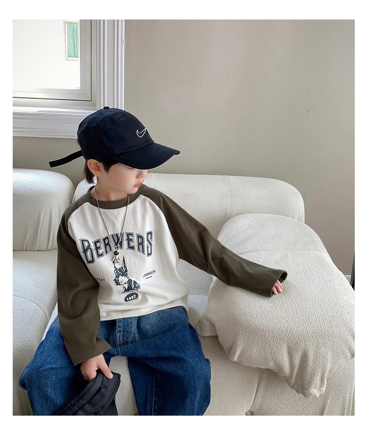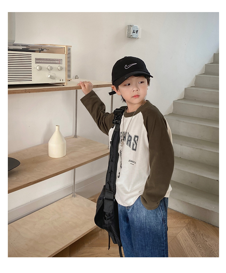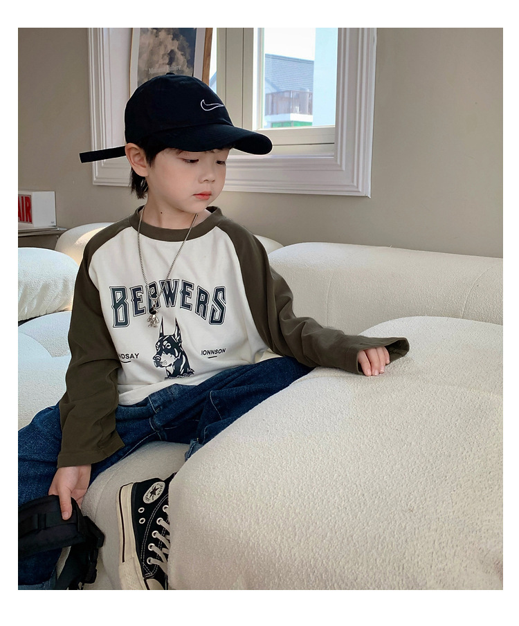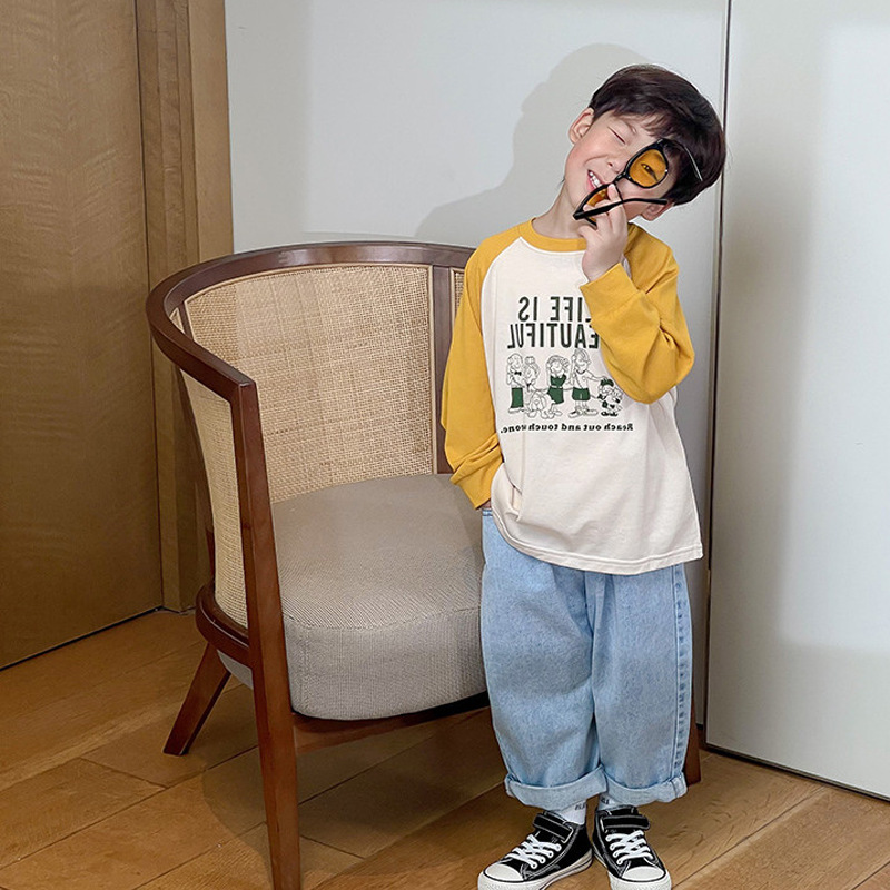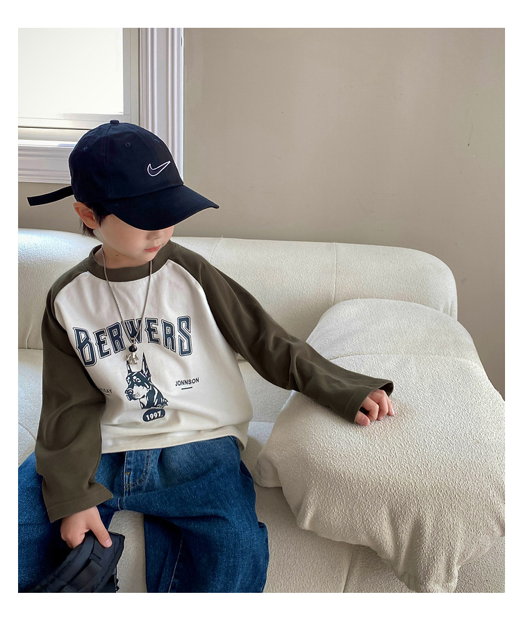 남아 한국 티셔츠 가을 새로운 어린이 루즈한 긴팔 베이스 셔츠 베이비의 편안한 라글란 올매치 탑 트렌디스토어 가기