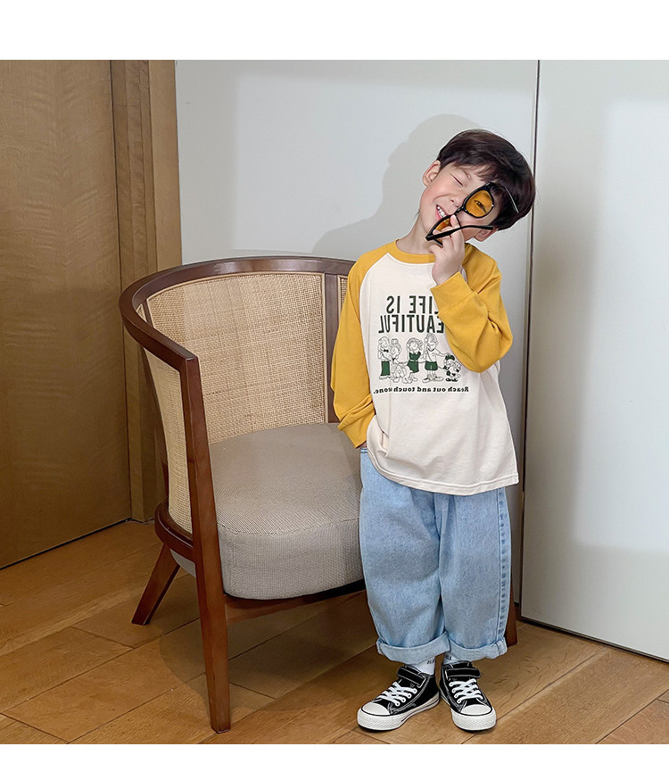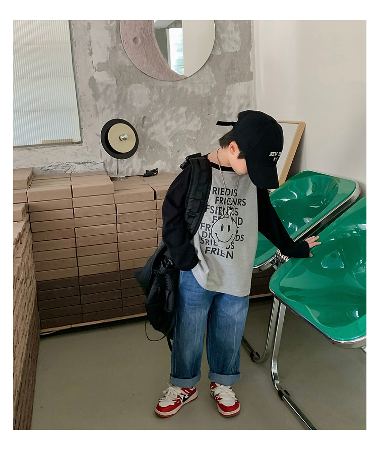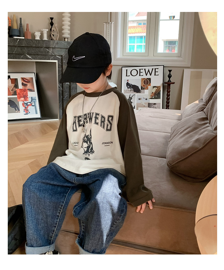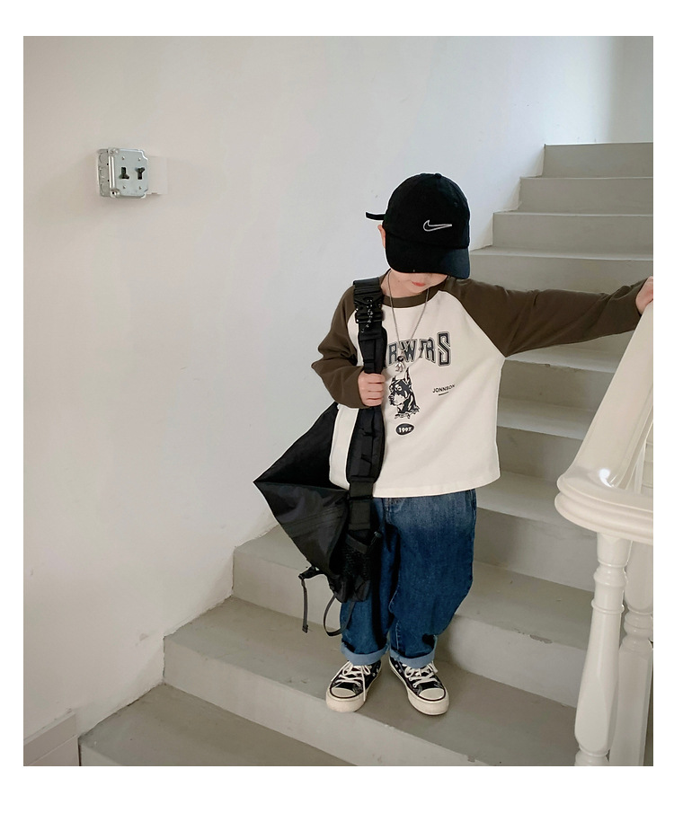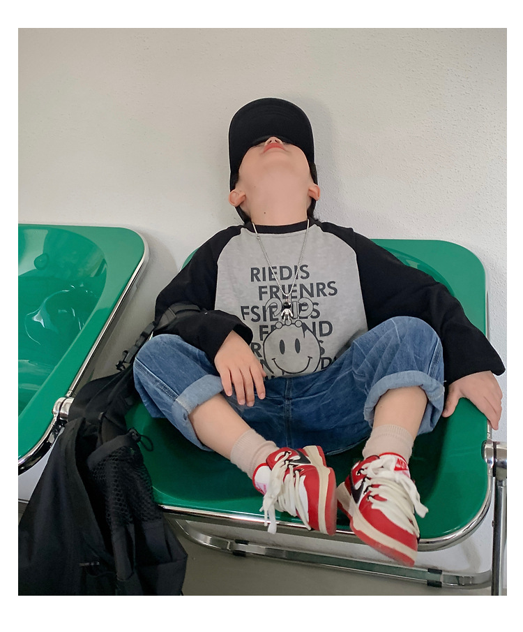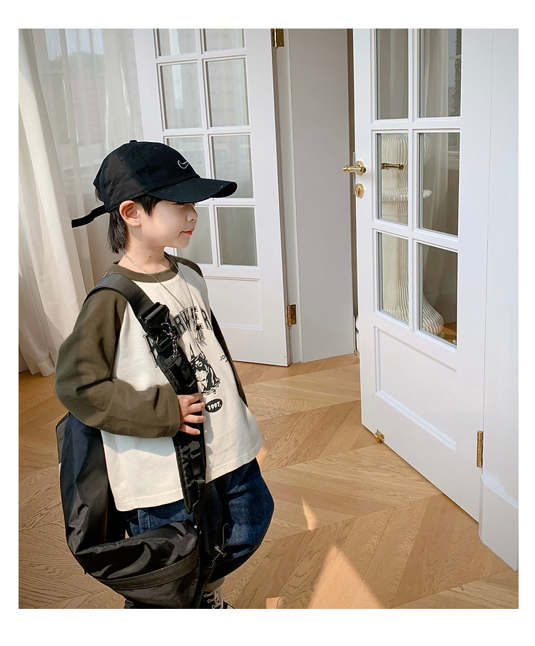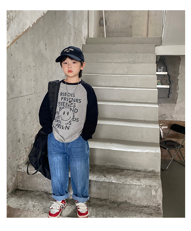 남아 한국 티셔츠 가을 새로운 어린이 루즈한 긴팔 베이스 셔츠 베이비의 편안한 라글란 올매치 탑 트렌디스토어 가기