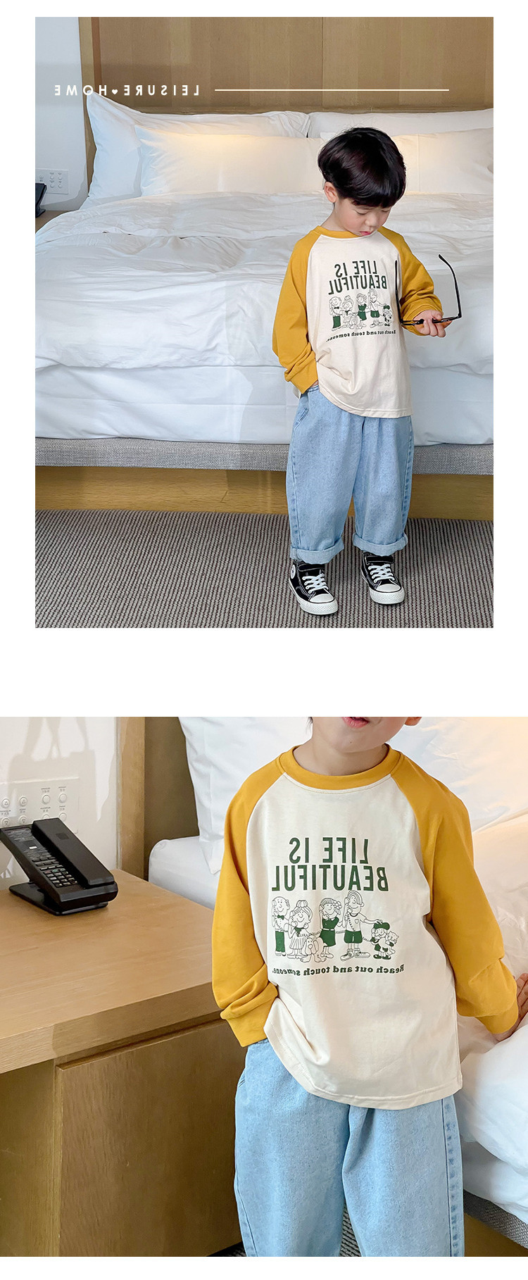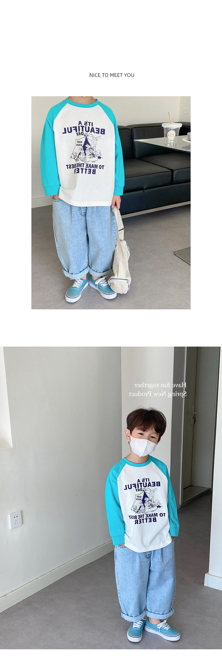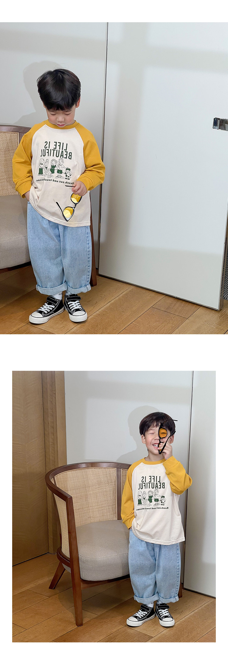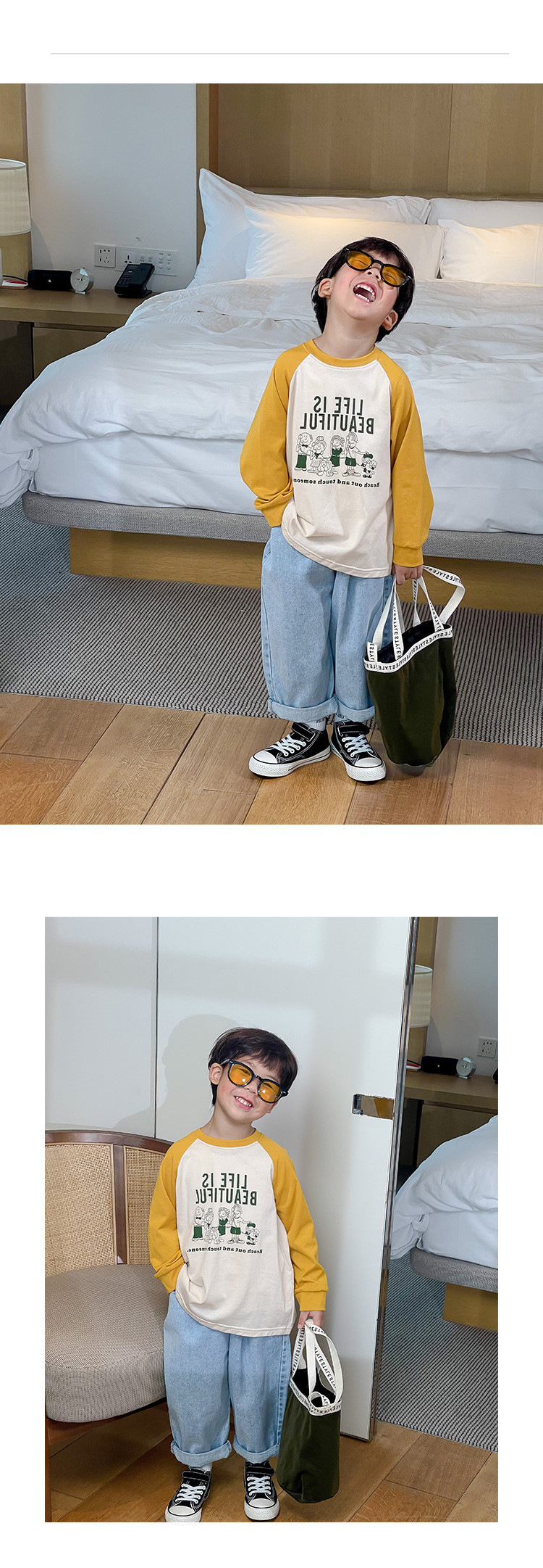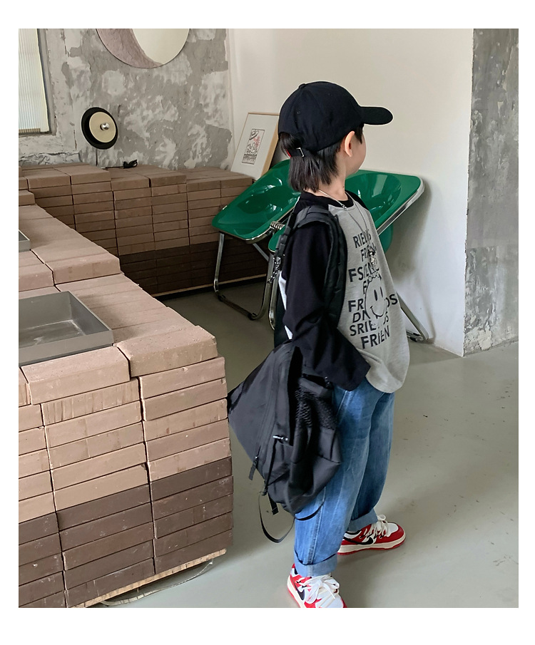 남아 한국 티셔츠 가을 새로운 어린이 루즈한 긴팔 베이스 셔츠 베이비의 편안한 라글란 올매치 탑 트렌디스토어 가기