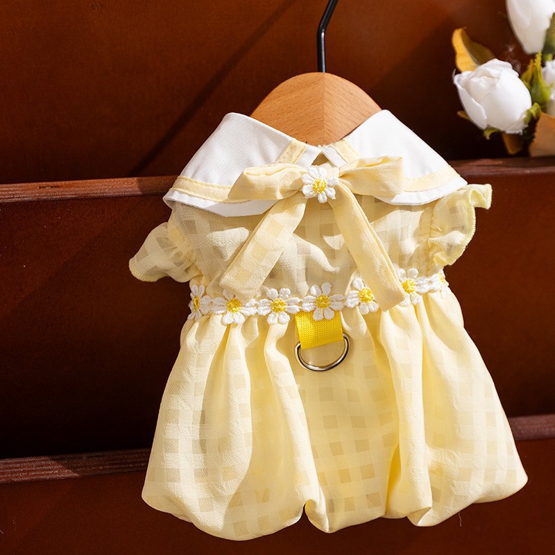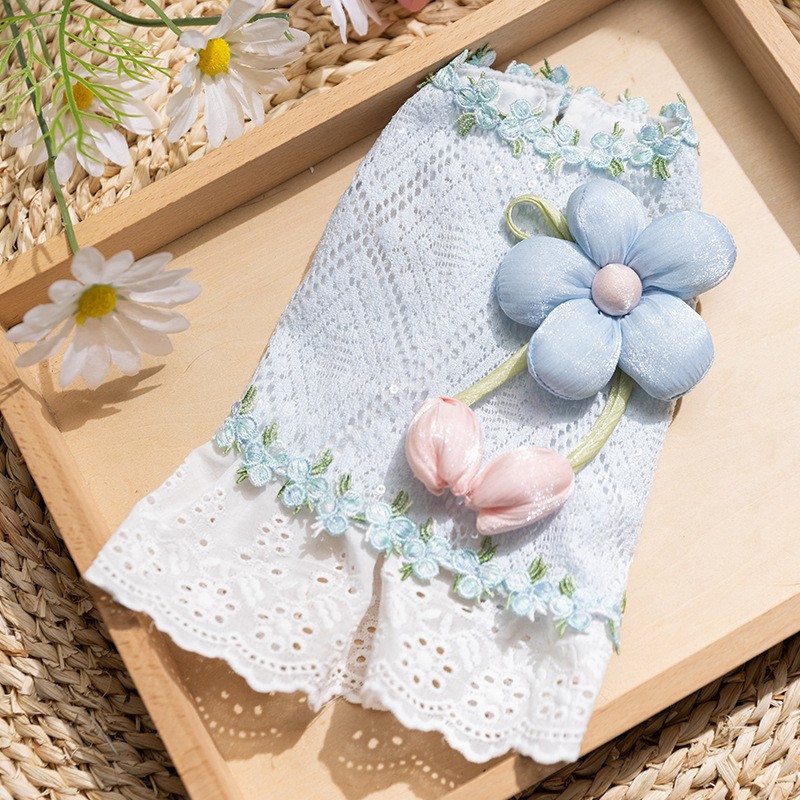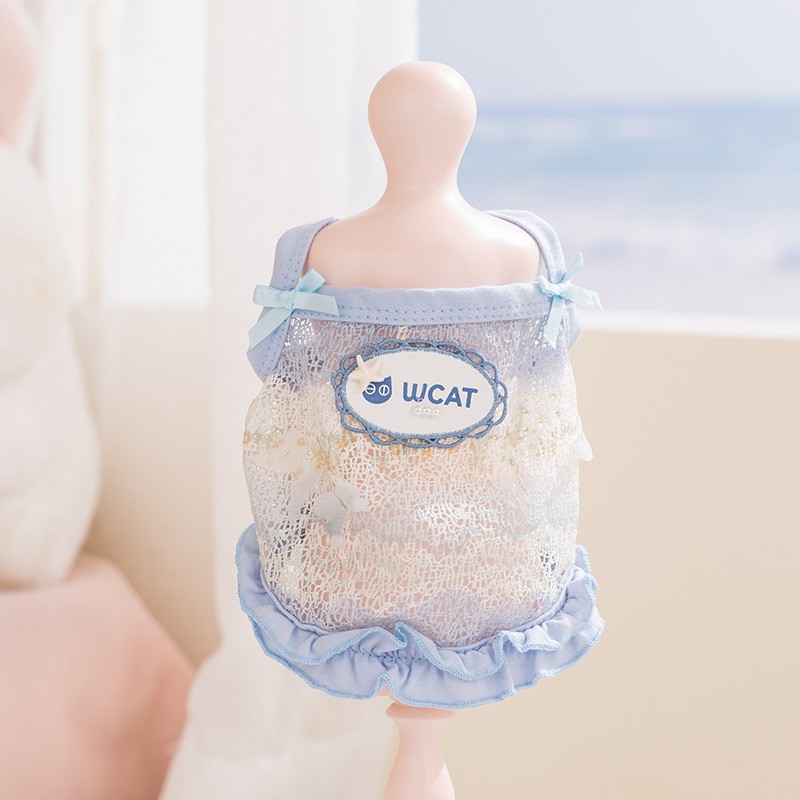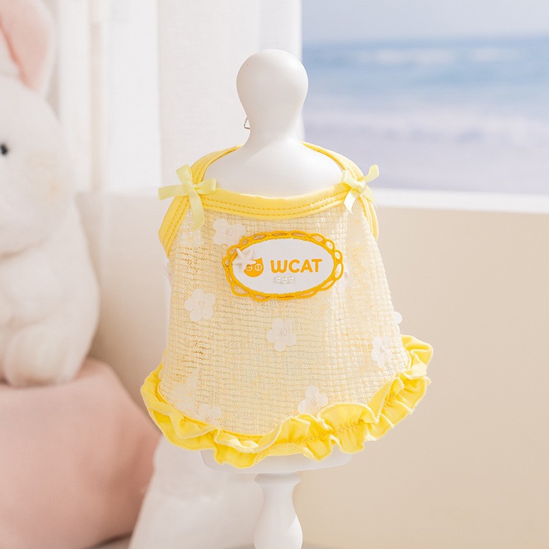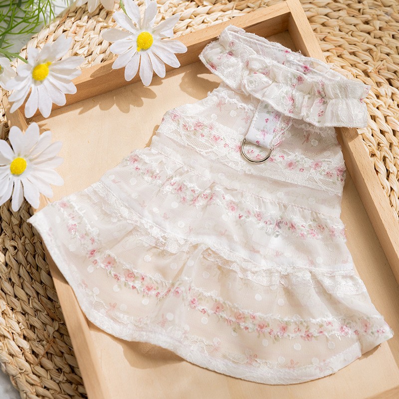 봄과 여름에 입기 좋은 통기성 좋은 레이스 꽃무늬 이중 레이어드 공주 드레스 고양이와 강아지 옷 중소형견 애완동물 옷