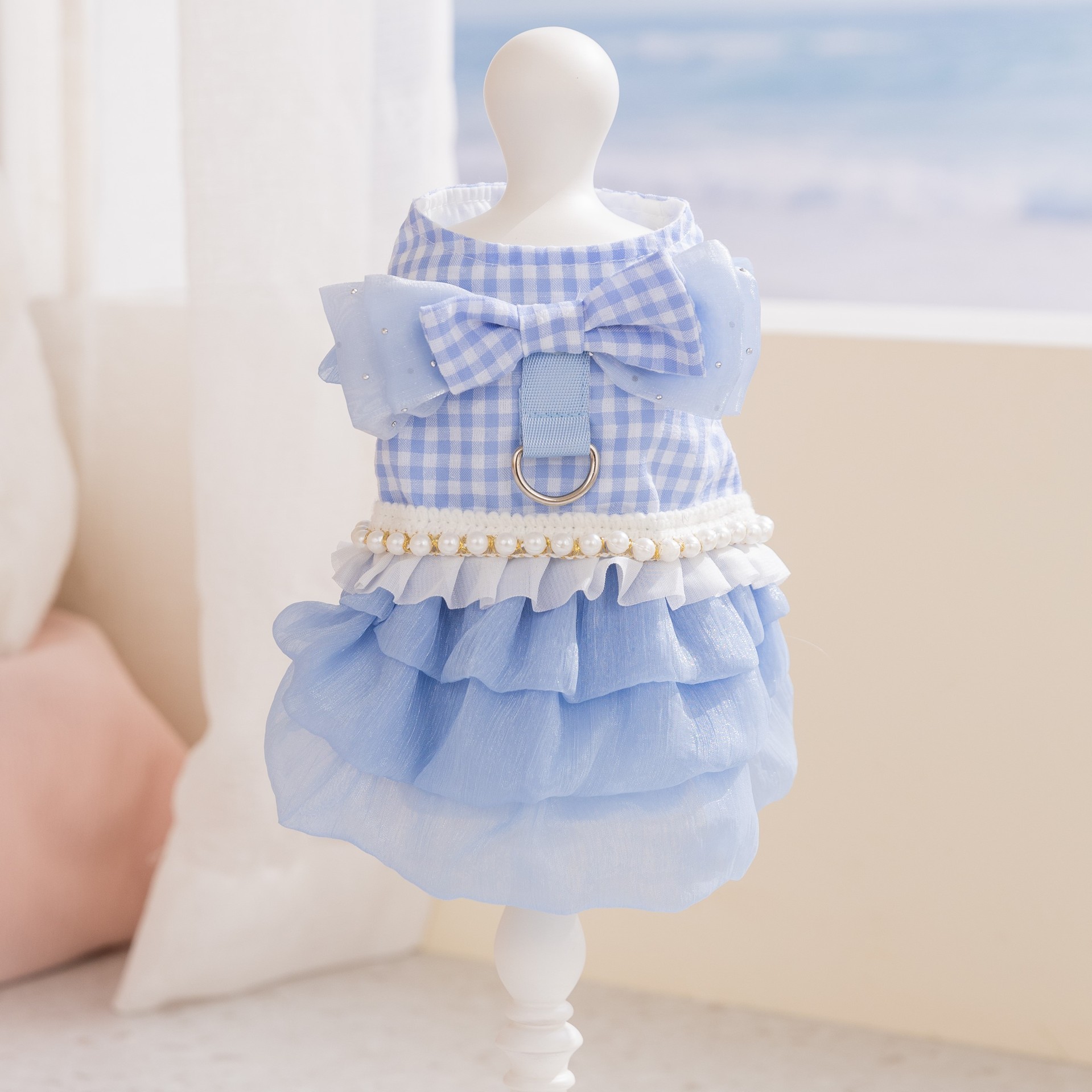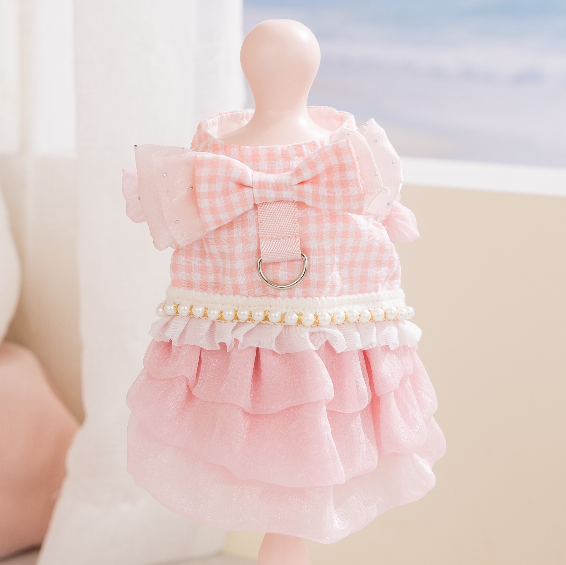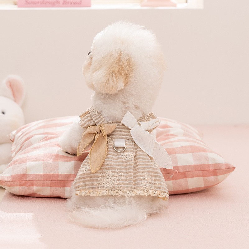 봄과 여름에 입기 좋은 통기성 좋은 레이스 꽃무늬 이중 레이어드 공주 드레스 고양이와 강아지 옷 중소형견 애완동물 옷