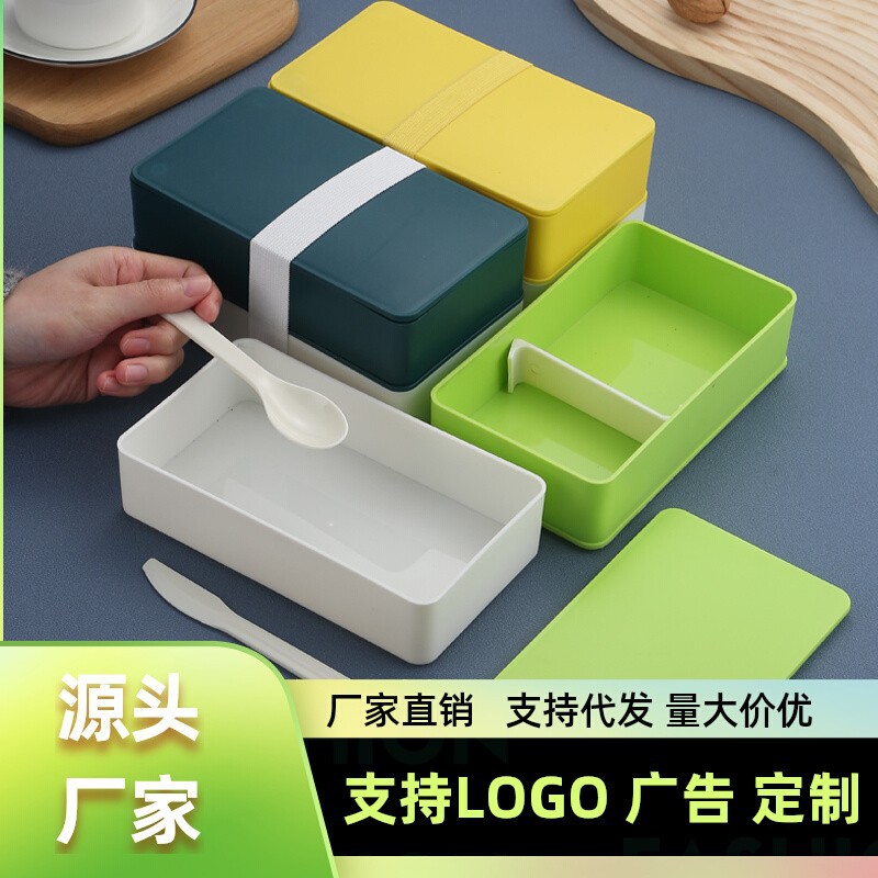 INS网红韩式双层饭盒塑料分格便当盒跨境成人学生可微波炉午餐盒