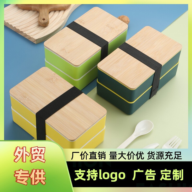 跨境外贸日式塑料便当盒上班族学生学生午餐盒木盖饭盒食品级保温