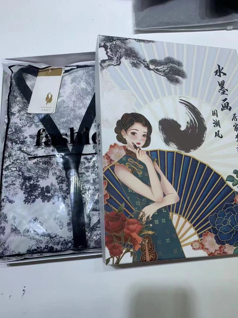 국가 유행 스타일 잉크 페인팅 얼음 실크 가정 옷 4 종 세트 여자의 여름 새로운 패션 인쇄 느슨한 플러스 사이즈 잠옷 세트스토어 가기