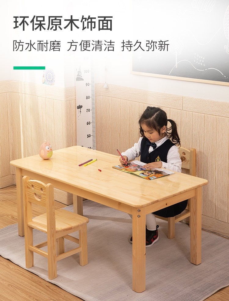 유치원 단단한 나무 테이블과 의자 어린이 소나무 테이블 세트 아기 그림 세트 장난감 게임 학습 책상과 의자스토어 가기