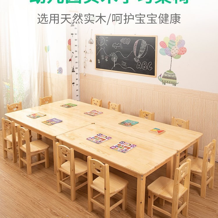 유치원 단단한 나무 테이블과 의자 어린이 소나무 테이블 세트 아기 그림 세트 장난감 게임 학습 책상과 의자