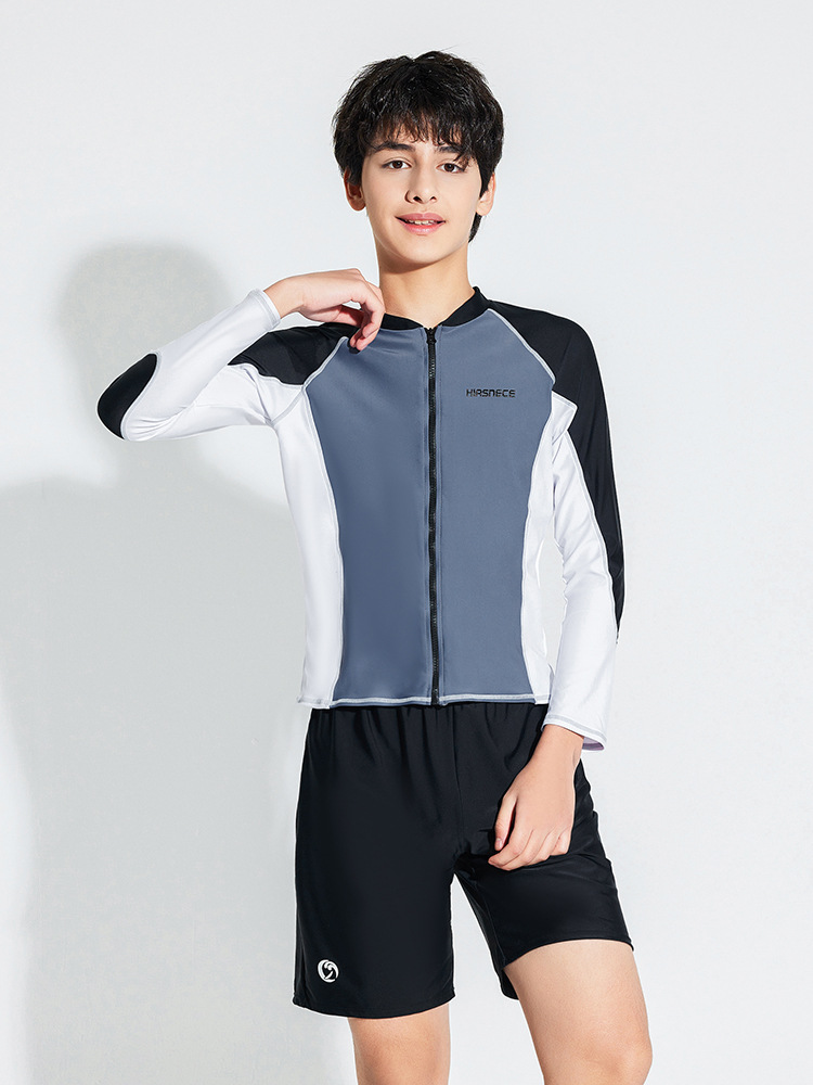 Haixi Lanjing 2023 새로운 어린이 수영복 남아 수영복 큰 어린이 스플릿 쓰리피스 세트 긴 소매 바지 태양 보호