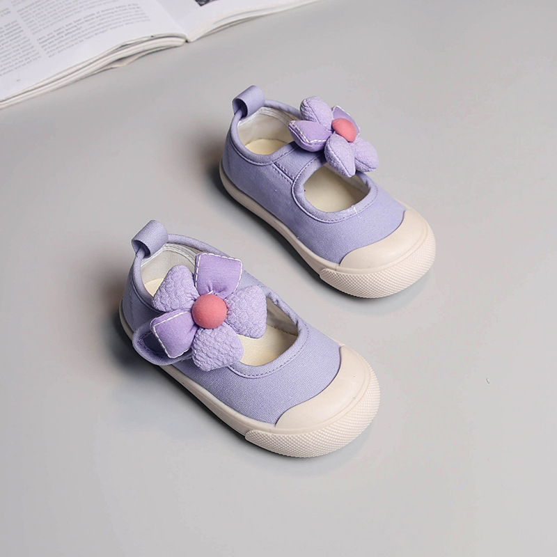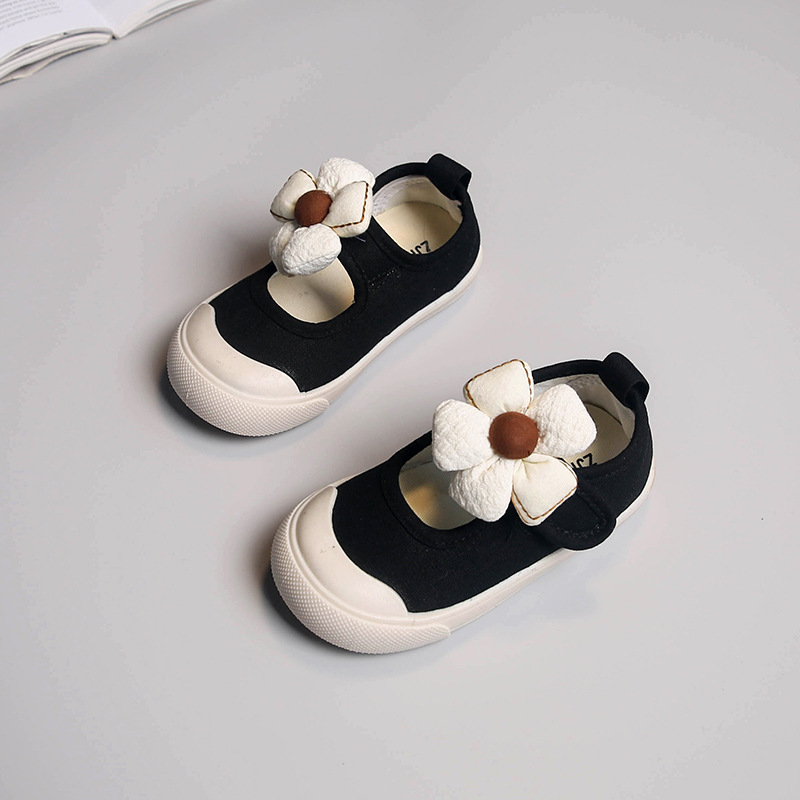 여아 천 신발 한국식 꽃 미끄럼 방지 부드러운 밑창 유치원 실내 단층 신발 어린이 아기 공주 통기성 캔버스 신발스토어 가기