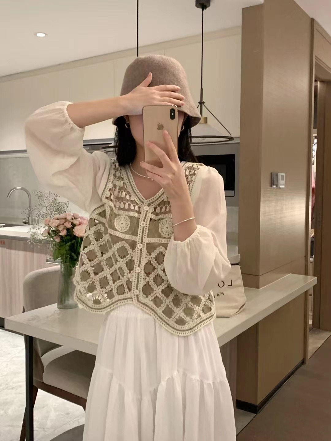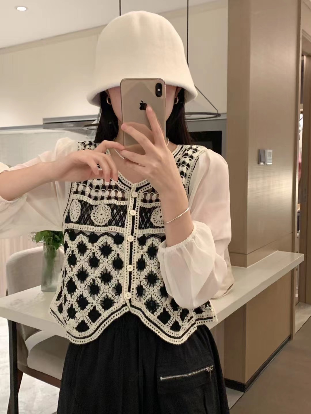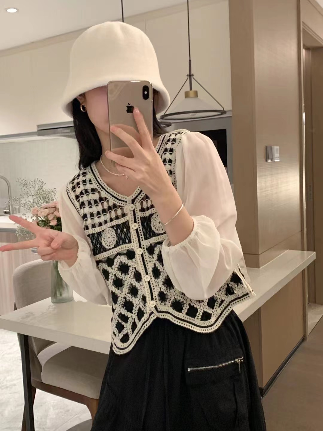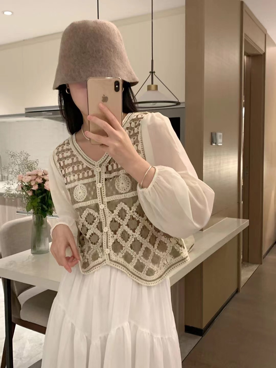 니트웨어 여성 이른 봄 작은 2023 봄 새로운 한국 달콤한 스티칭 쉬폰 짧은 카디건 탑스토어 가기