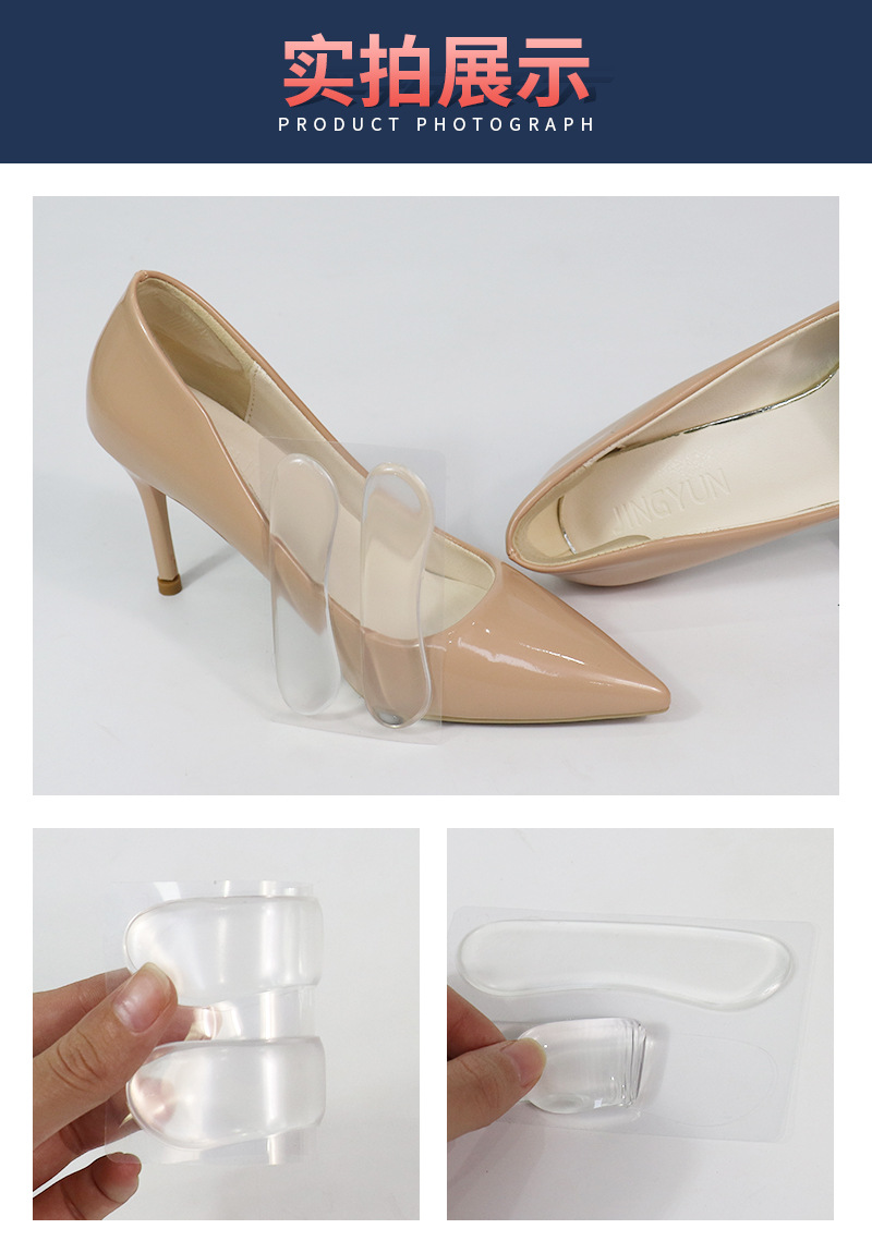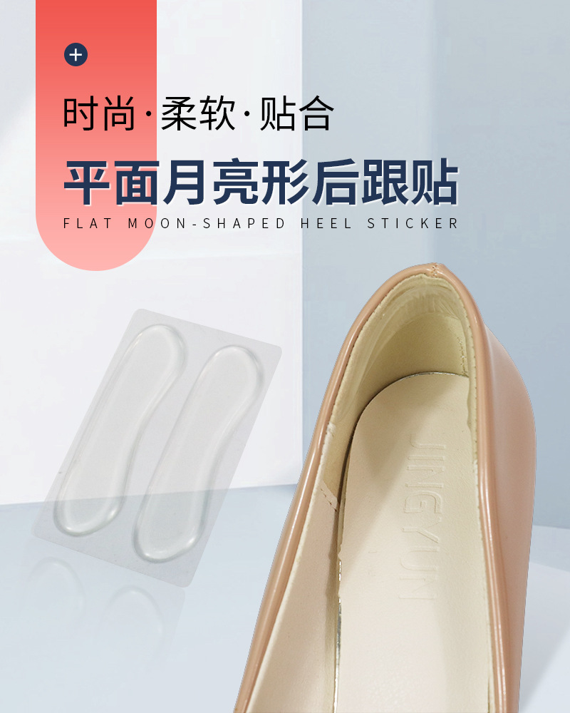 편평한 달 모양의 뒤꿈치 스티커 젤 투명한 발 뒤꿈치 스티커 유니섹스 안창