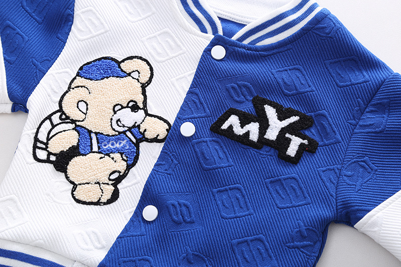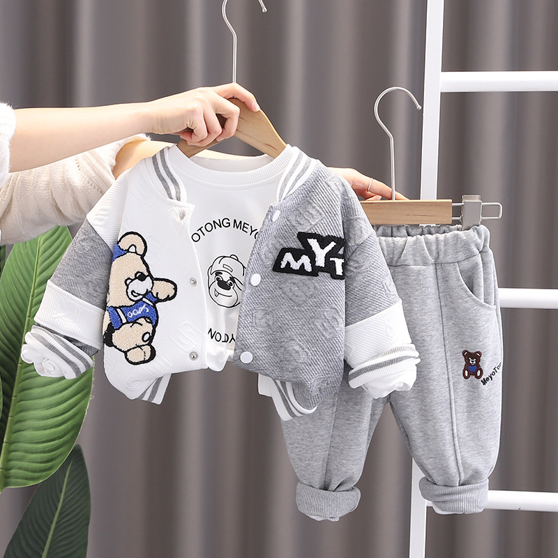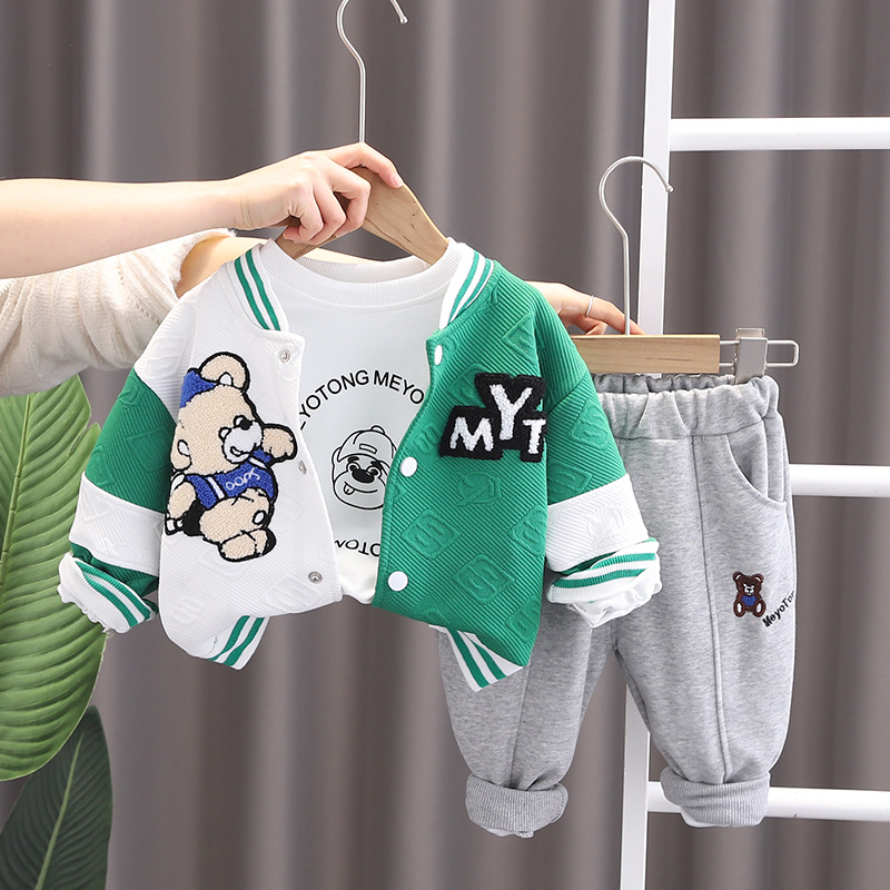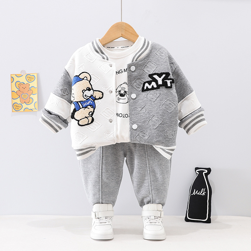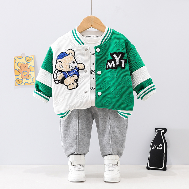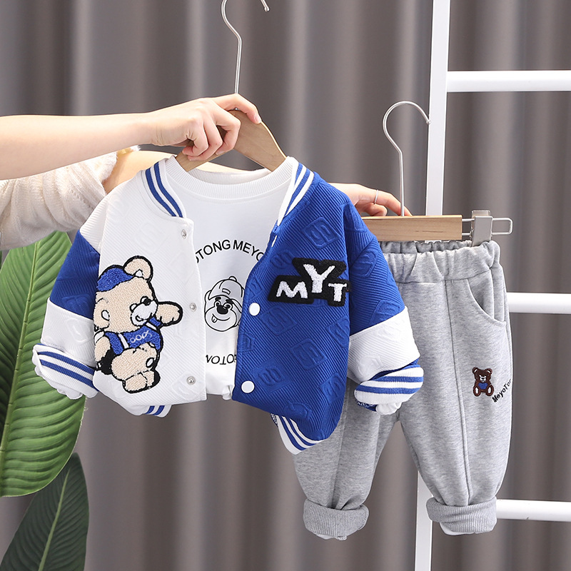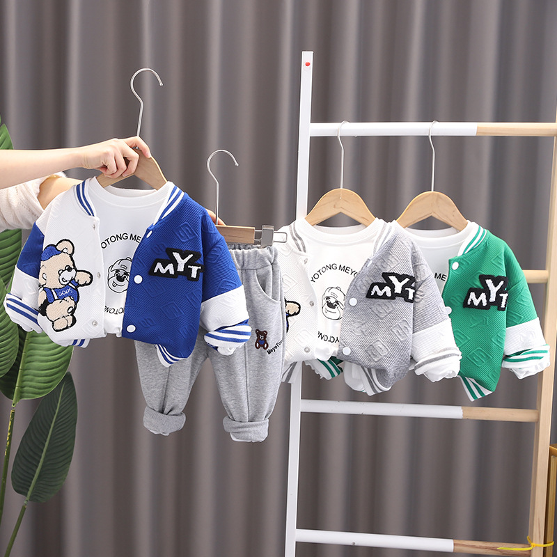 4131 어린이 소년의 봄 긴 소매 재킷 쓰리 피스 아기의 봄 옷 서양 스타일 야구 옷 세트 어린이 옷스토어 가기