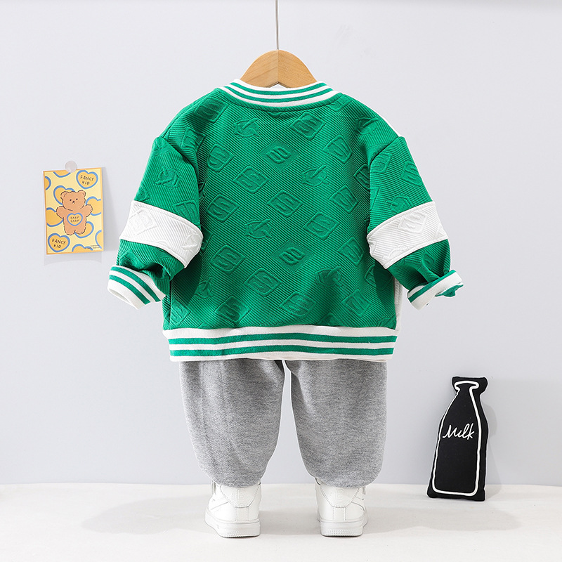 4131 어린이 소년의 봄 긴 소매 재킷 쓰리 피스 아기의 봄 옷 서양 스타일 야구 옷 세트 어린이 옷