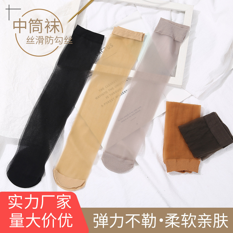 여성용 중간 길이 스타킹, 흘러내림 방지, 여름용 얇은 살색 일본 스타일 종아리 반양말, 롱삭스, 무릎 위 양말스토어 가기