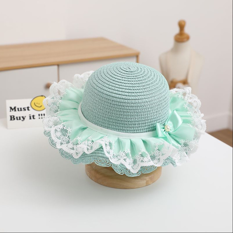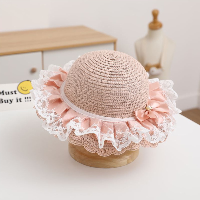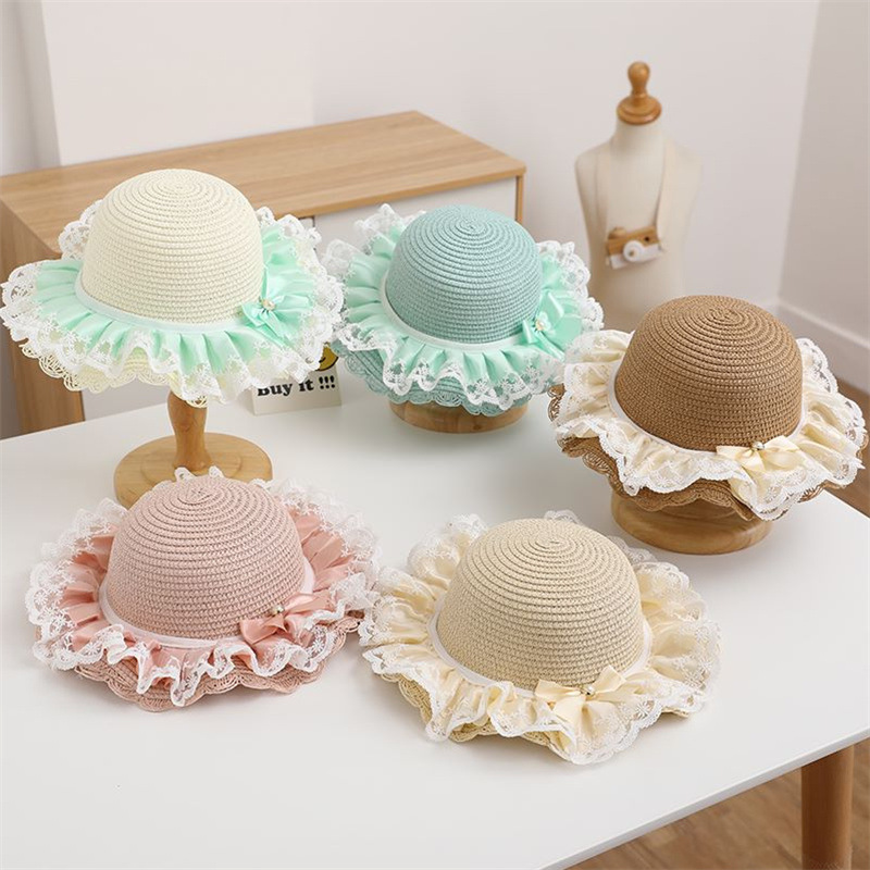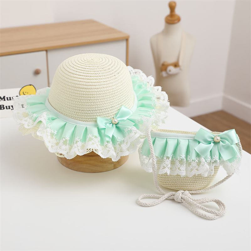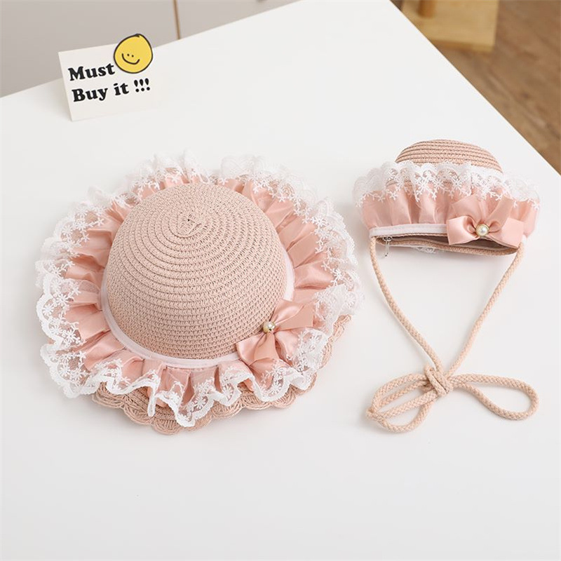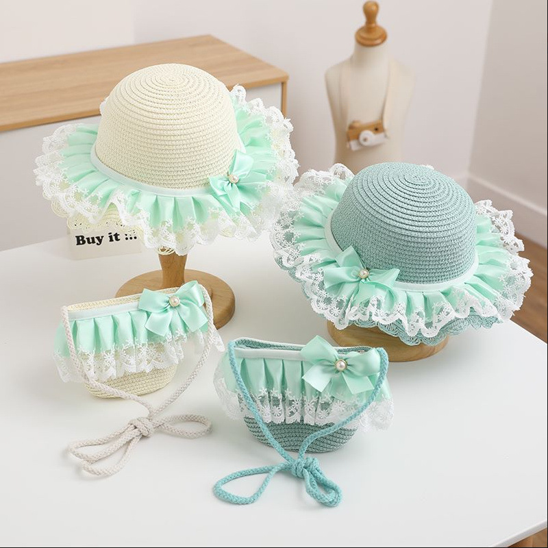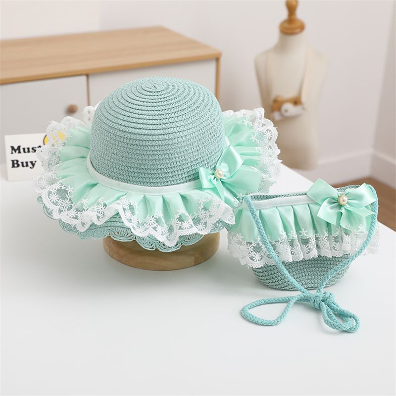 어린이 여자의 여름 자외선 차단제 모자 공주 모자 해변 접는 태양 모자 어부 모자 밀짚 모자 가방 세트
