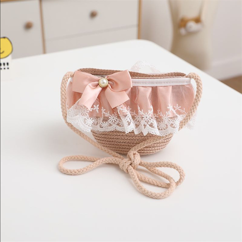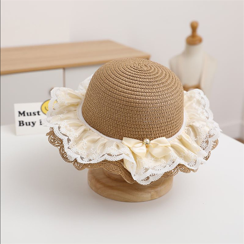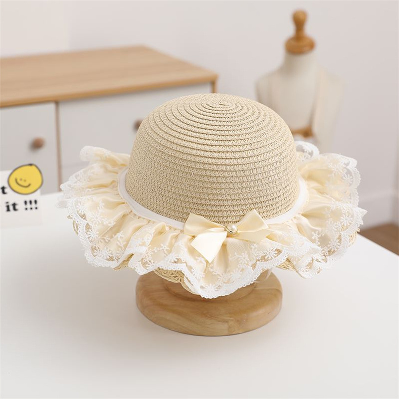 어린이 여자의 여름 자외선 차단제 모자 공주 모자 해변 접는 태양 모자 어부 모자 밀짚 모자 가방 세트스토어 가기