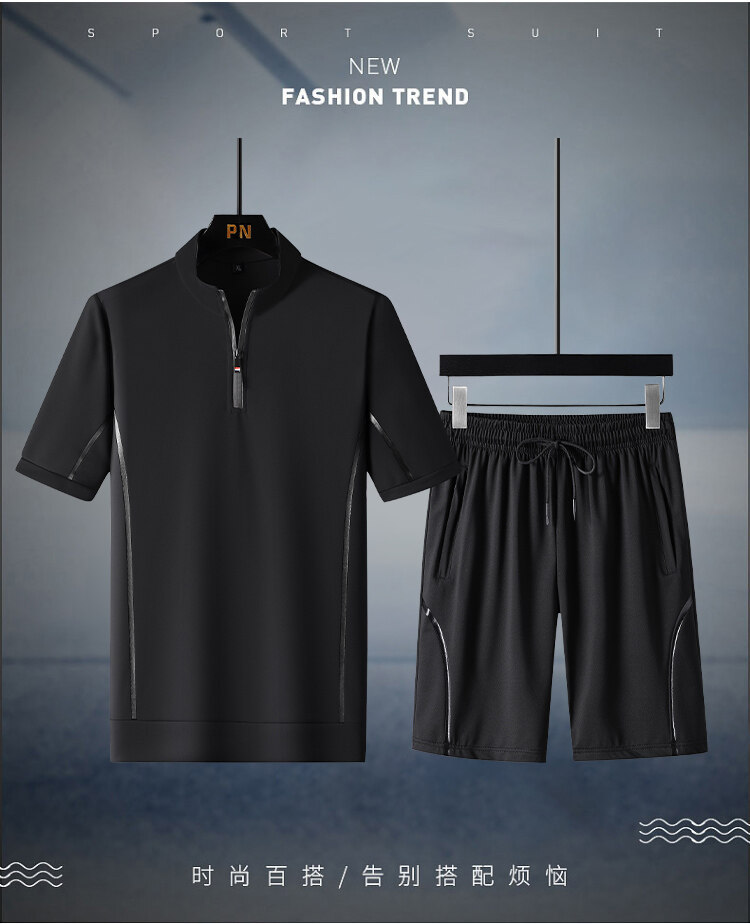 반팔 티셔츠 세트 남성 여름 스포츠 캐주얼 통기성 의류 트렌디 느슨한 탑 투피스 세트