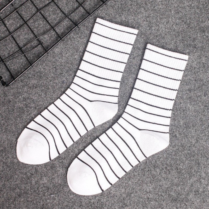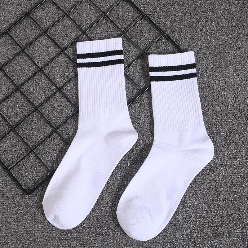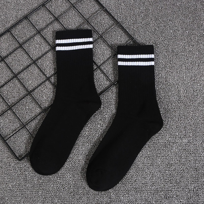 • 3001-93 긴 검은 양말 두 개의 흰색 막대