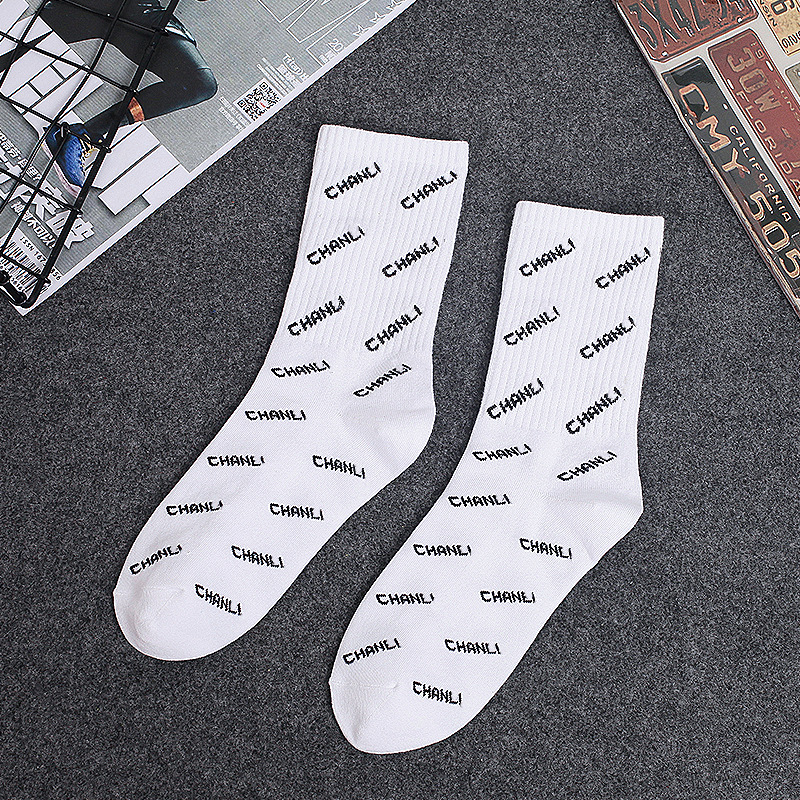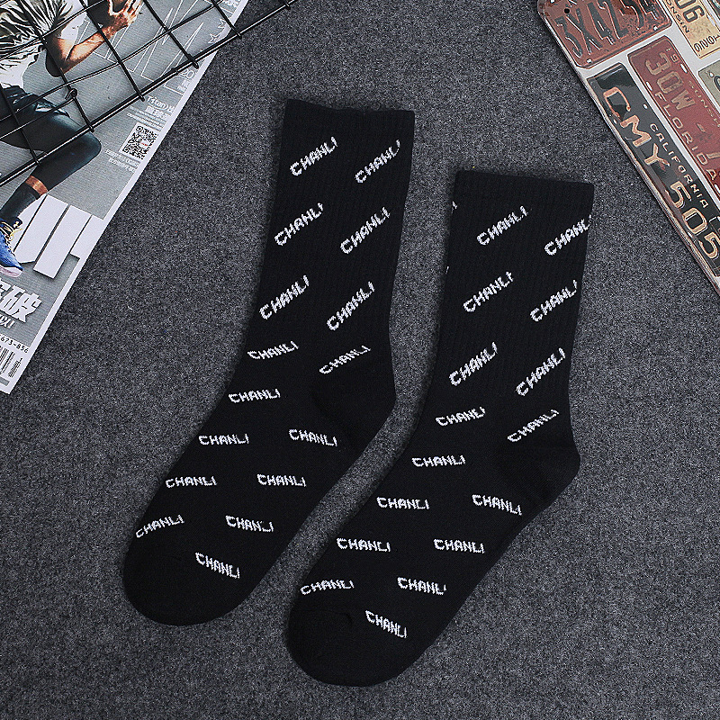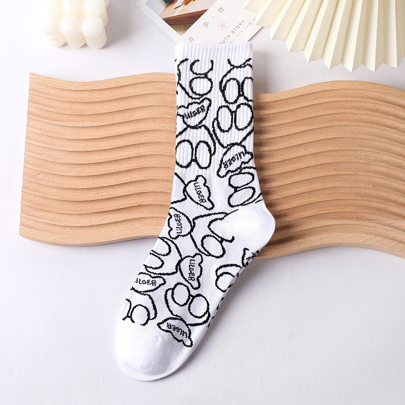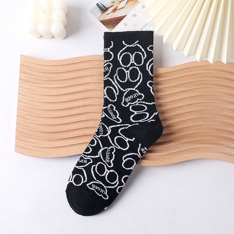• 3001-285 글자로 가득 찬 검은 색 긴 양말 B- A