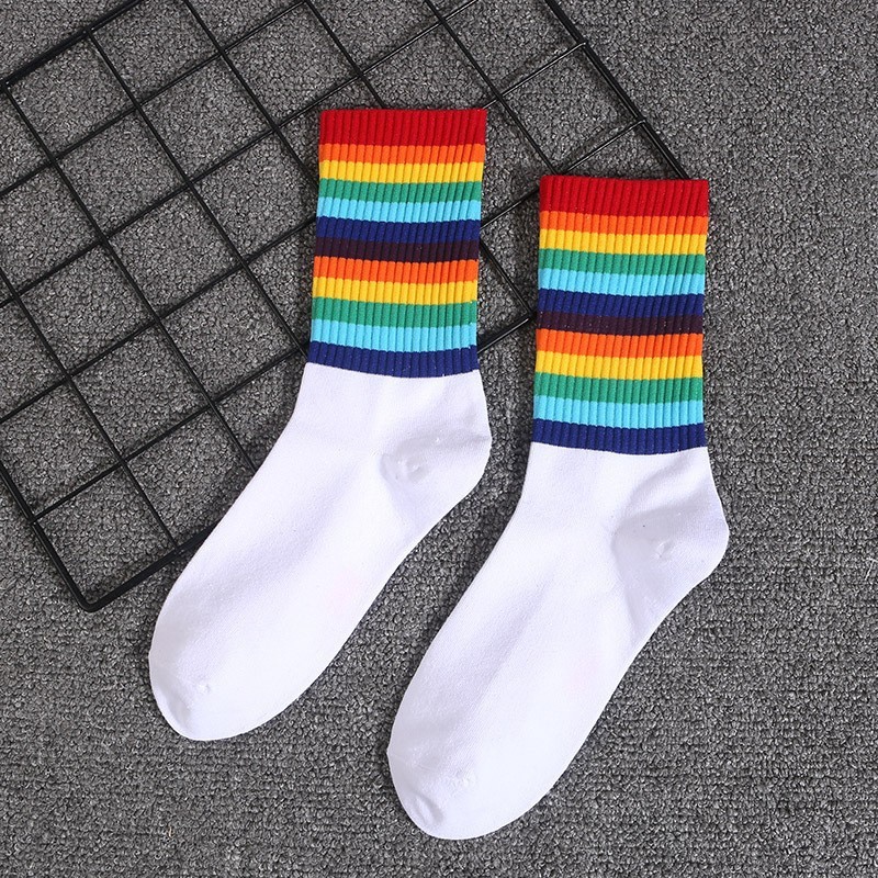 유럽 인 타이드 브랜드 스타킹 남성 및 여성용 양말 중국 트렌드 스타킹 NY 스트라이프 레인보우 블루 볼 양말스토어 가기