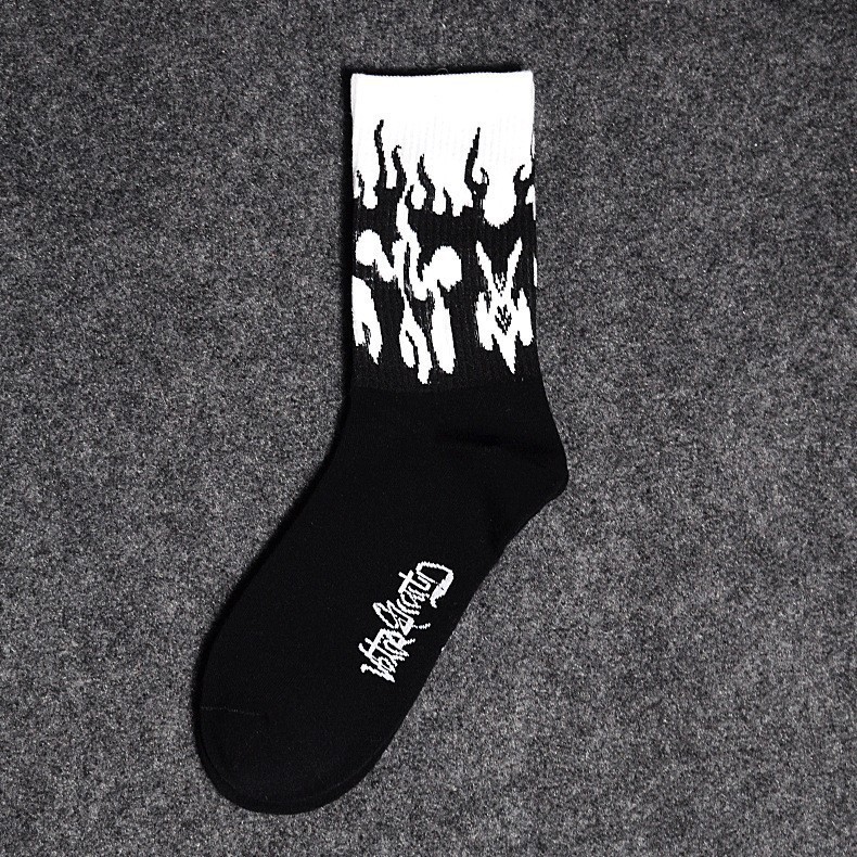 • 3001-90 긴 검은 양말 흰색 불꽃